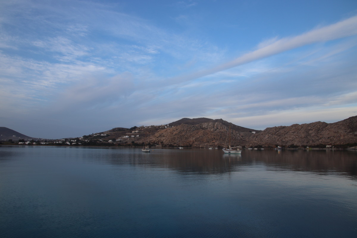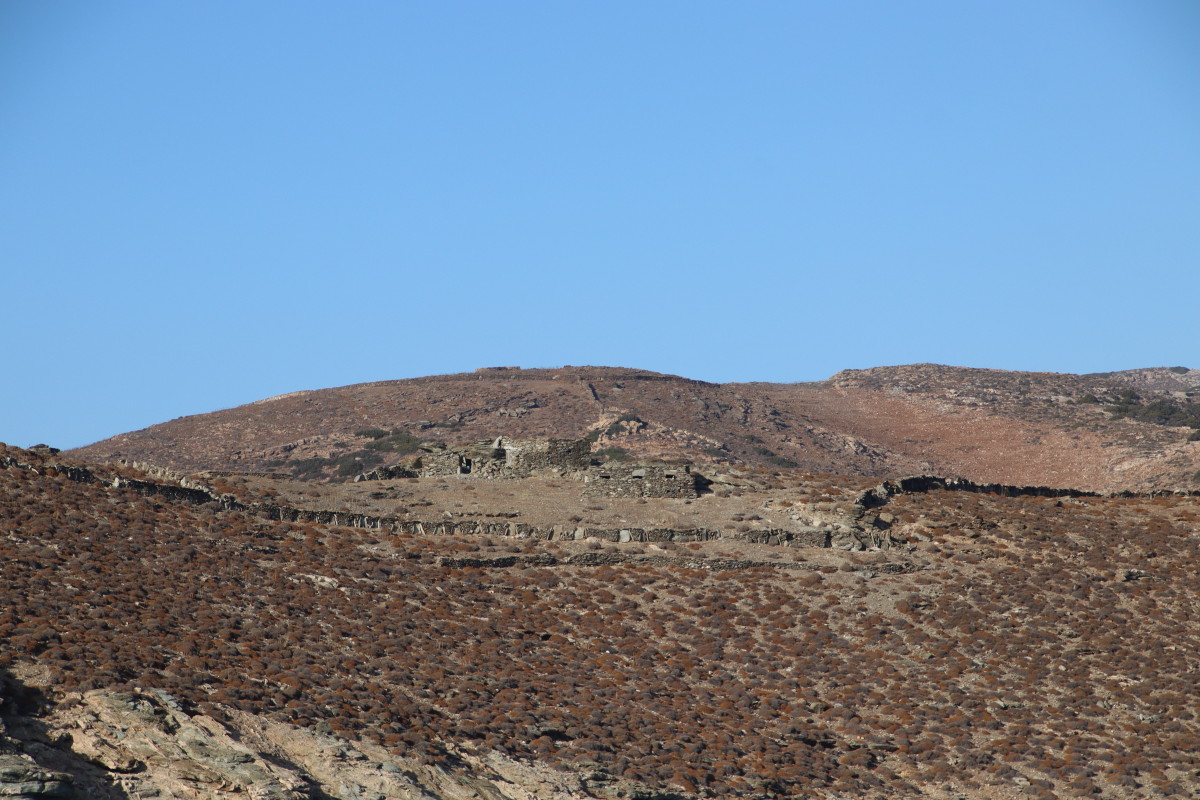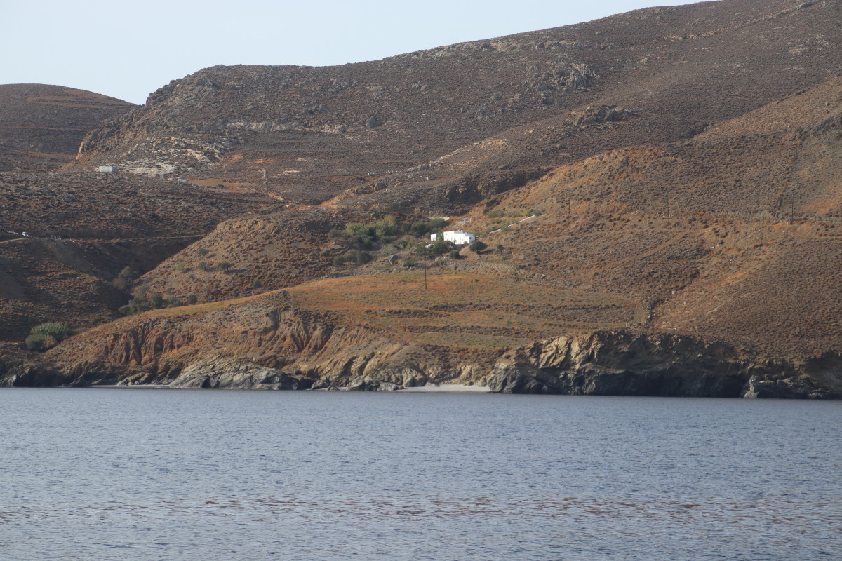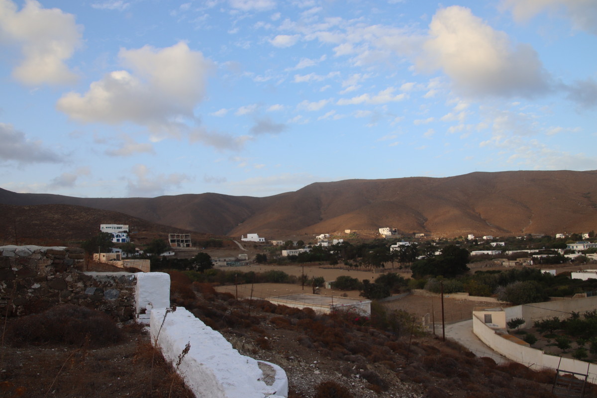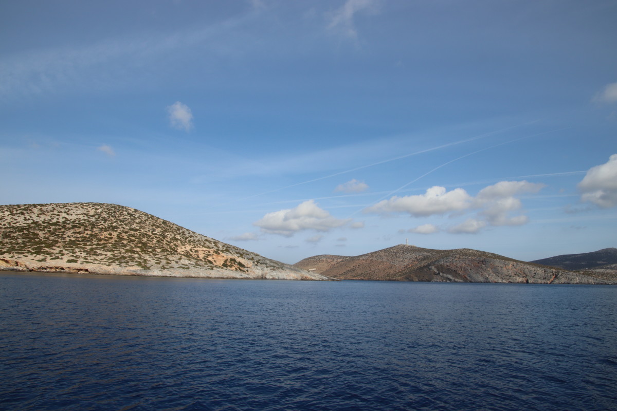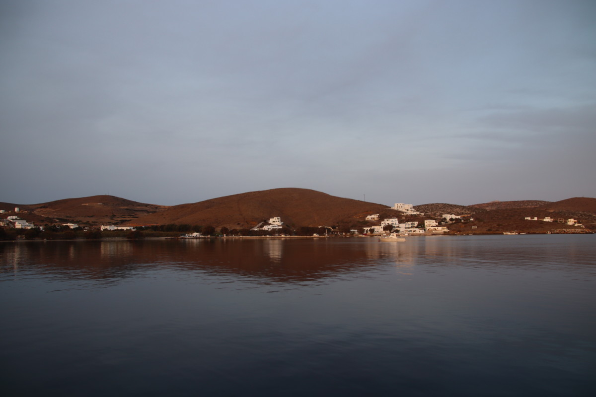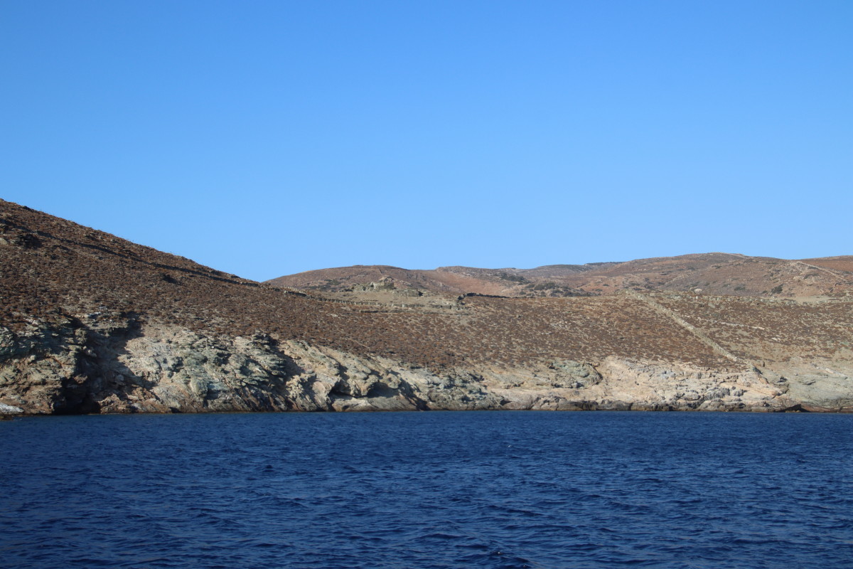 En fin de journée le temps se calme un peu et on peu sortir pour s’aérer un peu en allant revoir la baie de Plakouti juste à l’Est de Partheni et dénicher temple d’Artemis de l’autre côté de la piste d’atterrissage (quelques pierres empilées et une toute petite chapelle)