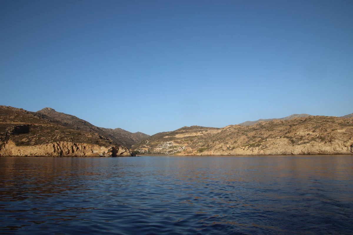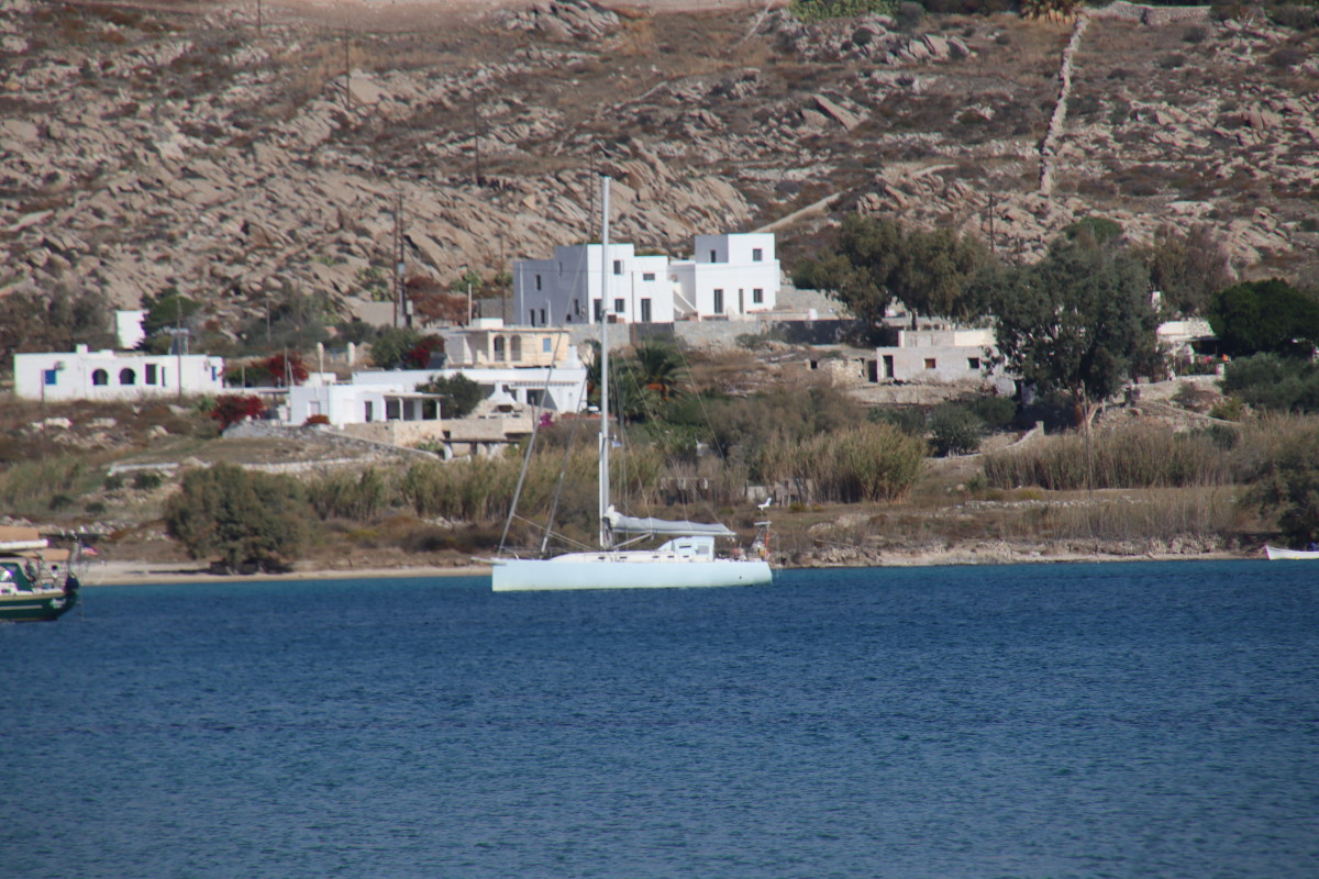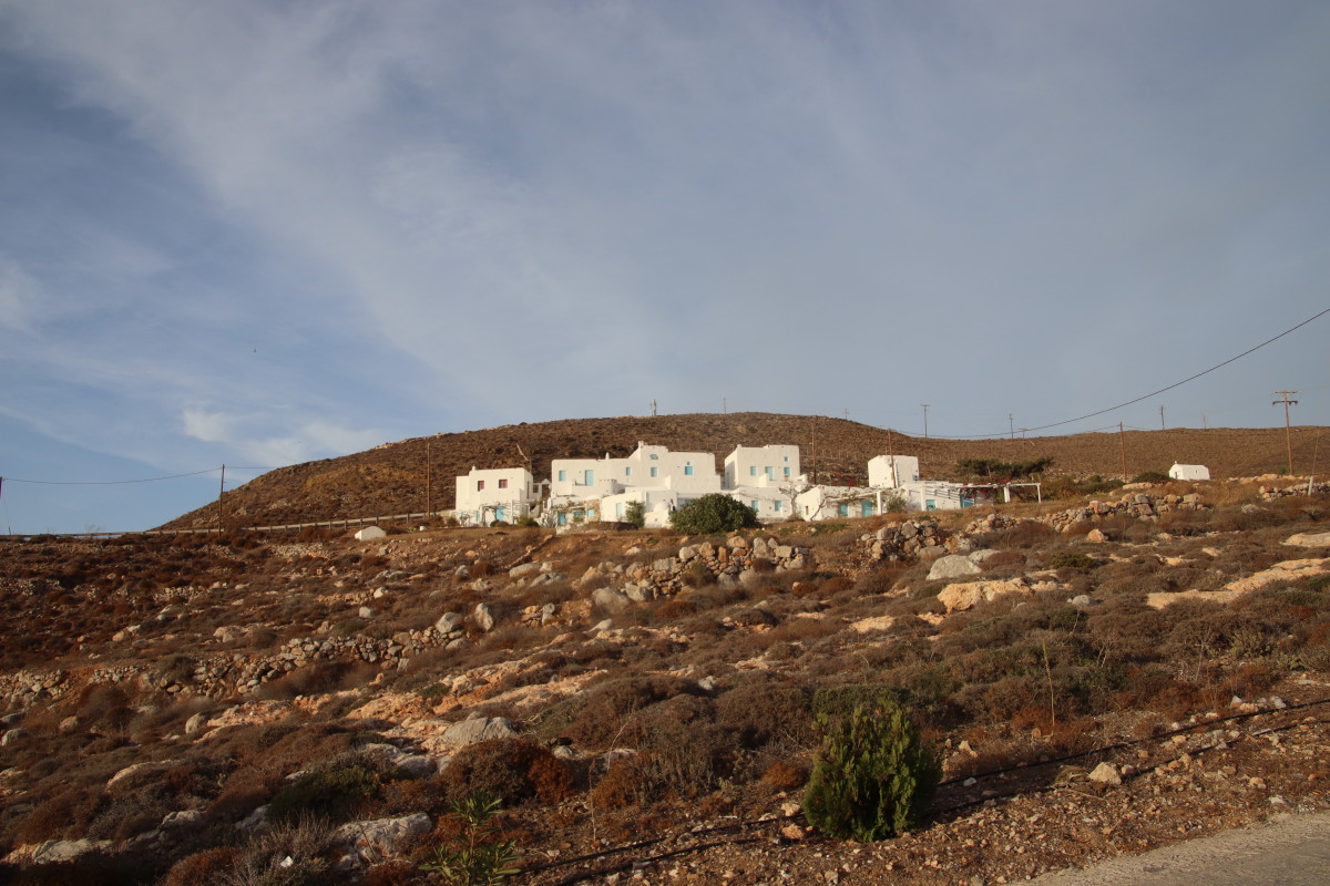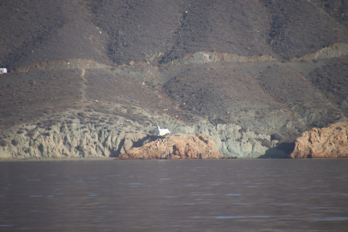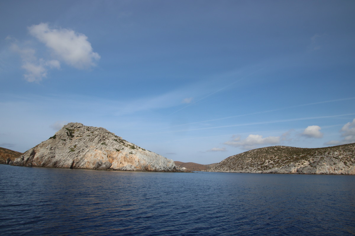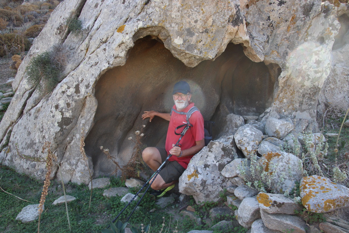 En fin de journée le temps se calme un peu et on peu sortir pour s’aérer un peu en allant revoir la baie de Plakouti juste à l’Est de Partheni et dénicher temple d’Artemis de l’autre côté de la piste d’atterrissage (quelques pierres empilées et une toute petite chapelle)