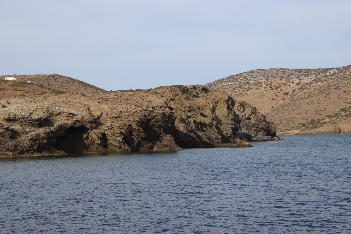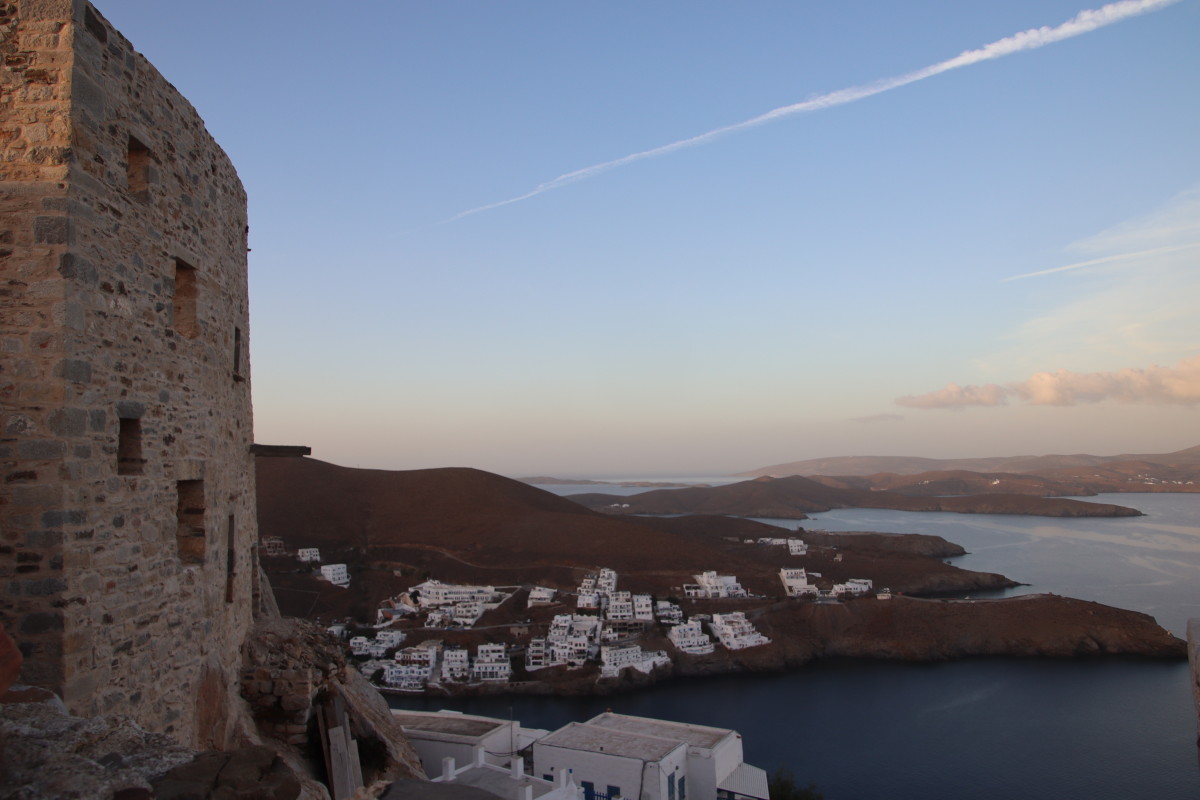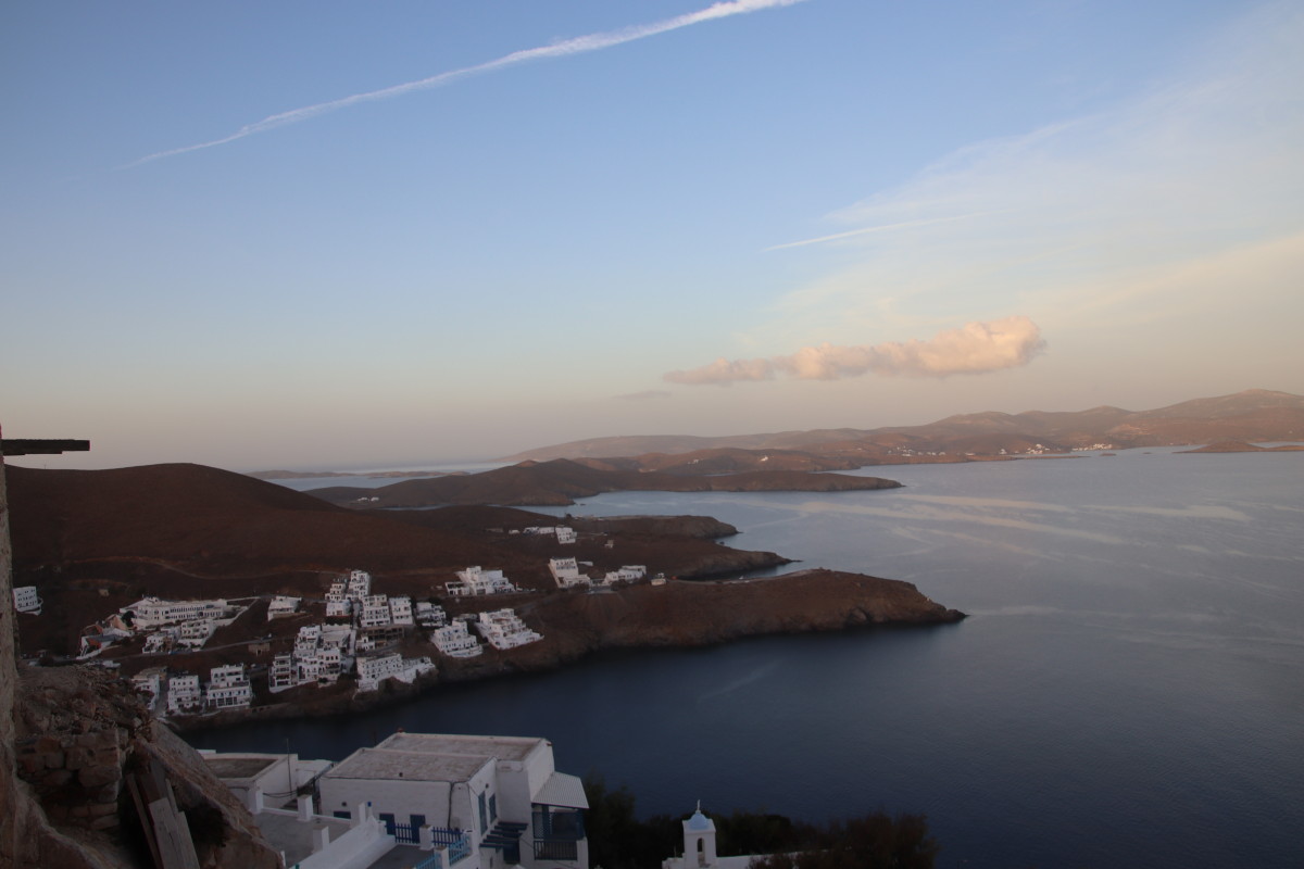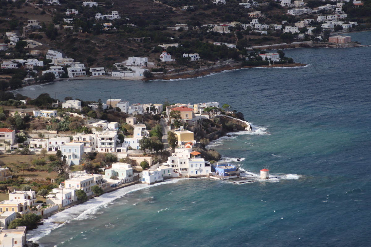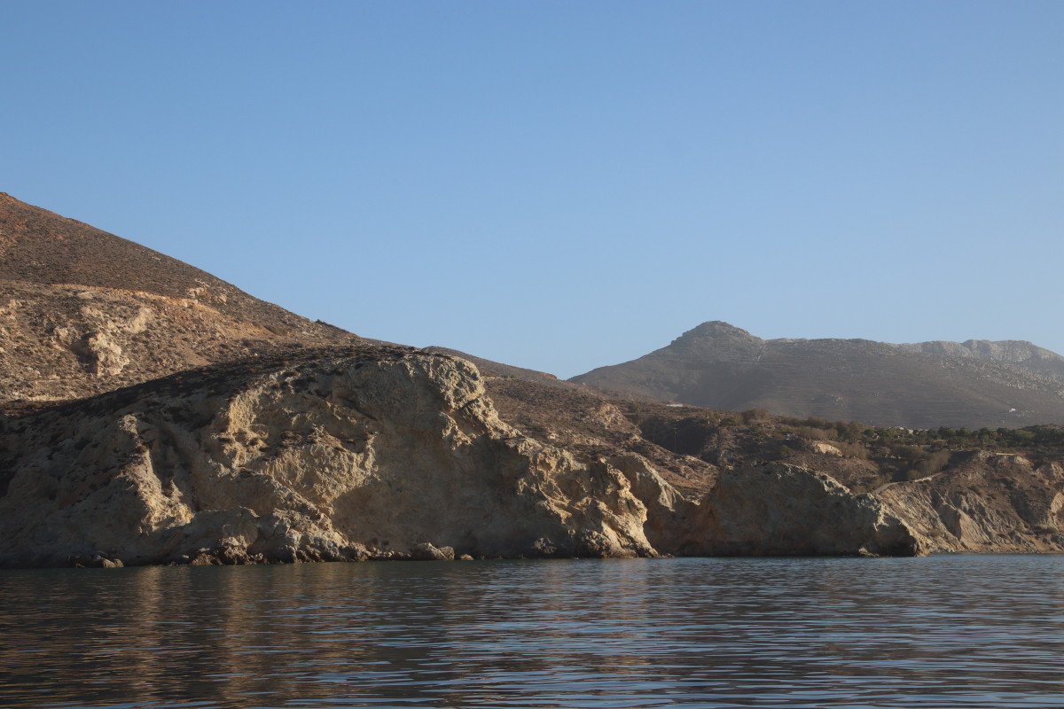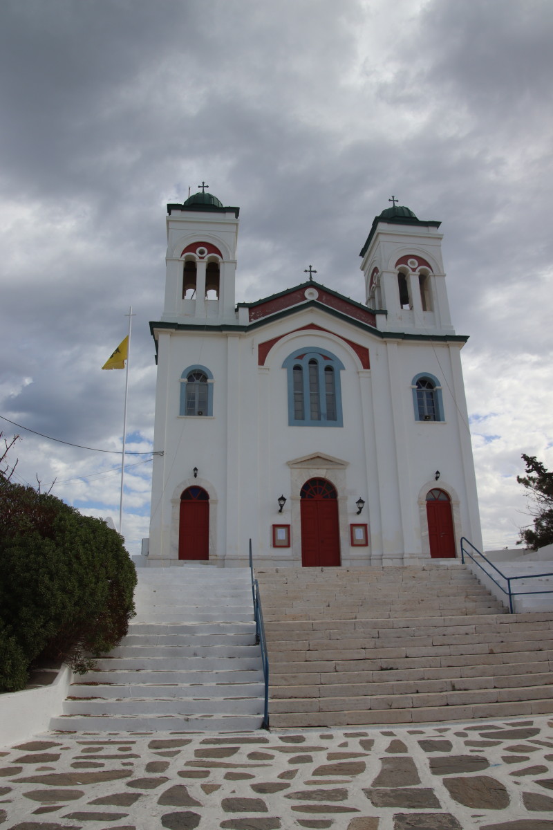 En fin de journée le temps se calme un peu et on peu sortir pour s’aérer un peu en allant revoir la baie de Plakouti juste à l’Est de Partheni et dénicher temple d’Artemis de l’autre côté de la piste d’atterrissage (quelques pierres empilées et une toute petite chapelle)