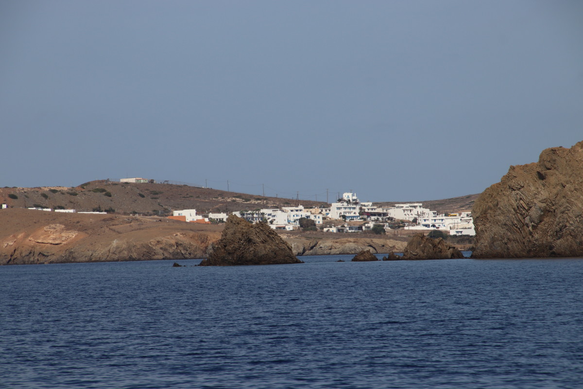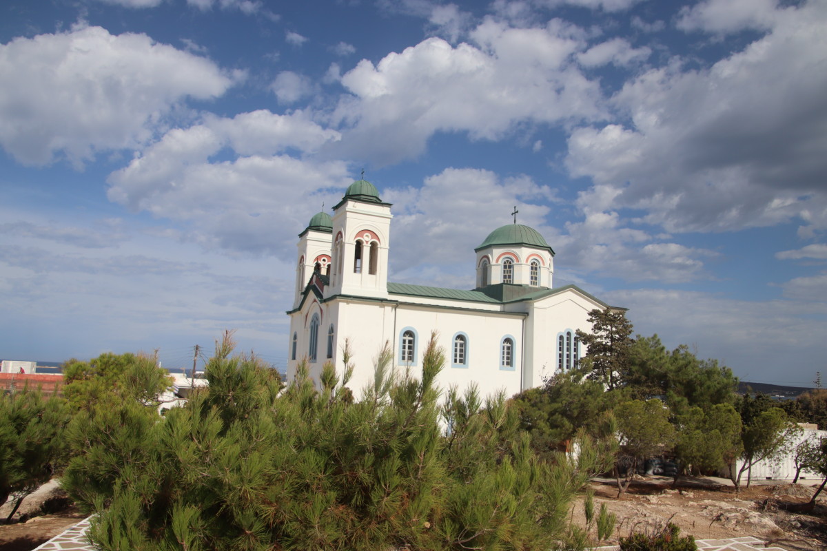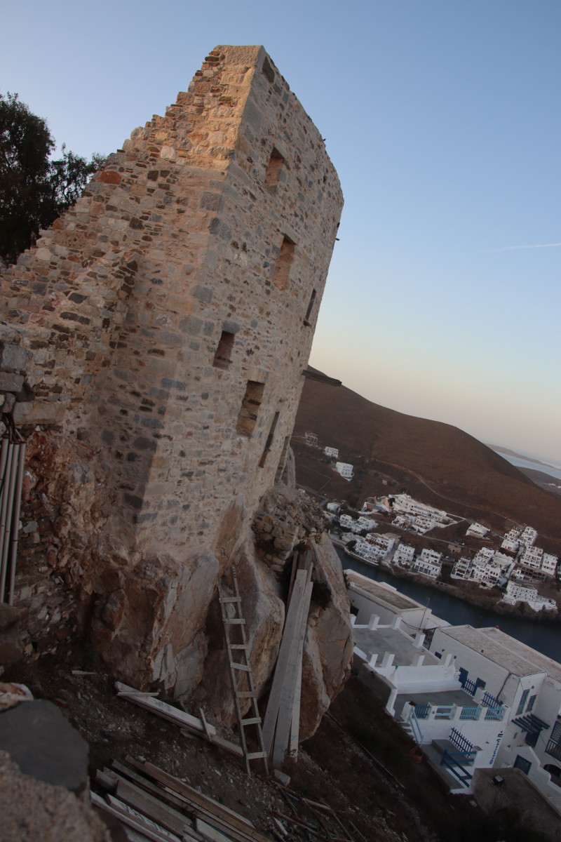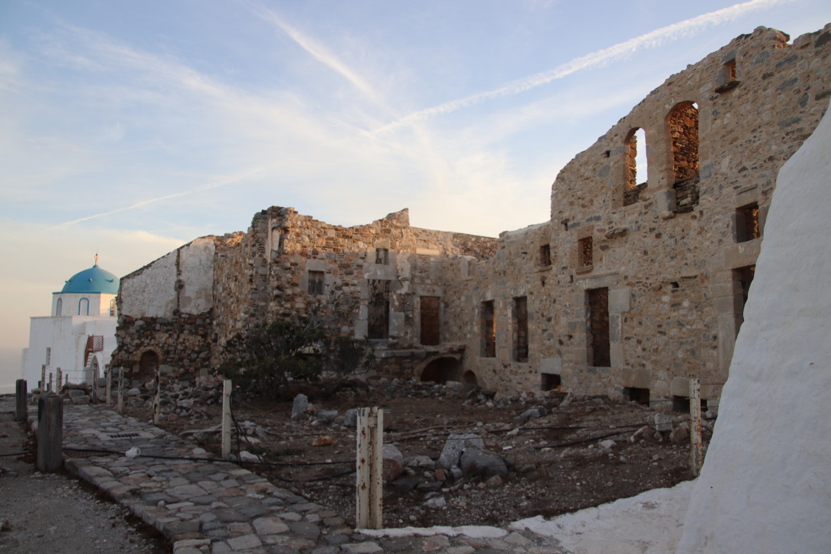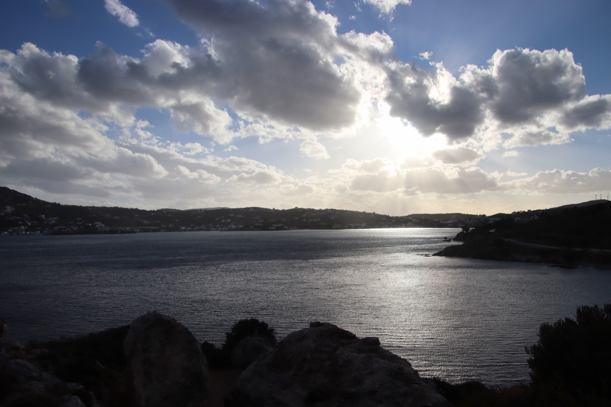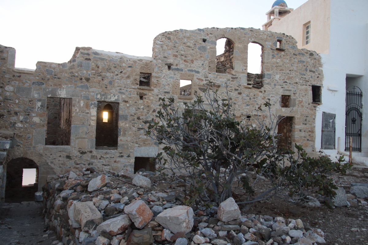 En fin de journée le temps se calme un peu et on peu sortir pour s’aérer un peu en allant revoir la baie de Plakouti juste à l’Est de Partheni et dénicher temple d’Artemis de l’autre côté de la piste d’atterrissage (quelques pierres empilées et une toute petite chapelle)