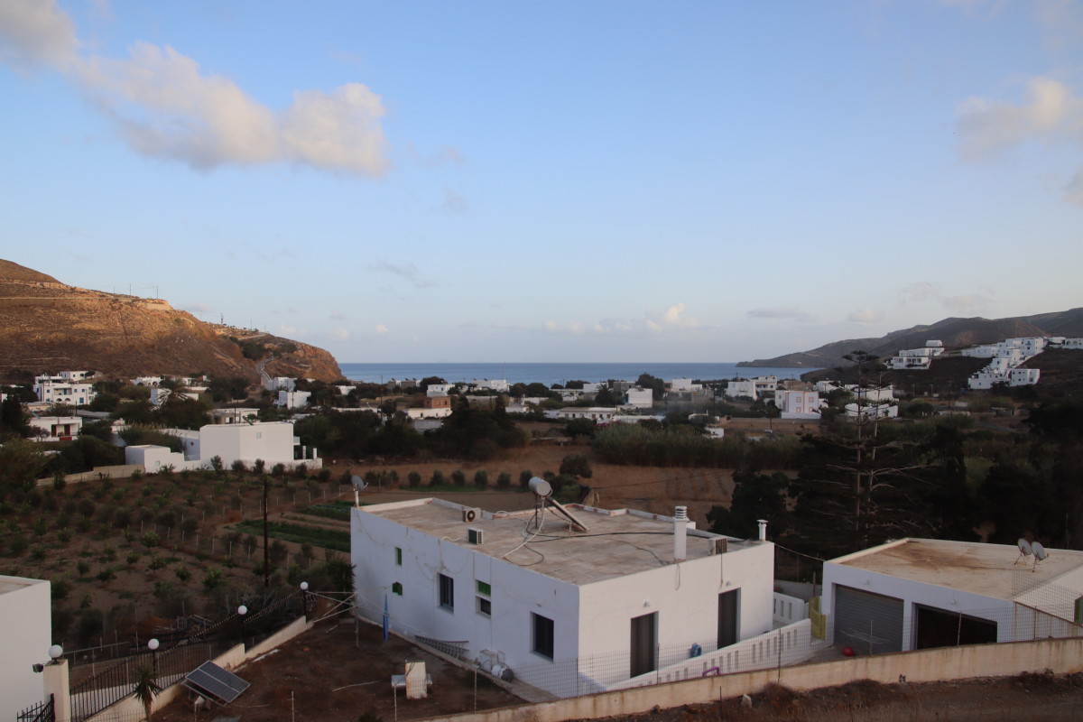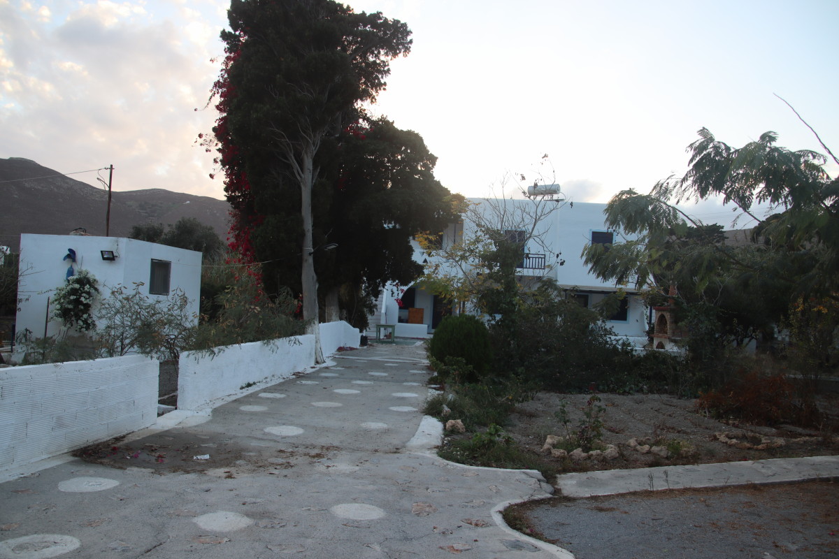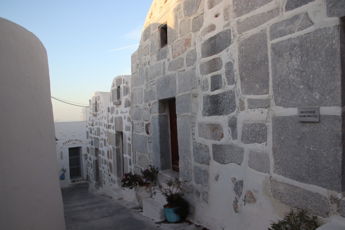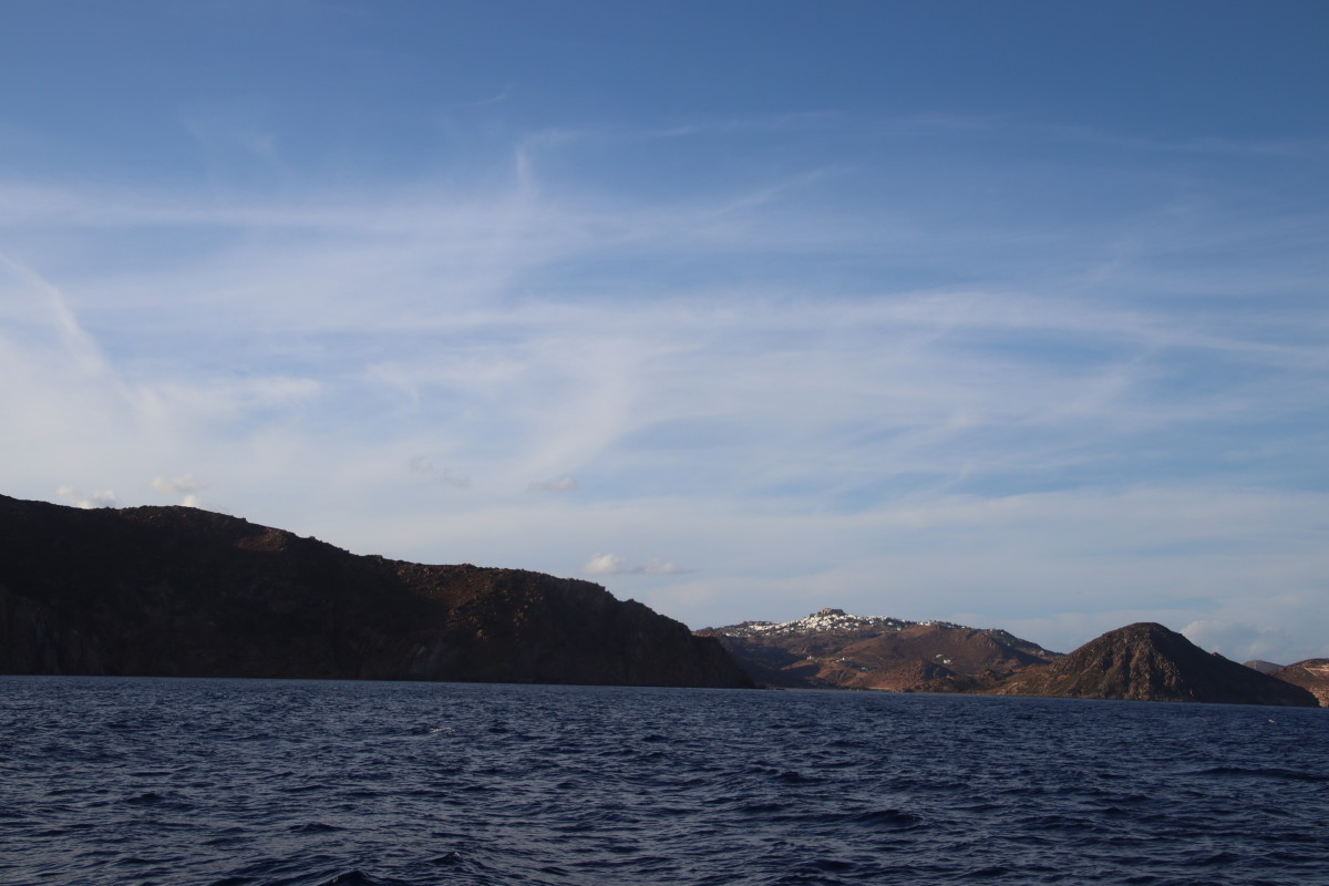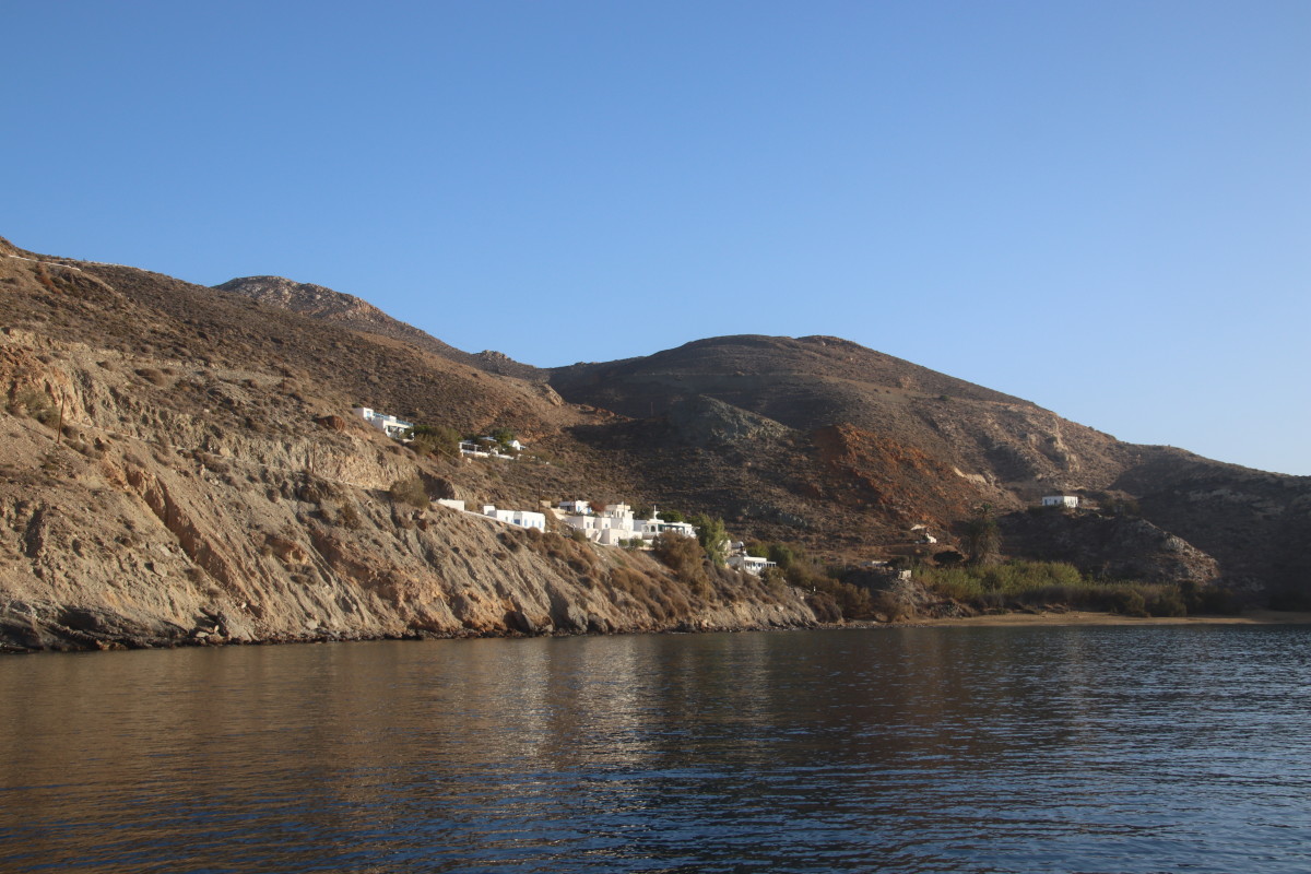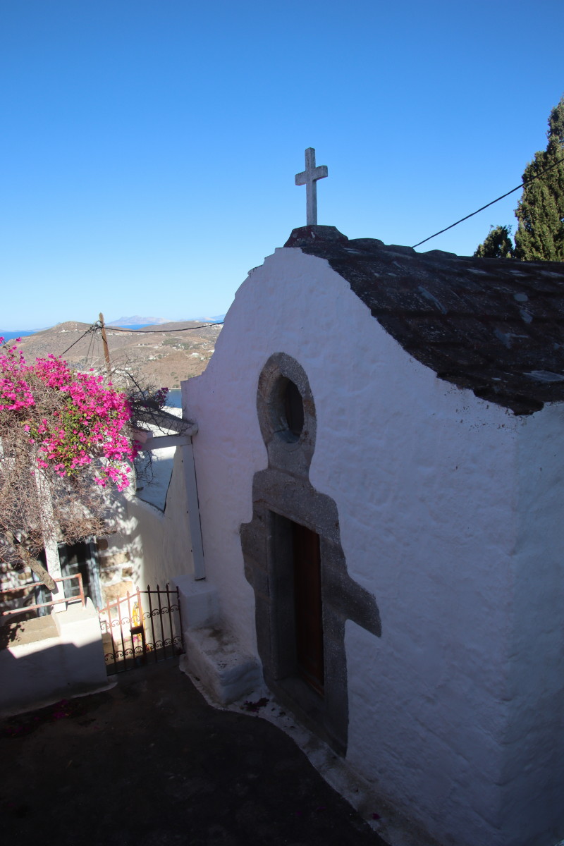 En fin de journée le temps se calme un peu et on peu sortir pour s’aérer un peu en allant revoir la baie de Plakouti juste à l’Est de Partheni et dénicher temple d’Artemis de l’autre côté de la piste d’atterrissage (quelques pierres empilées et une toute petite chapelle)