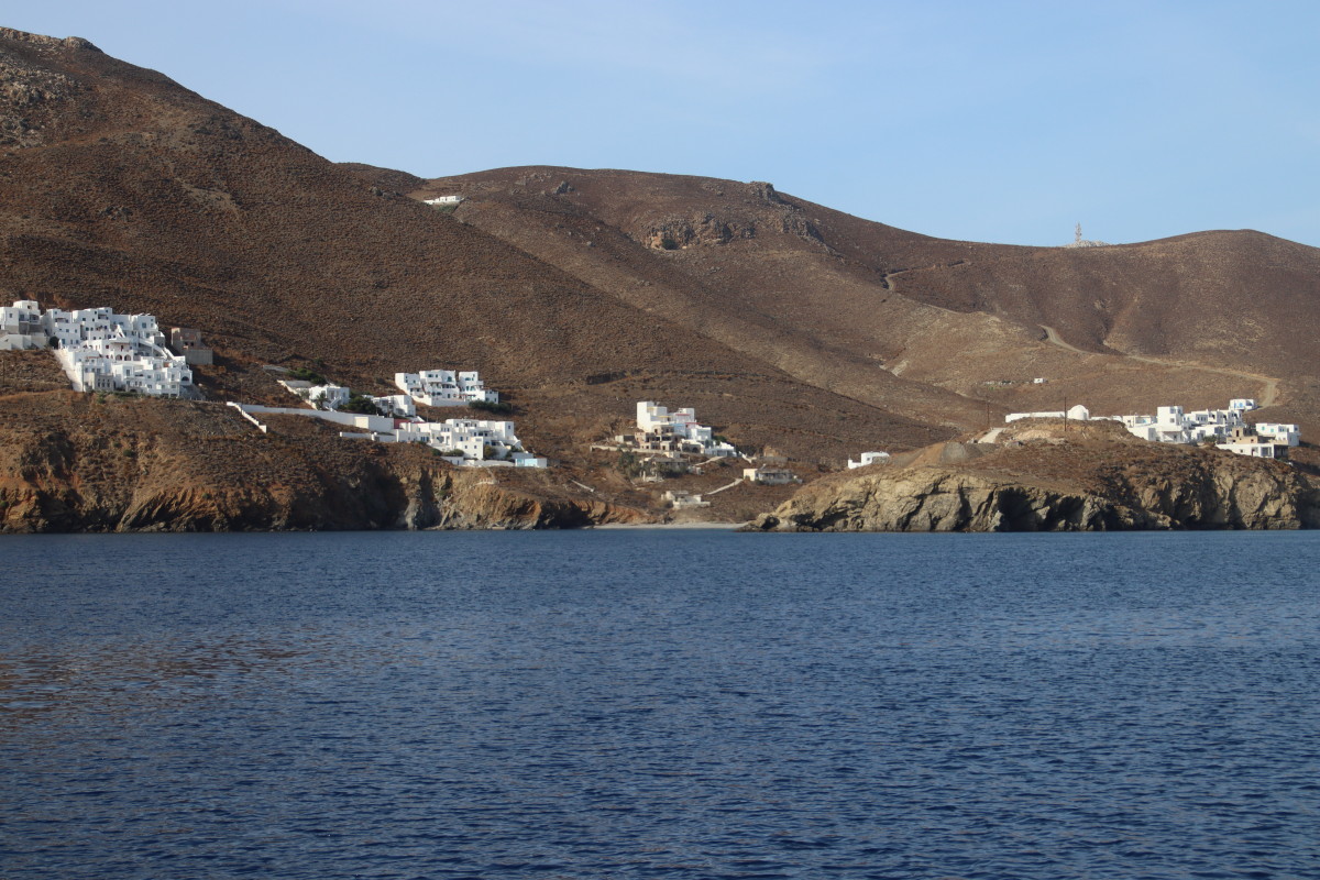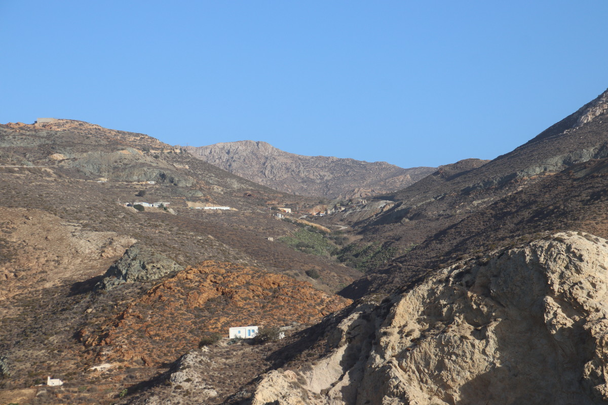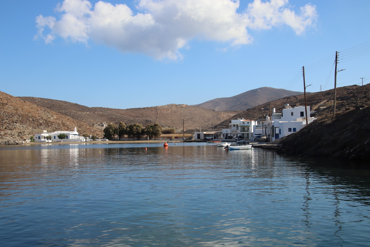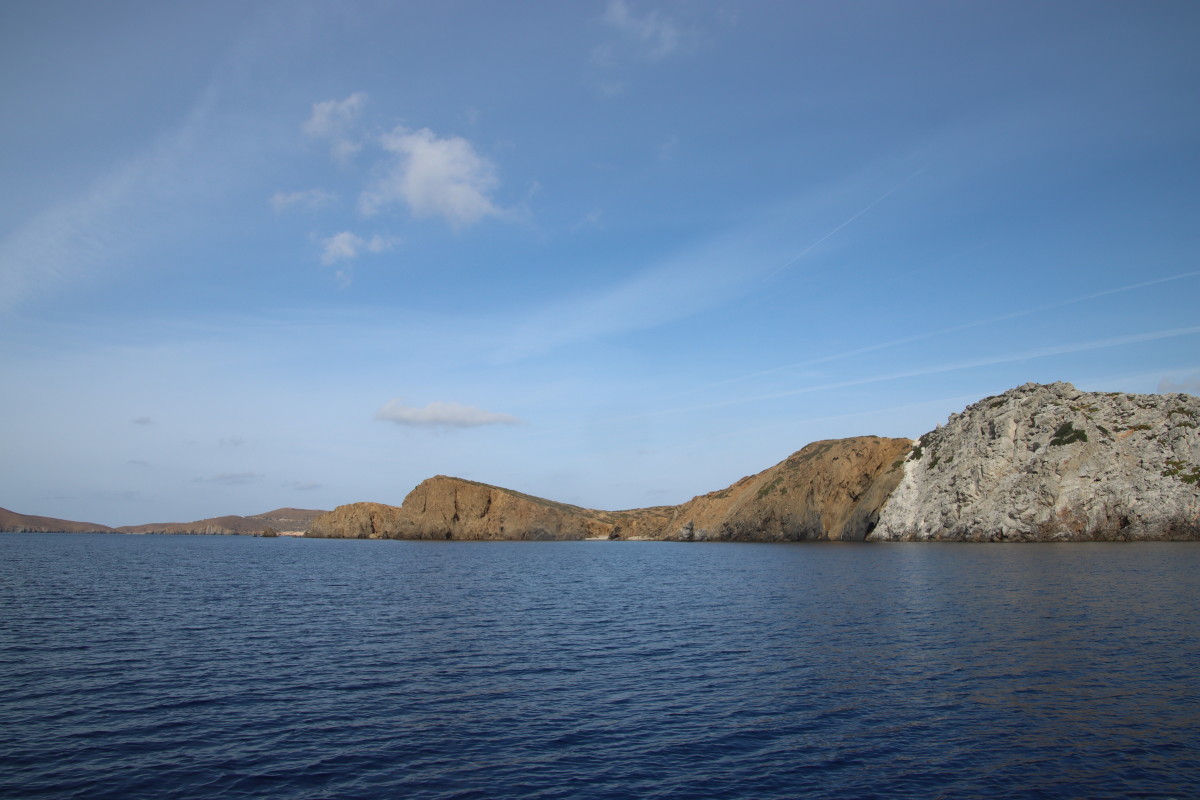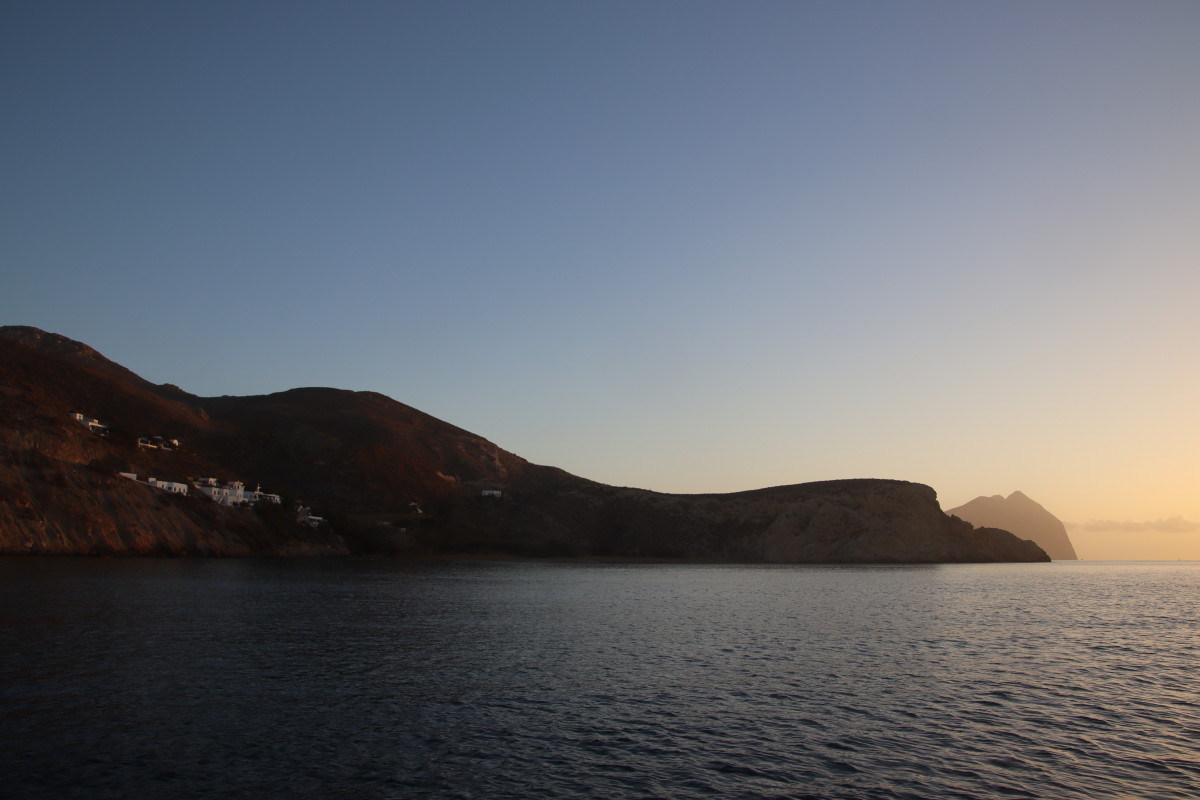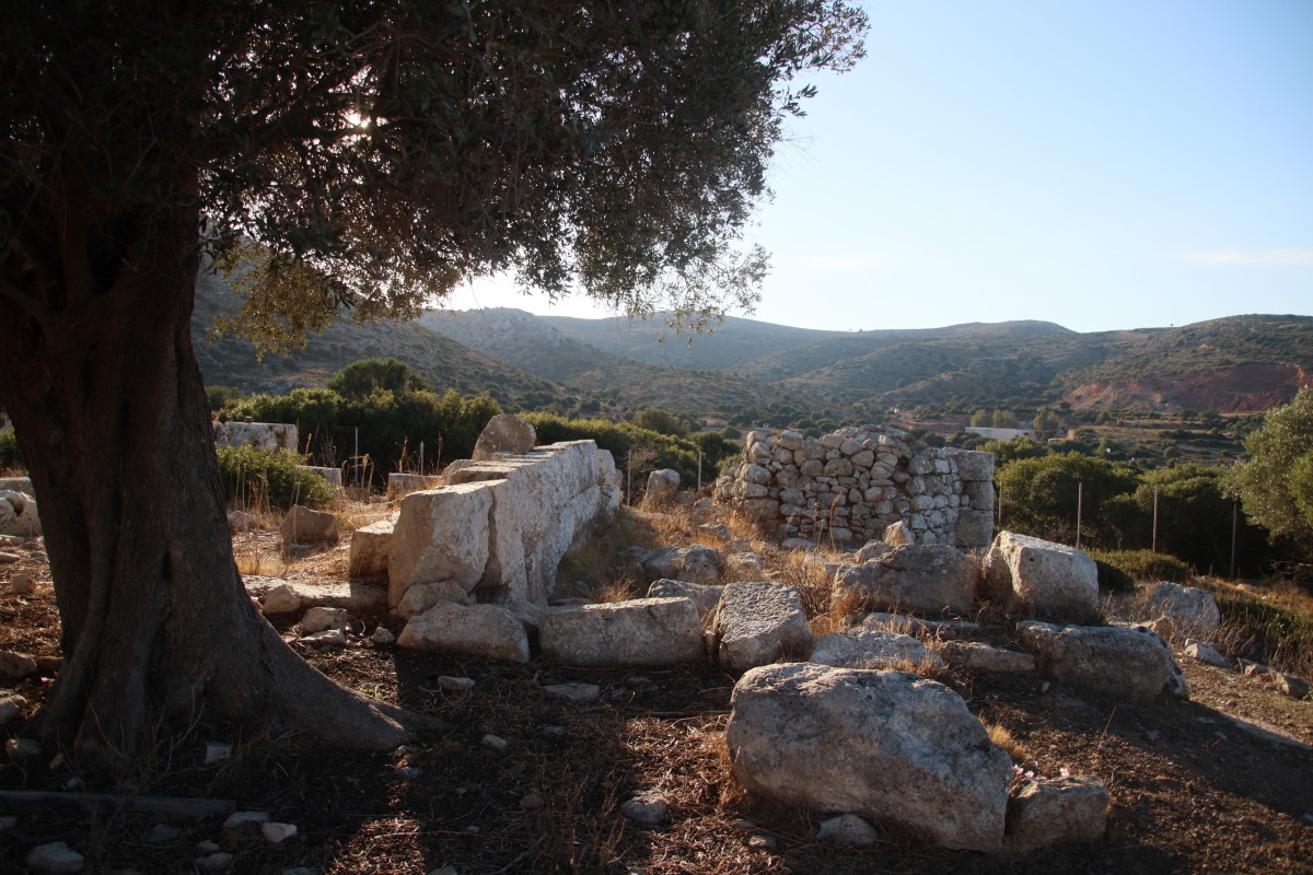 En fin de journée le temps se calme un peu et on peu sortir pour s’aérer un peu en allant revoir la baie de Plakouti juste à l’Est de Partheni et dénicher temple d’Artemis de l’autre côté de la piste d’atterrissage (quelques pierres empilées et une toute petite chapelle)