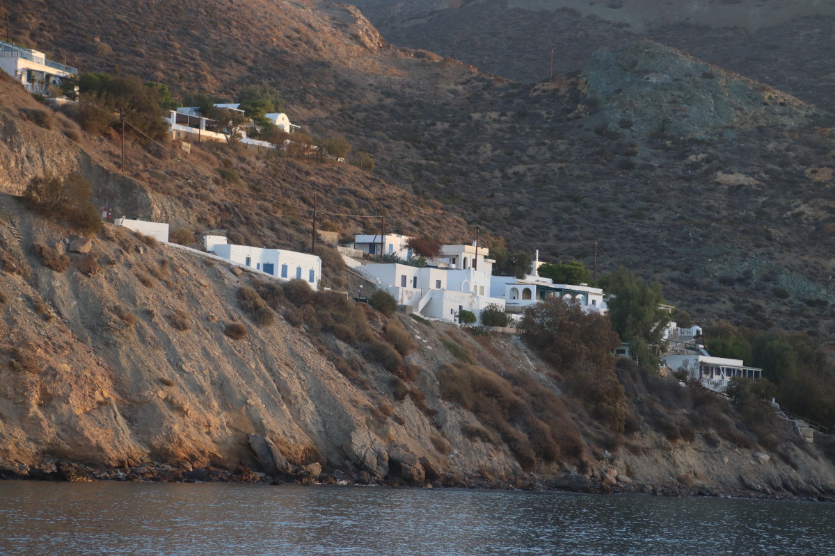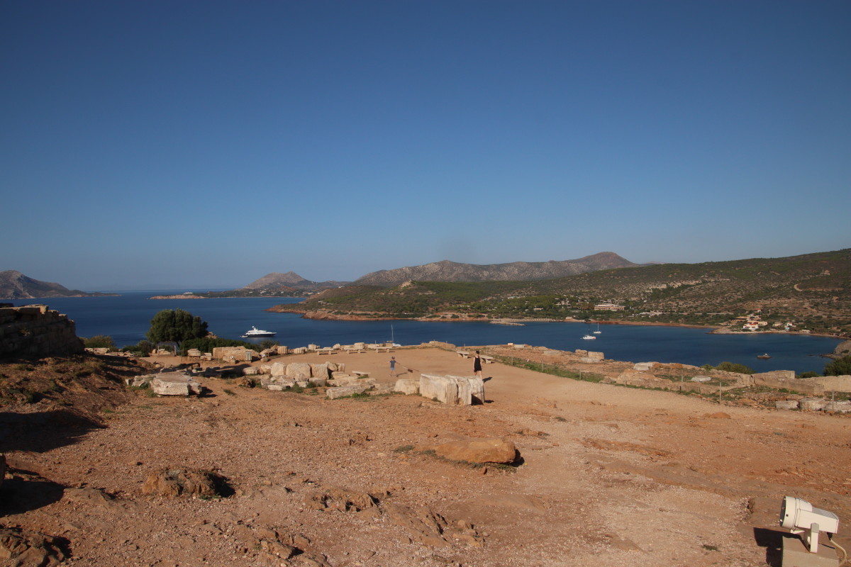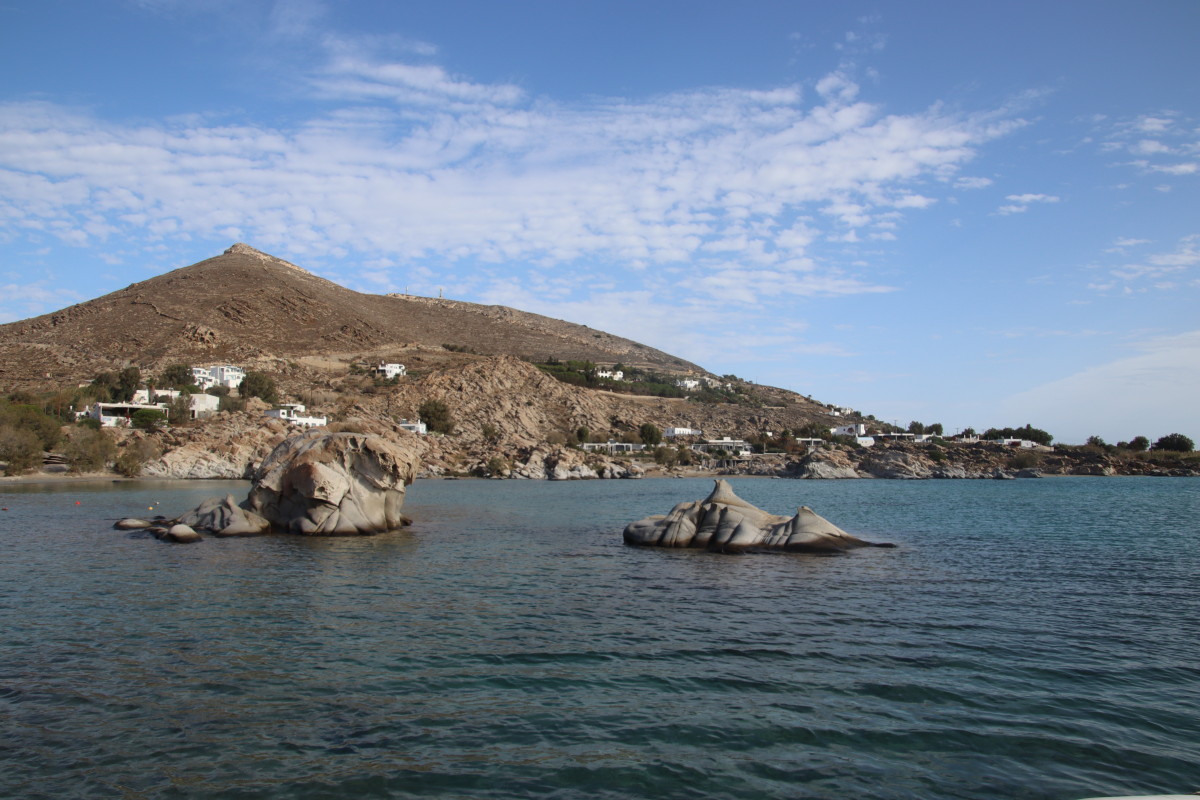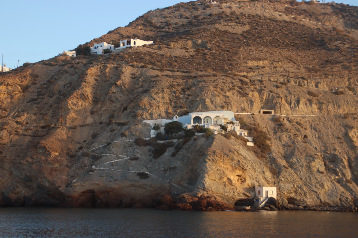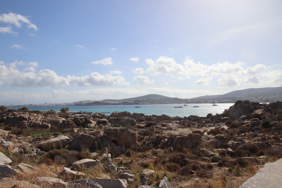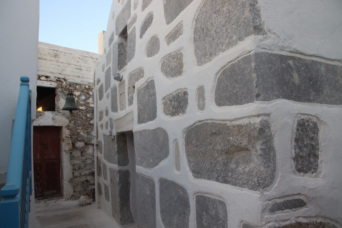 En fin de journée le temps se calme un peu et on peu sortir pour s’aérer un peu en allant revoir la baie de Plakouti juste à l’Est de Partheni et dénicher temple d’Artemis de l’autre côté de la piste d’atterrissage (quelques pierres empilées et une toute petite chapelle)