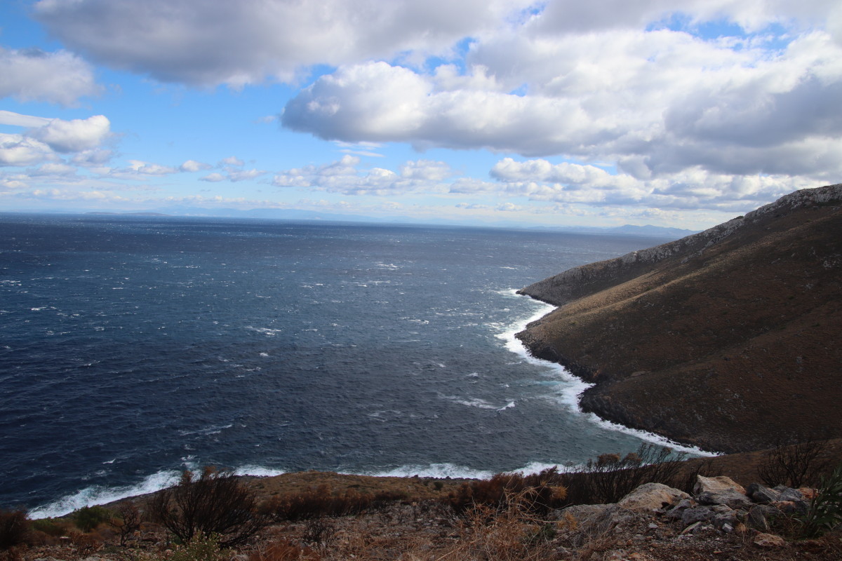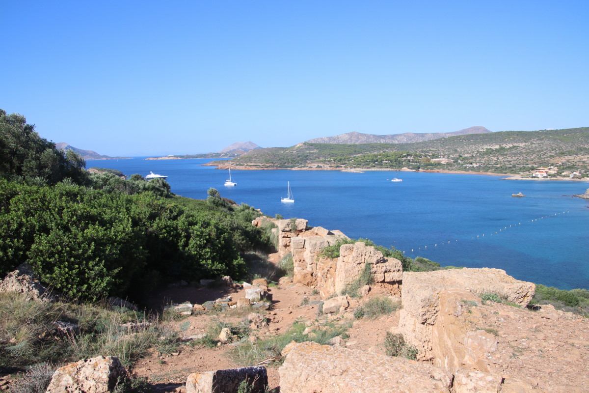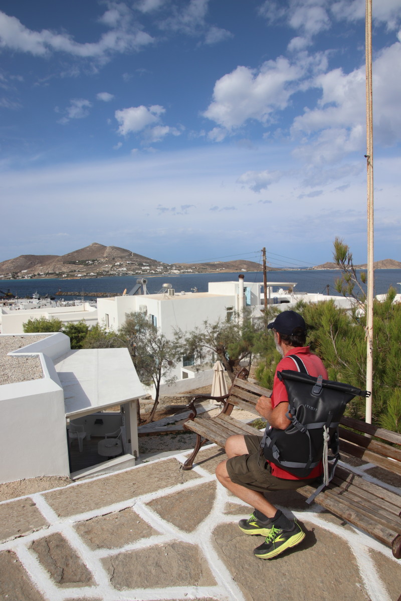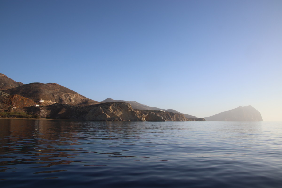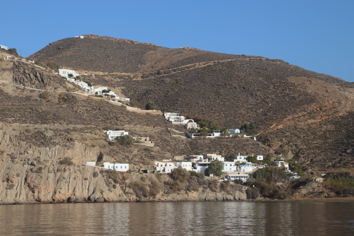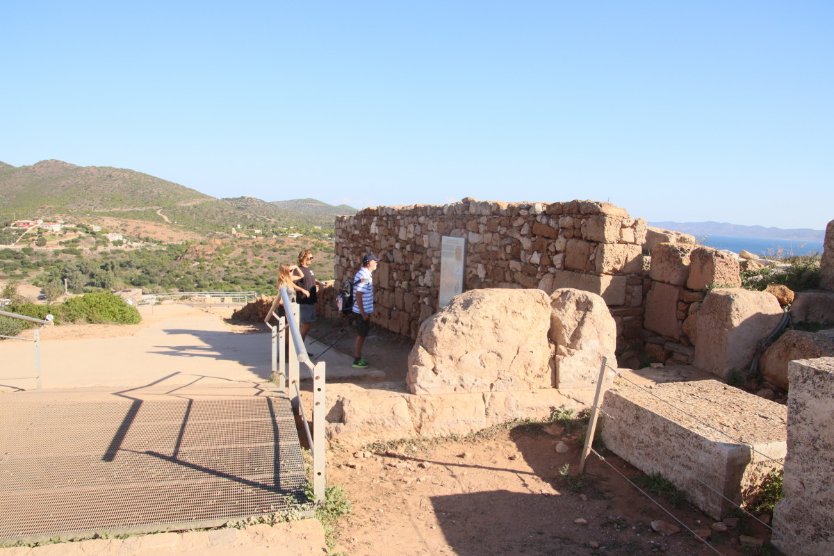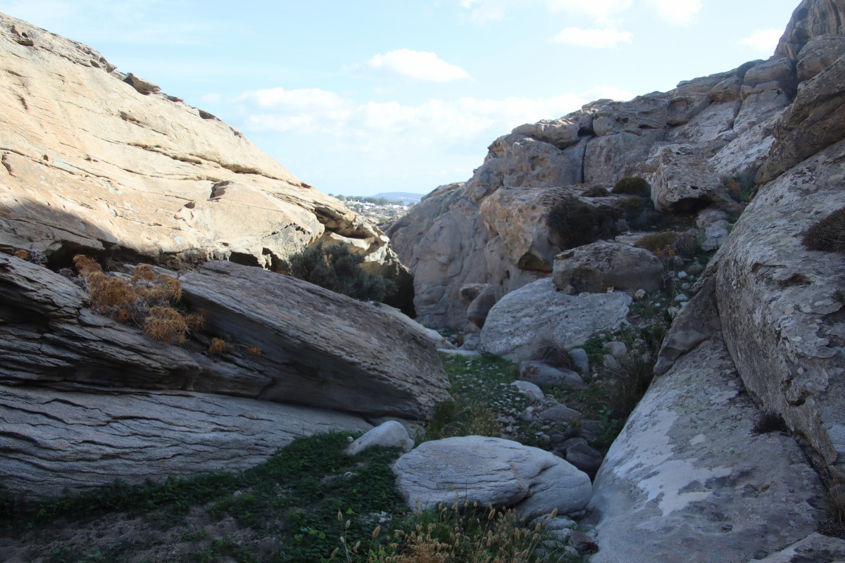 En fin de journée le temps se calme un peu et on peu sortir pour s’aérer un peu en allant revoir la baie de Plakouti juste à l’Est de Partheni et dénicher temple d’Artemis de l’autre côté de la piste d’atterrissage (quelques pierres empilées et une toute petite chapelle)