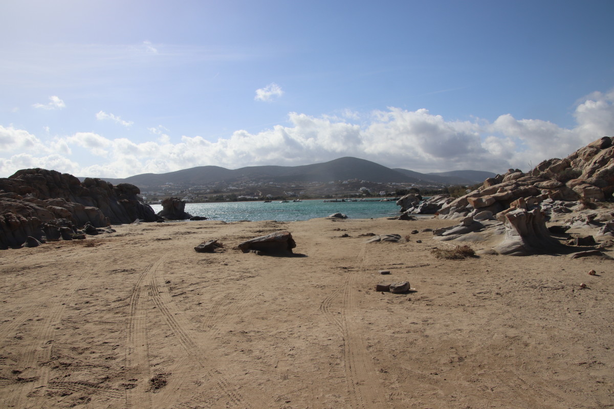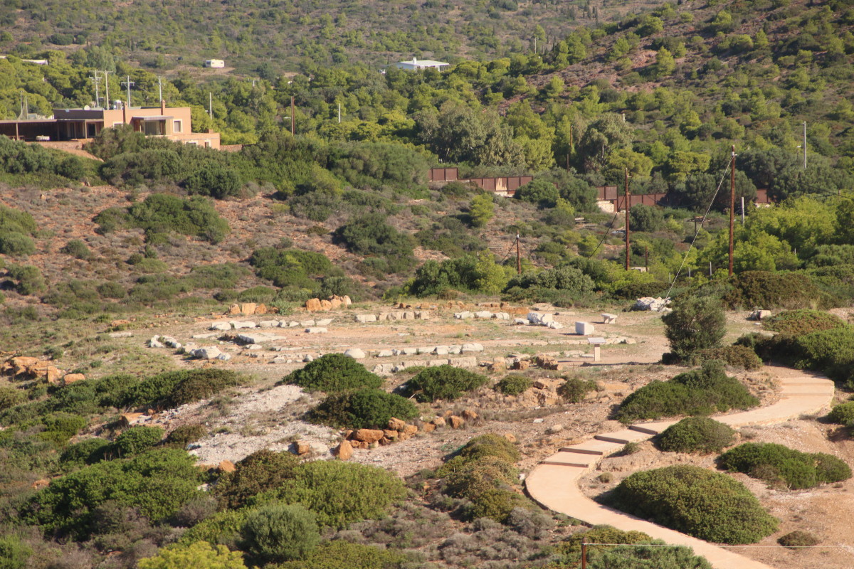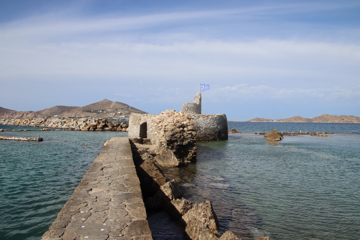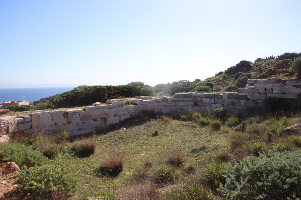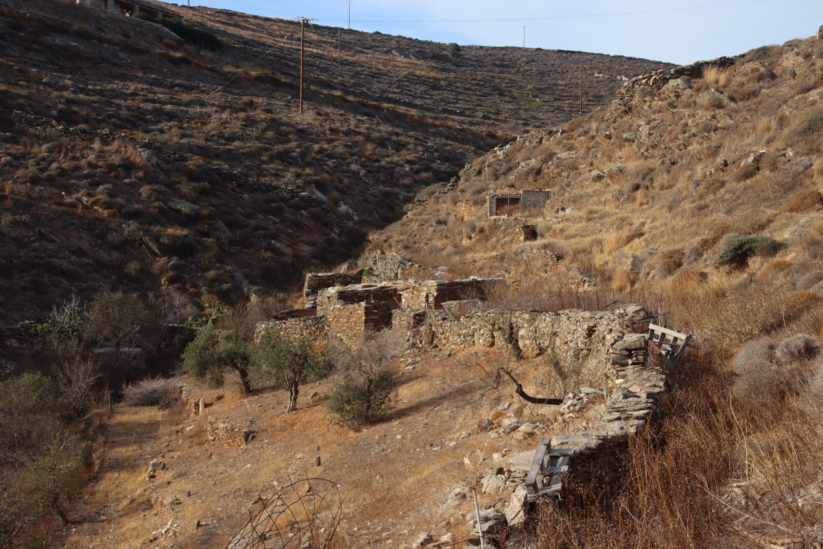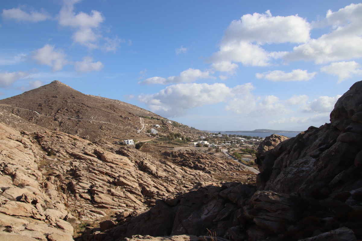 En fin de journée le temps se calme un peu et on peu sortir pour s’aérer un peu en allant revoir la baie de Plakouti juste à l’Est de Partheni et dénicher temple d’Artemis de l’autre côté de la piste d’atterrissage (quelques pierres empilées et une toute petite chapelle)