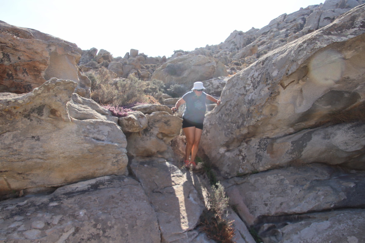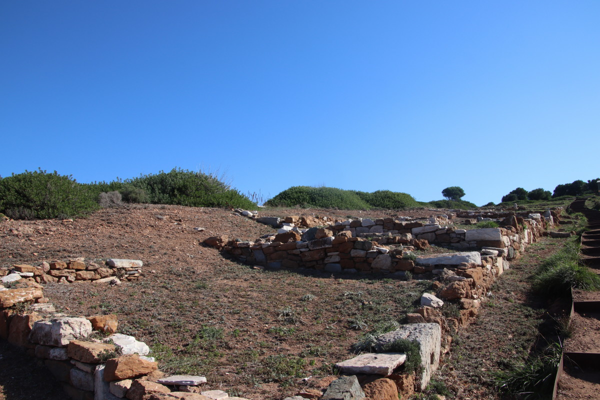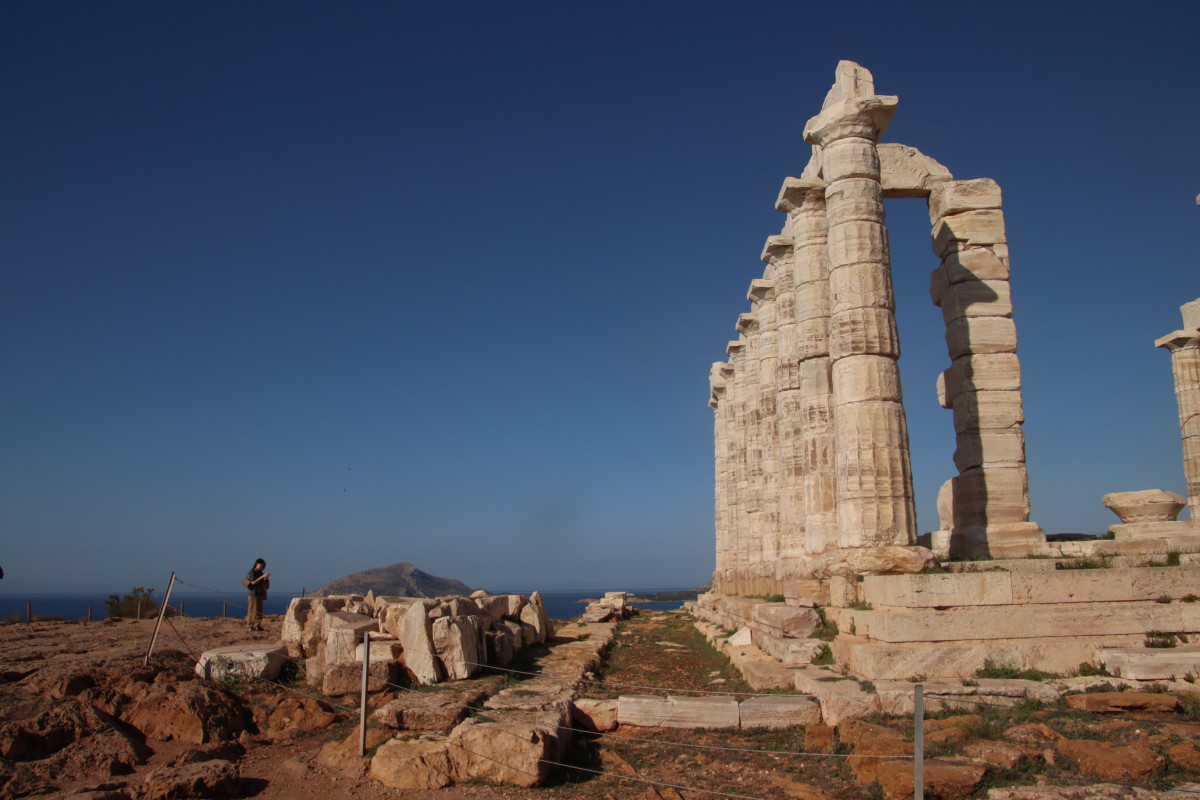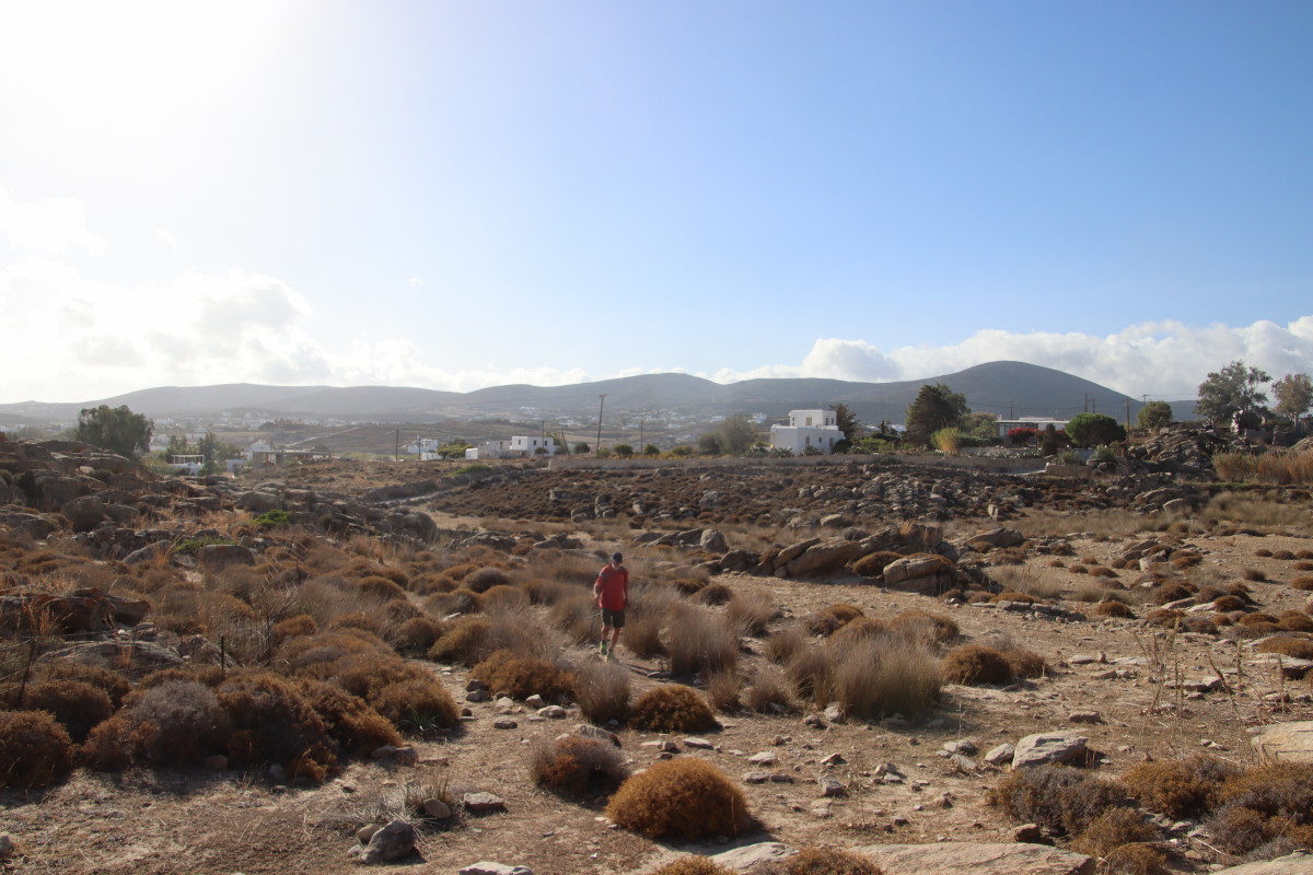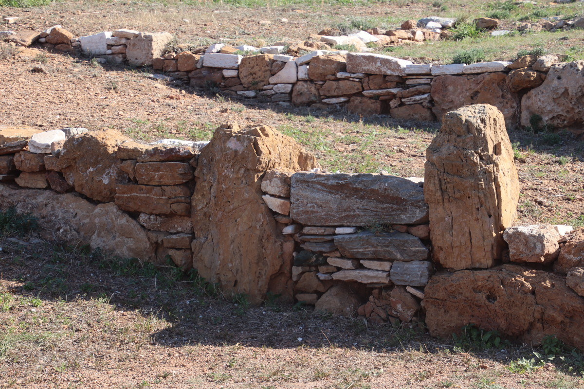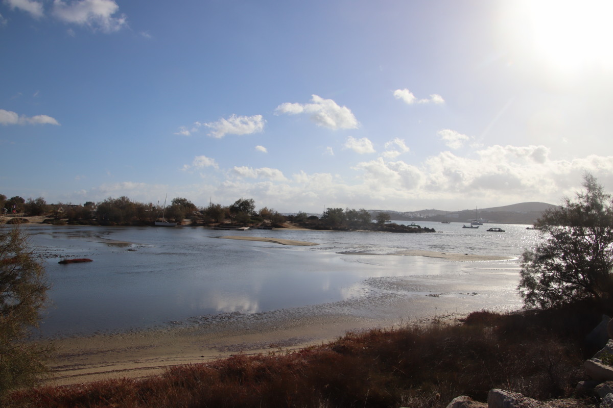 En fin de journée le temps se calme un peu et on peu sortir pour s’aérer un peu en allant revoir la baie de Plakouti juste à l’Est de Partheni et dénicher temple d’Artemis de l’autre côté de la piste d’atterrissage (quelques pierres empilées et une toute petite chapelle)