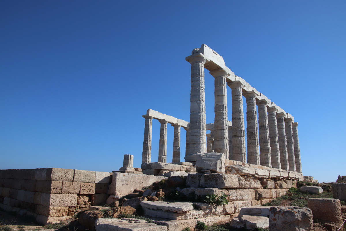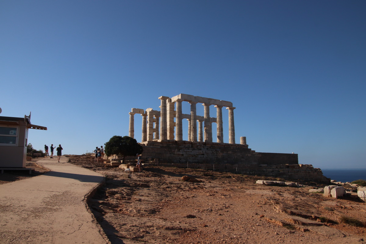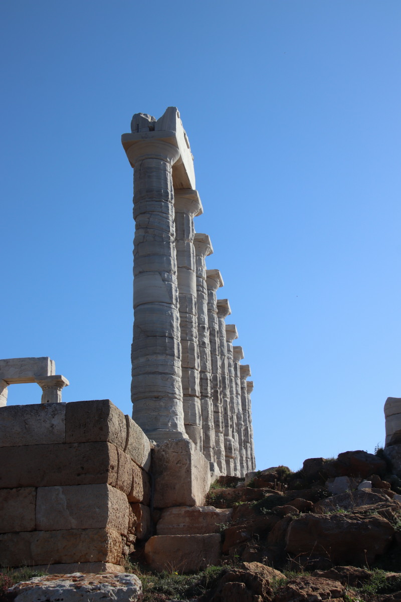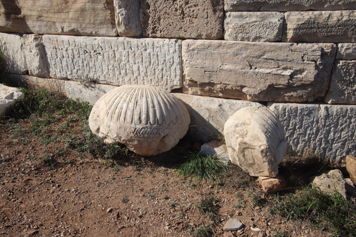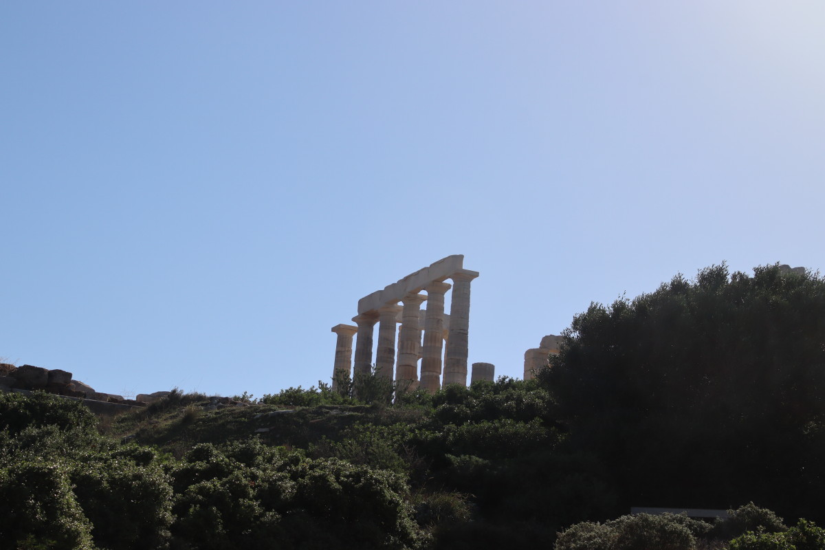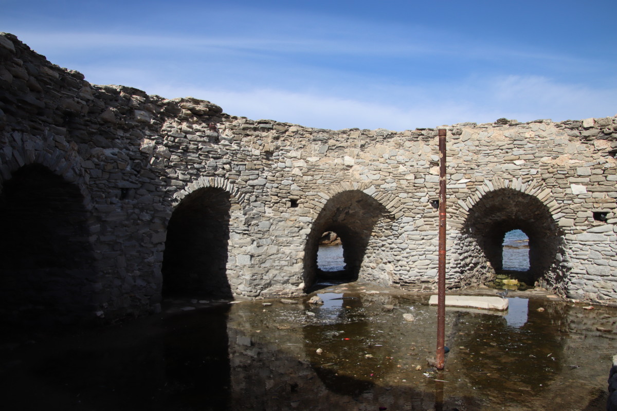En fin de journée le temps se calme un peu et on peu sortir pour s’aérer un peu en allant revoir la baie de Plakouti juste à l’Est de Partheni et dénicher temple d’Artemis de l’autre côté de la piste d’atterrissage (quelques pierres empilées et une toute petite chapelle)