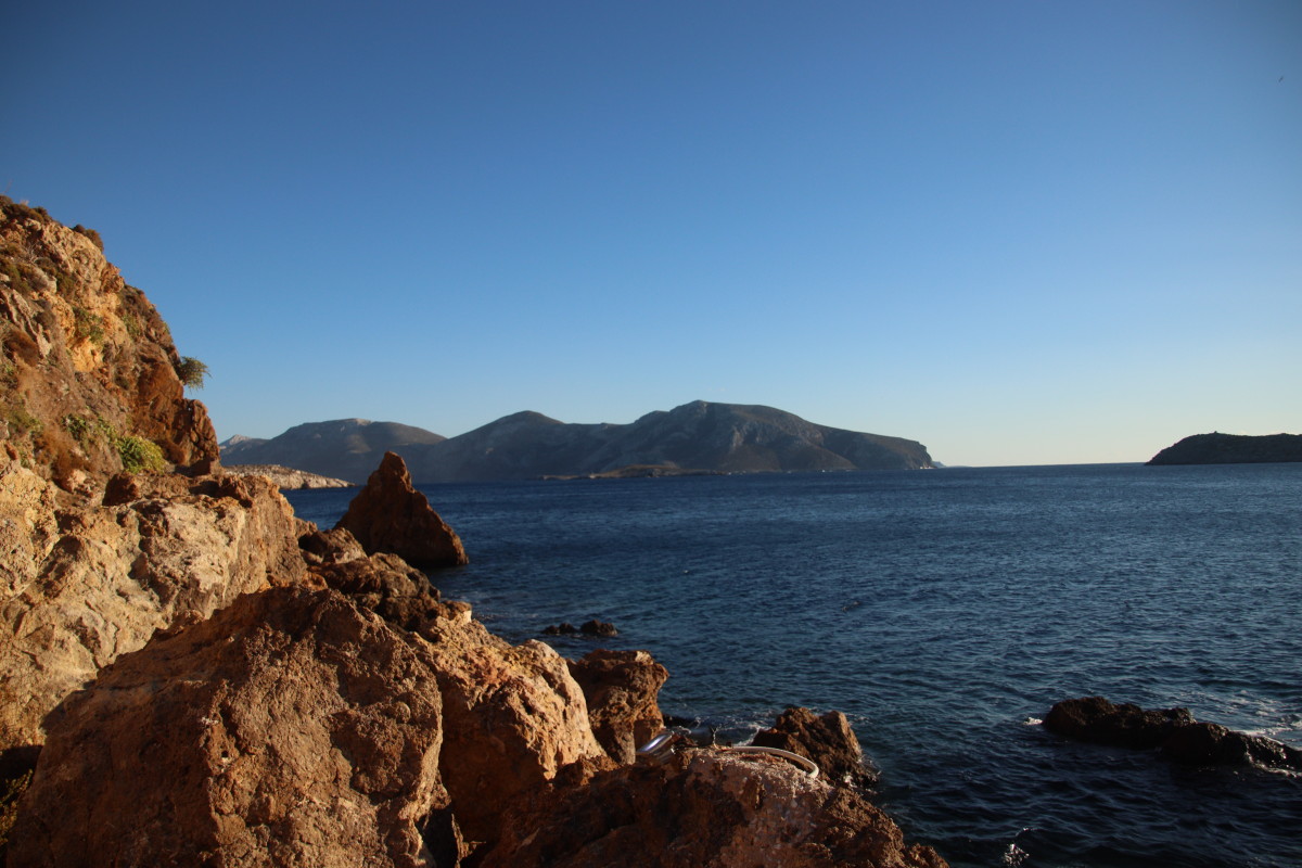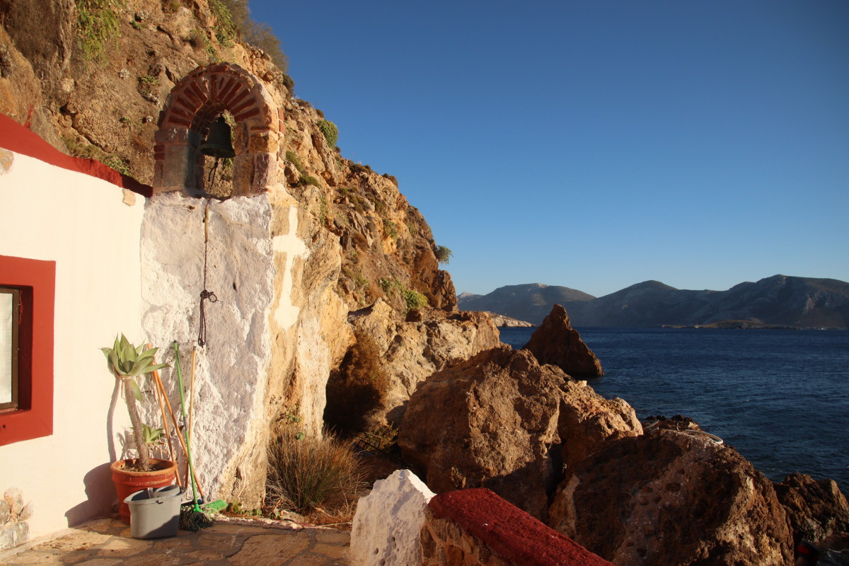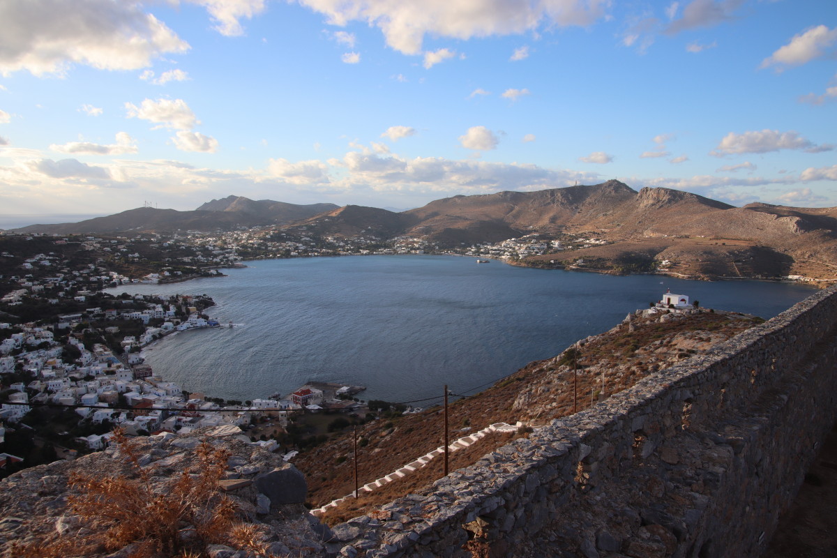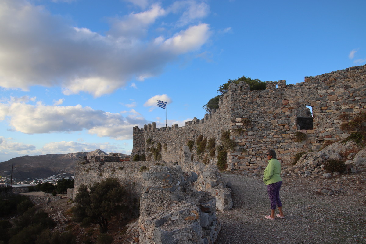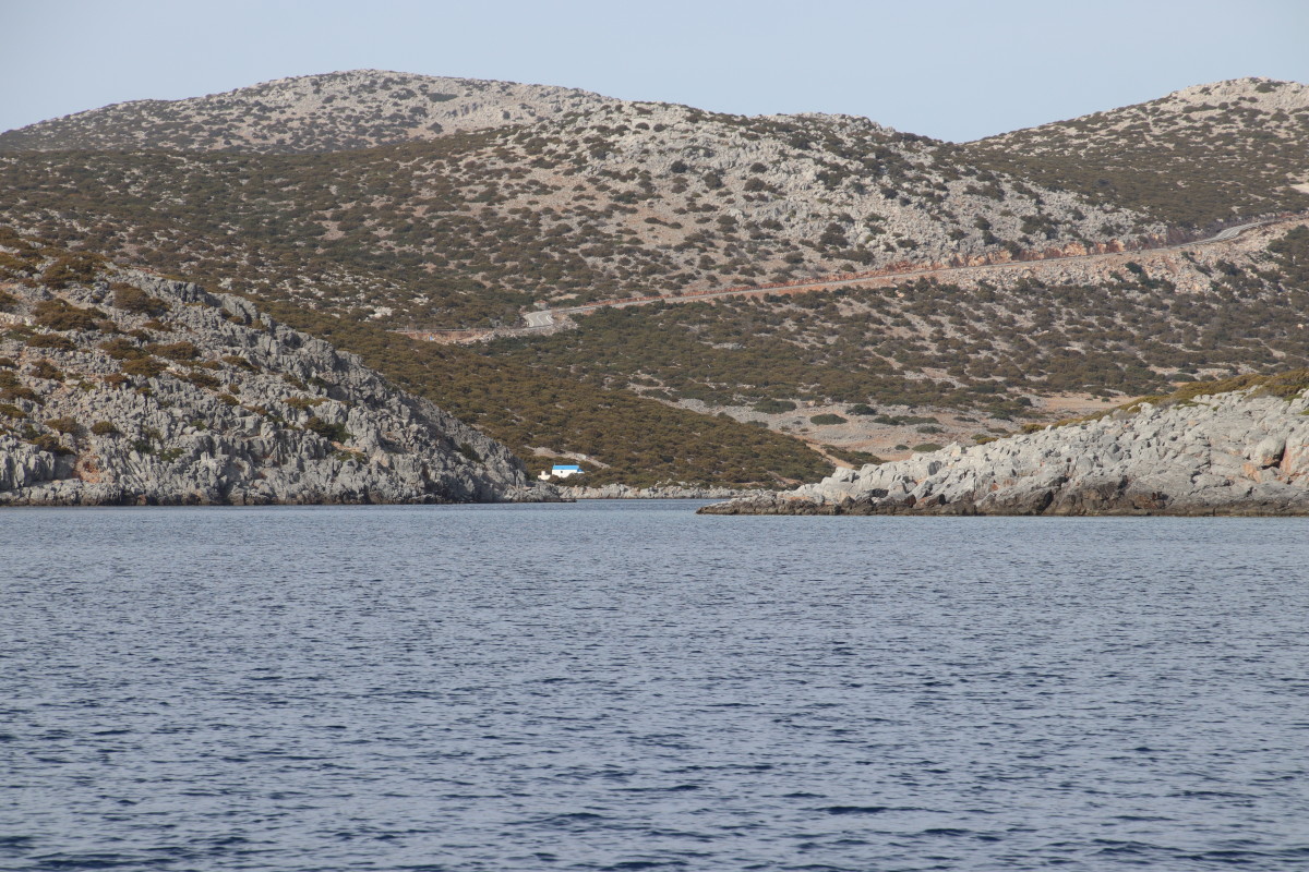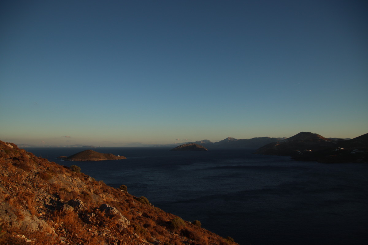 Première sortie le port de Laki et la chapelle de la Vierge Kavouradaina tout au sud de l’île. Il y a un camp d’hébergement de réfugiés à côté de Laki et on en voit beaucoup sur les bords de la route qui vont en ville faire leurs courses. La petite chapelle, nichée dans un creux de rocher sur la côte Est de la baie est vraiment adorable. La vue sur les sommets de Rethymno et les îlots parsèment le passage entre les deux îles est de toute beauté. Dans la lumière rasante de cette fin de journée la vue ferait plus penser au Lofoten qu’au Dodécanèse. Retour par Agia Marina et sa forteresse (malheureusement fermée nous y reviendrons dimanche) en rentrant nous empruntons ce qui semblait sur google maps un bon raccourci mais qui était en fait un sens interdit et sans doute la rue la plus étroite de l’île heureusement les habitants nous cèdent le passage et nous aident à nous en sortir. Les grecs sont vraiment des gens adorables dans une telle situation en France on se serait sans doute fait traiter de noms d’oiseaux.