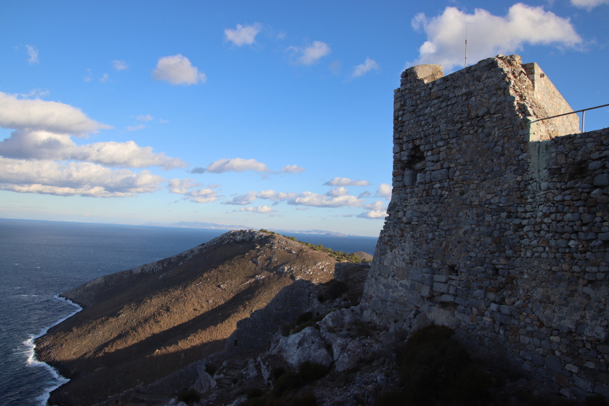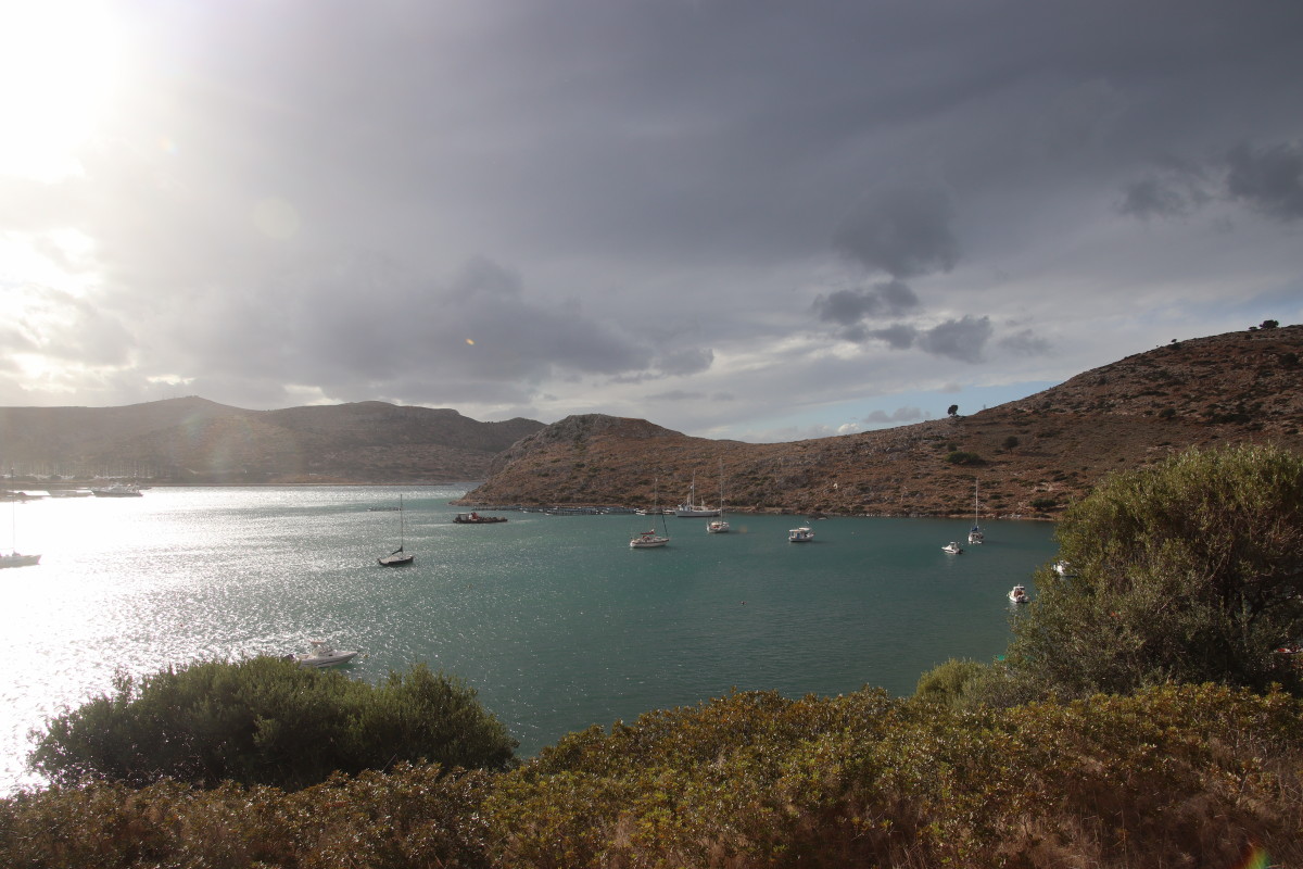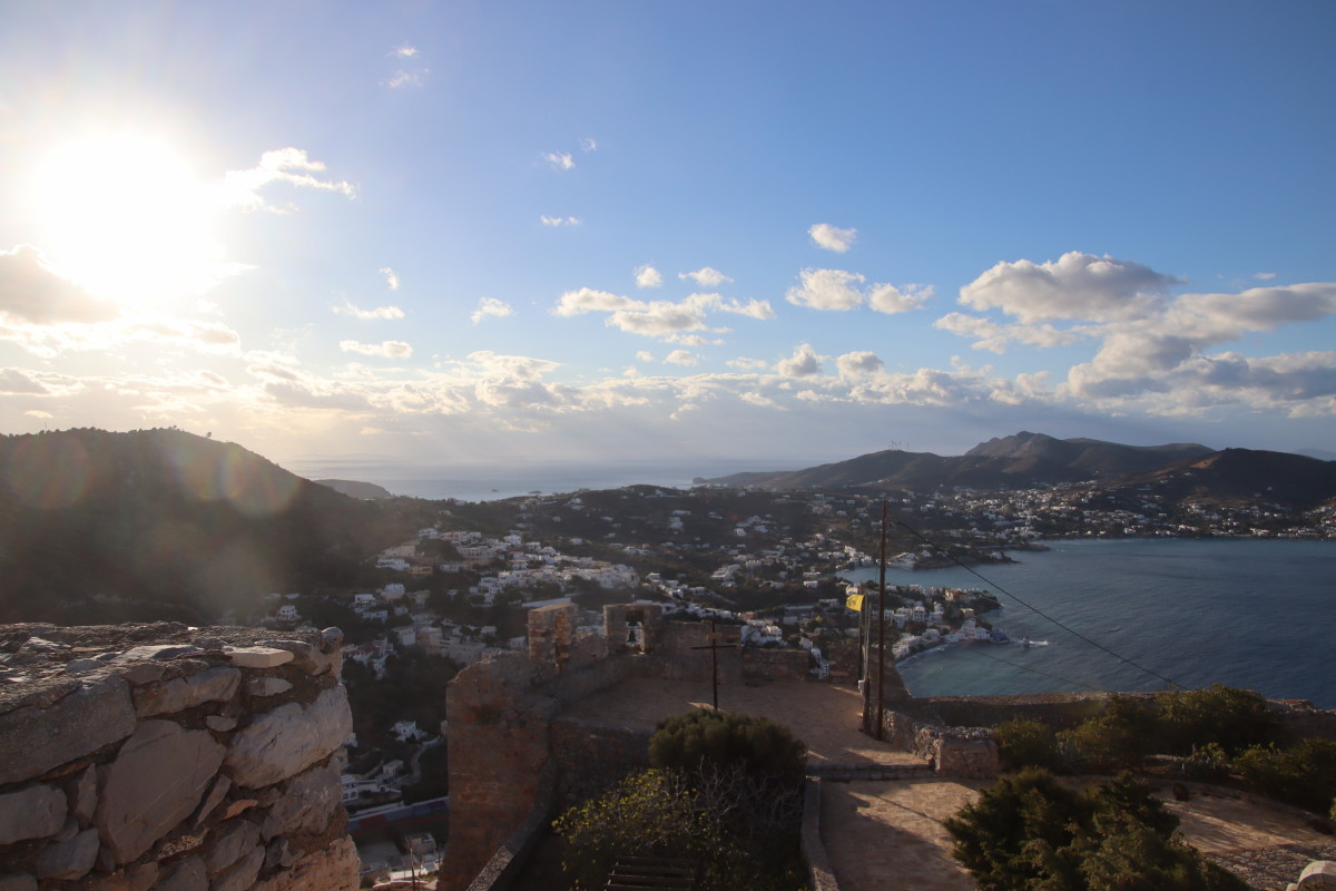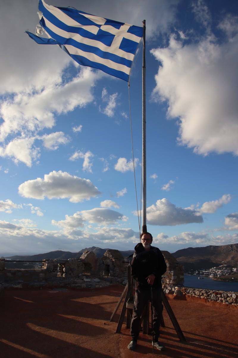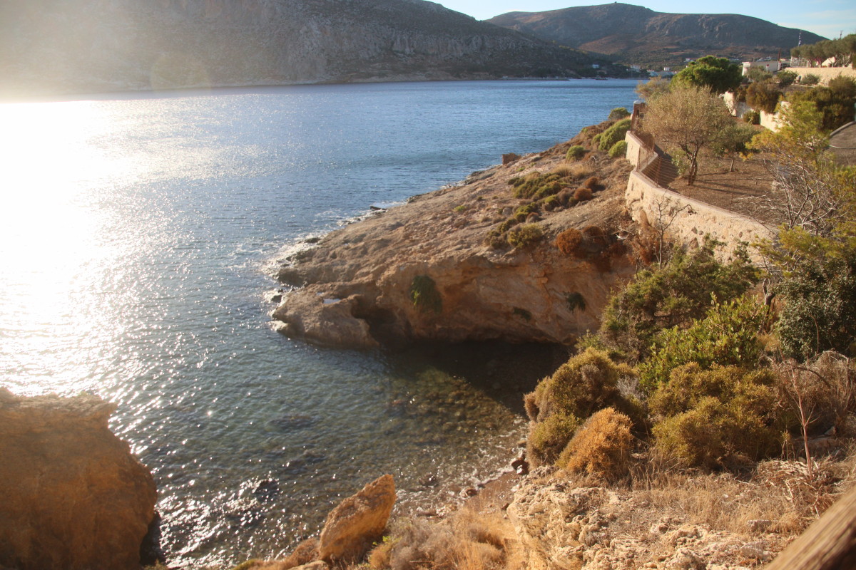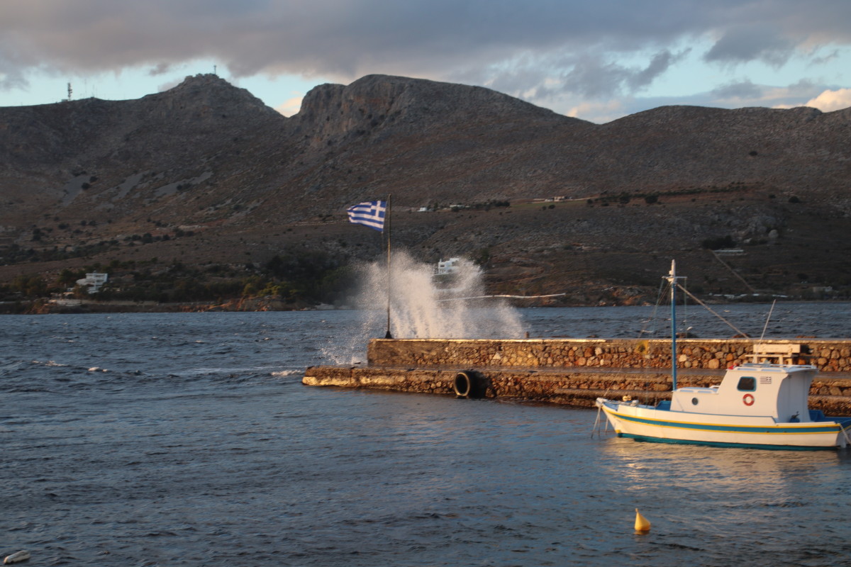 Première sortie le port de Laki et la chapelle de la Vierge Kavouradaina tout au sud de l’île. Il y a un camp d’hébergement de réfugiés à côté de Laki et on en voit beaucoup sur les bords de la route qui vont en ville faire leurs courses. La petite chapelle, nichée dans un creux de rocher sur la côte Est de la baie est vraiment adorable. La vue sur les sommets de Rethymno et les îlots parsèment le passage entre les deux îles est de toute beauté. Dans la lumière rasante de cette fin de journée la vue ferait plus penser au Lofoten qu’au Dodécanèse. Retour par Agia Marina et sa forteresse (malheureusement fermée nous y reviendrons dimanche) en rentrant nous empruntons ce qui semblait sur google maps un bon raccourci mais qui était en fait un sens interdit et sans doute la rue la plus étroite de l’île heureusement les habitants nous cèdent le passage et nous aident à nous en sortir. Les grecs sont vraiment des gens adorables dans une telle situation en France on se serait sans doute fait traiter de noms d’oiseaux.