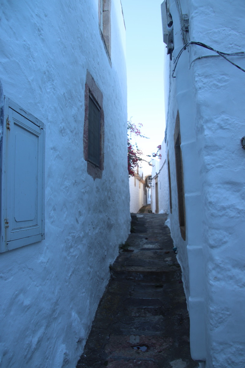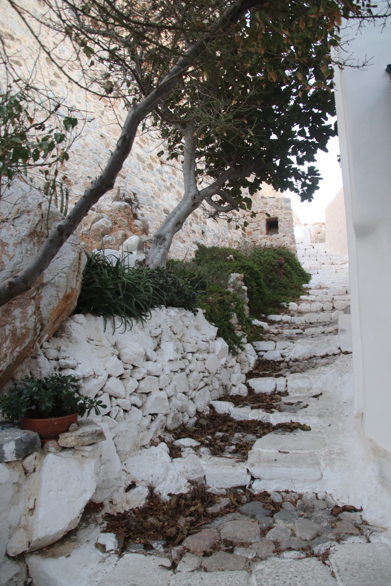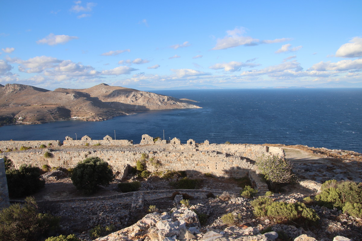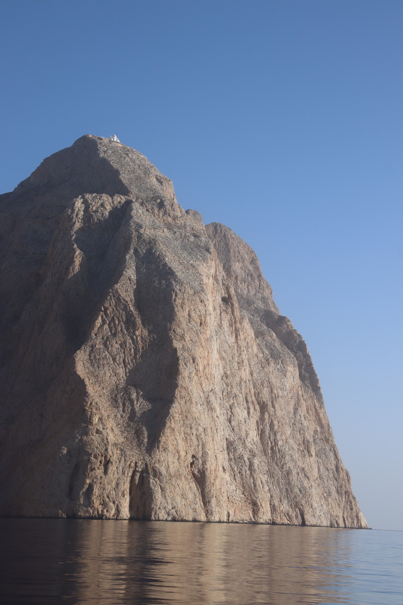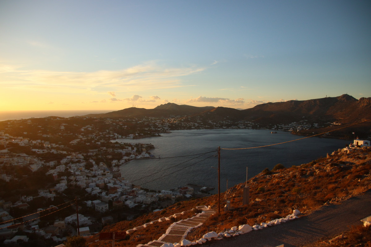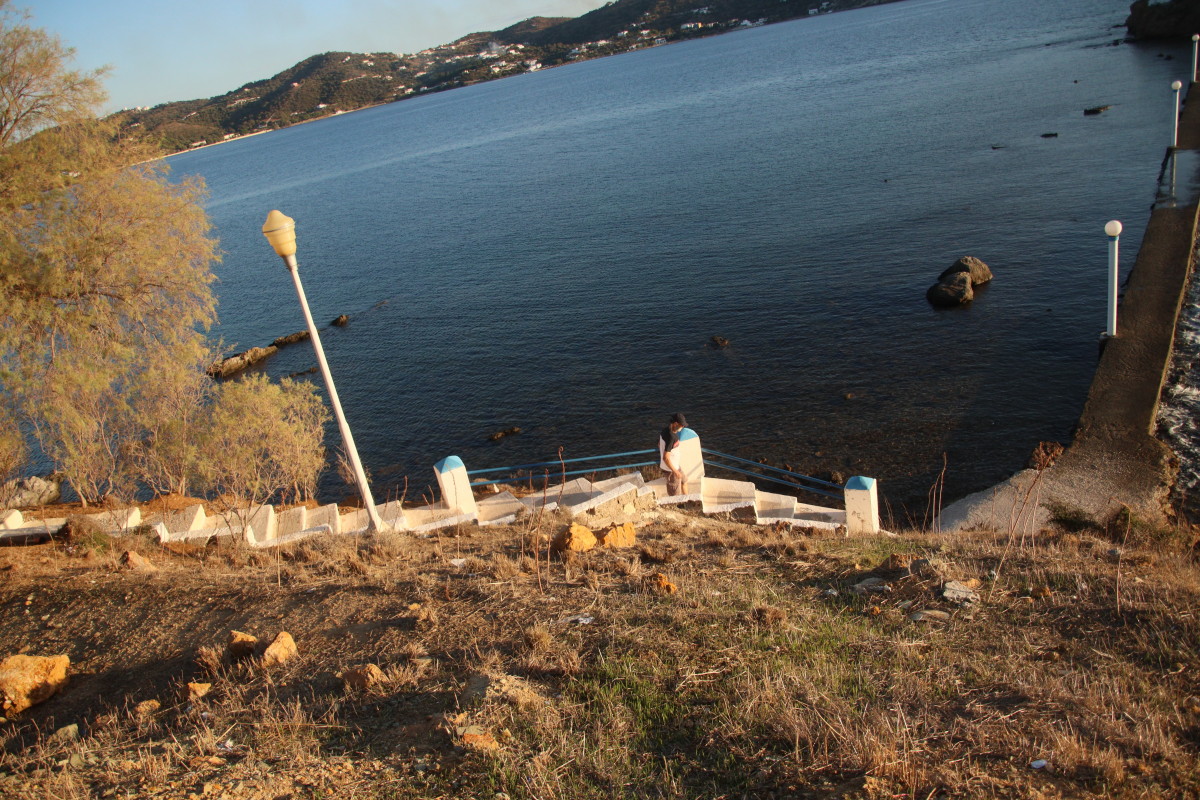Première sortie le port de Laki et la chapelle de la Vierge Kavouradaina tout au sud de l’île. Il y a un camp d’hébergement de réfugiés à côté de Laki et on en voit beaucoup sur les bords de la route qui vont en ville faire leurs courses. La petite chapelle, nichée dans un creux de rocher sur la côte Est de la baie est vraiment adorable. La vue sur les sommets de Rethymno et les îlots parsèment le passage entre les deux îles est de toute beauté. Dans la lumière rasante de cette fin de journée la vue ferait plus penser au Lofoten qu’au Dodécanèse. Retour par Agia Marina et sa forteresse (malheureusement fermée nous y reviendrons dimanche) en rentrant nous empruntons ce qui semblait sur google maps un bon raccourci mais qui était en fait un sens interdit et sans doute la rue la plus étroite de l’île heureusement les habitants nous cèdent le passage et nous aident à nous en sortir. Les grecs sont vraiment des gens adorables dans une telle situation en France on se serait sans doute fait traiter de noms d’oiseaux.
