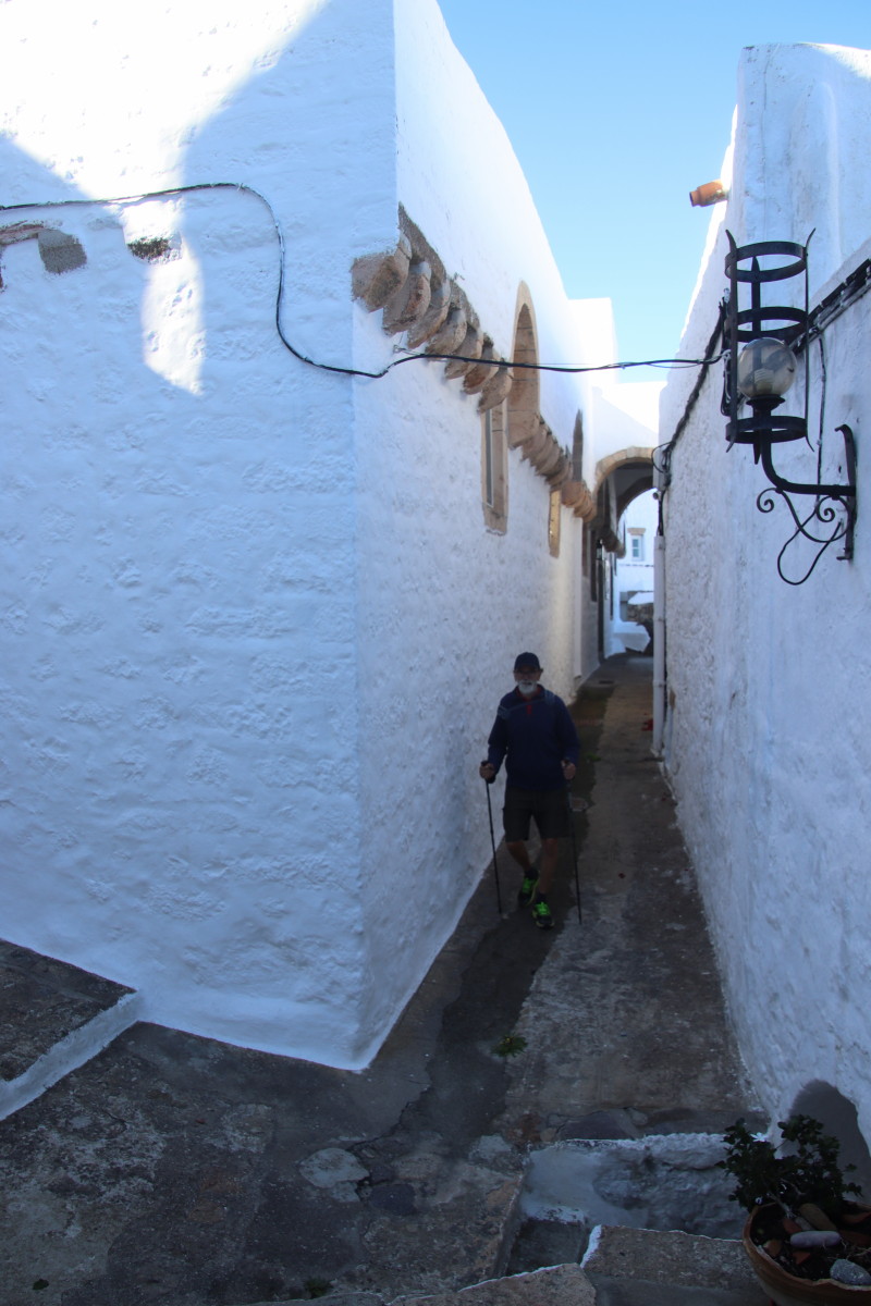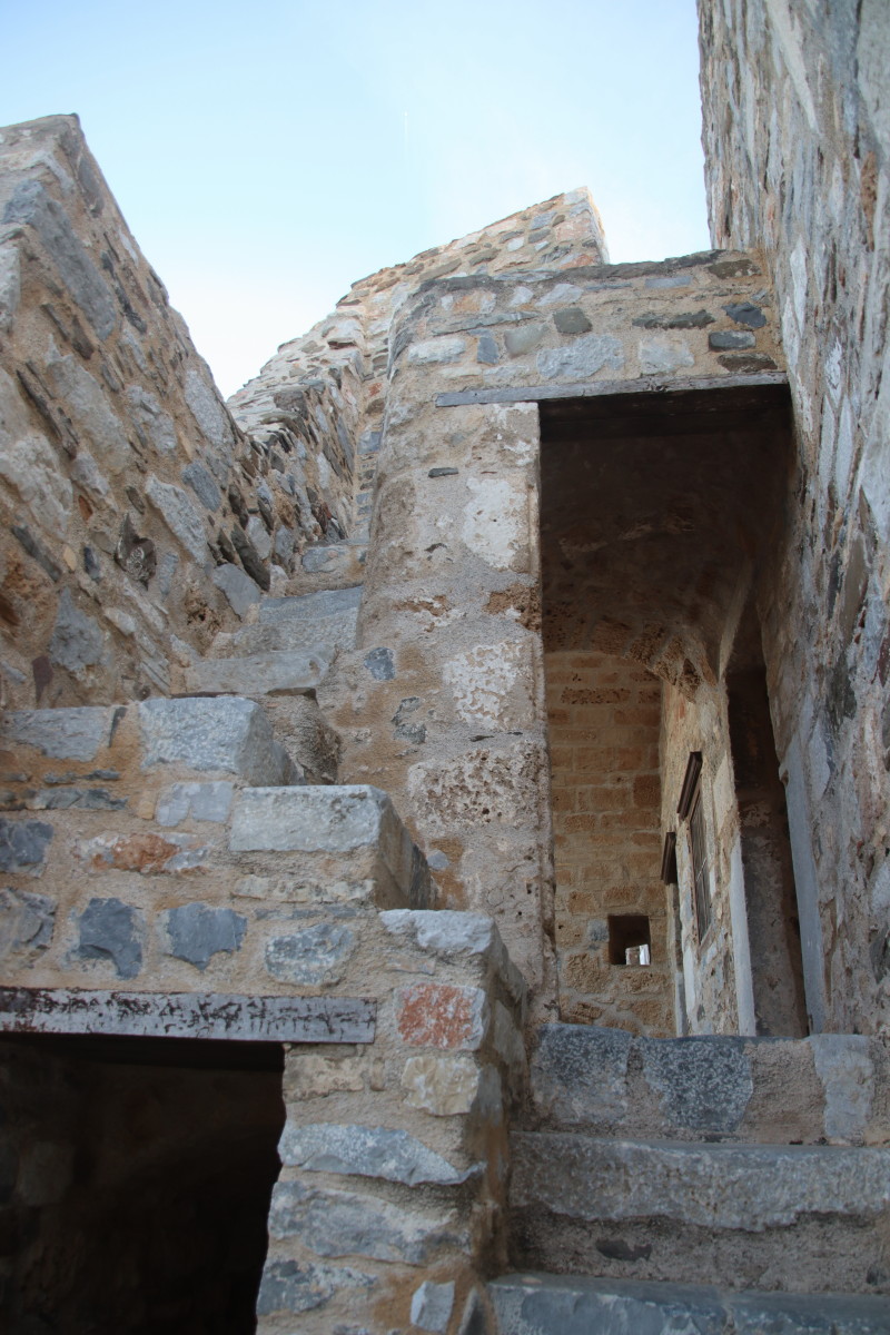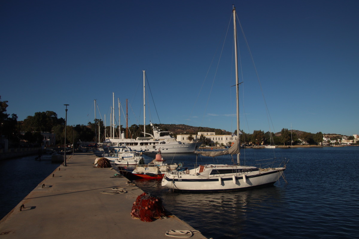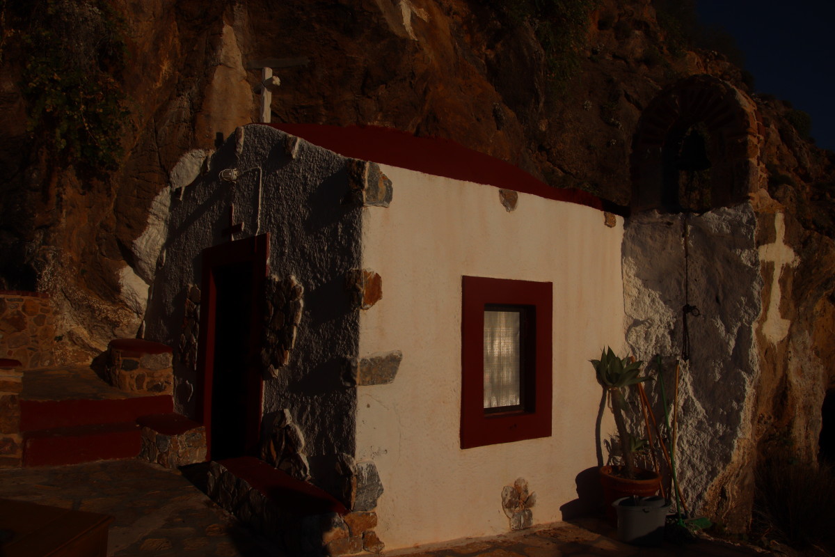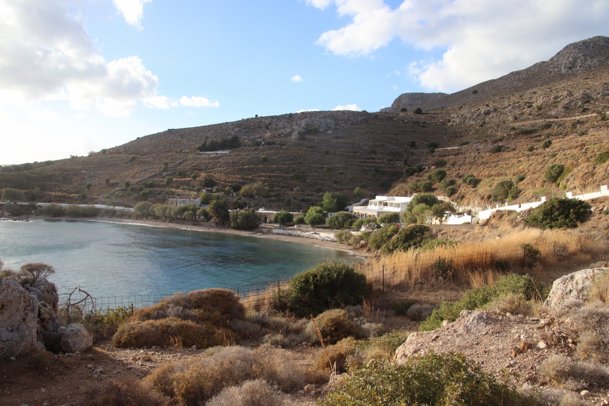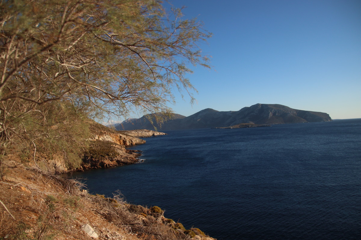 Première sortie le port de Laki et la chapelle de la Vierge Kavouradaina tout au sud de l’île. Il y a un camp d’hébergement de réfugiés à côté de Laki et on en voit beaucoup sur les bords de la route qui vont en ville faire leurs courses. La petite chapelle, nichée dans un creux de rocher sur la côte Est de la baie est vraiment adorable. La vue sur les sommets de Rethymno et les îlots parsèment le passage entre les deux îles est de toute beauté. Dans la lumière rasante de cette fin de journée la vue ferait plus penser au Lofoten qu’au Dodécanèse. Retour par Agia Marina et sa forteresse (malheureusement fermée nous y reviendrons dimanche) en rentrant nous empruntons ce qui semblait sur google maps un bon raccourci mais qui était en fait un sens interdit et sans doute la rue la plus étroite de l’île heureusement les habitants nous cèdent le passage et nous aident à nous en sortir. Les grecs sont vraiment des gens adorables dans une telle situation en France on se serait sans doute fait traiter de noms d’oiseaux.