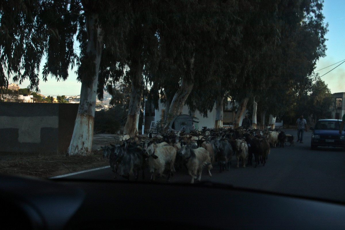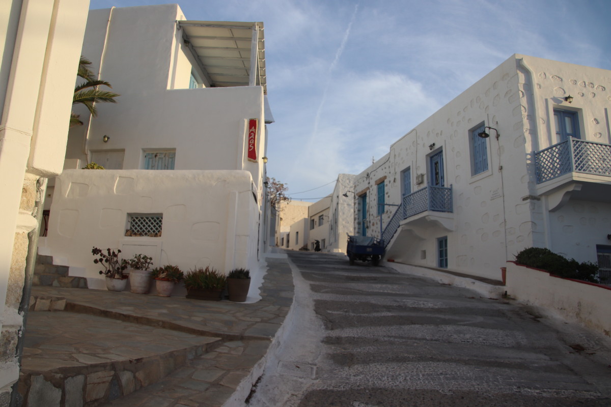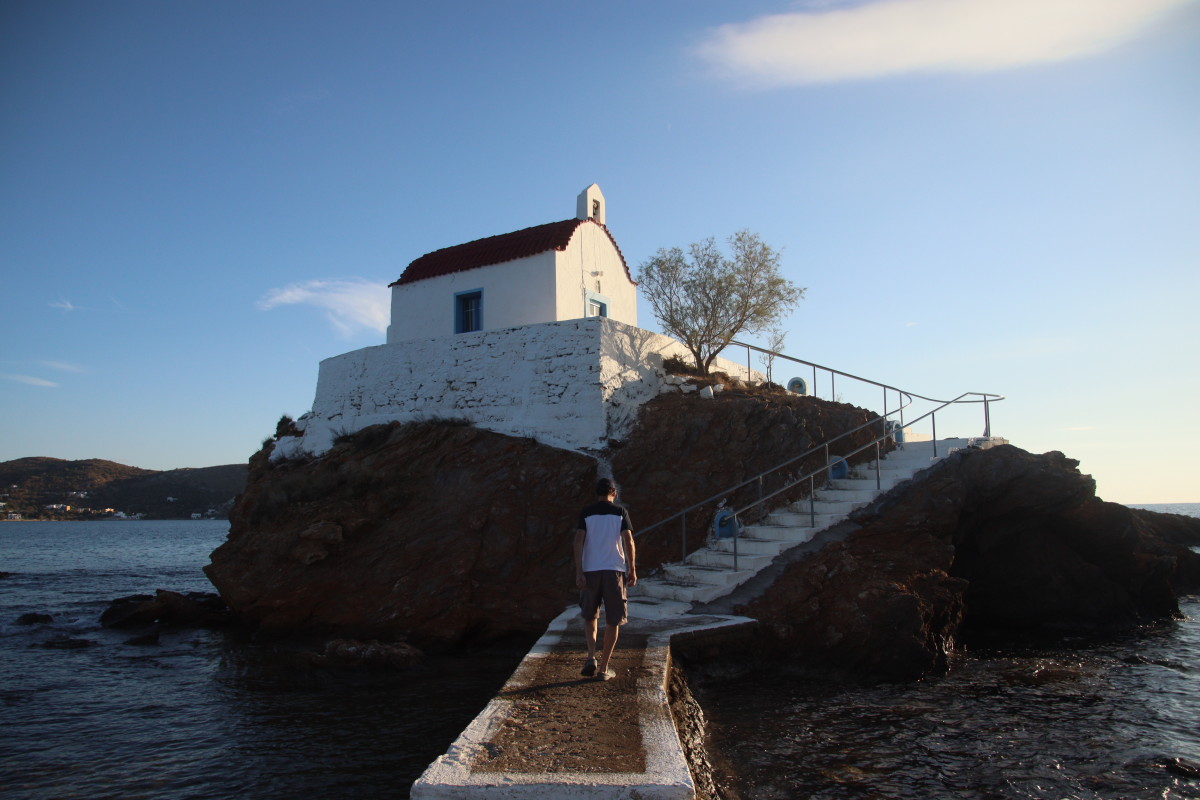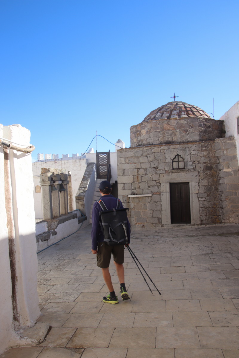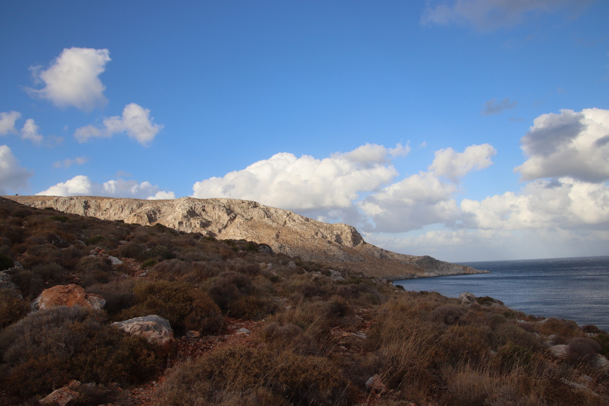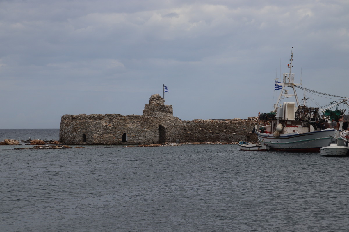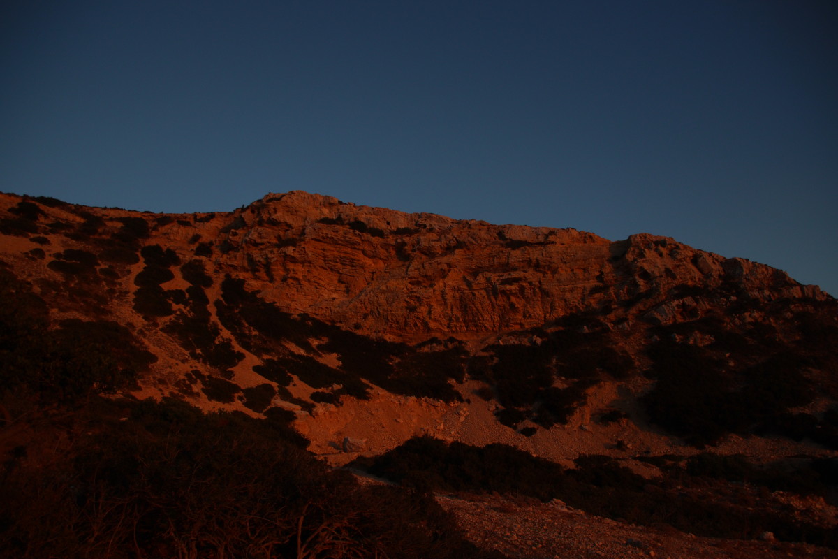 Première sortie le port de Laki et la chapelle de la Vierge Kavouradaina tout au sud de l’île. Il y a un camp d’hébergement de réfugiés à côté de Laki et on en voit beaucoup sur les bords de la route qui vont en ville faire leurs courses. La petite chapelle, nichée dans un creux de rocher sur la côte Est de la baie est vraiment adorable. La vue sur les sommets de Rethymno et les îlots parsèment le passage entre les deux îles est de toute beauté. Dans la lumière rasante de cette fin de journée la vue ferait plus penser au Lofoten qu’au Dodécanèse. Retour par Agia Marina et sa forteresse (malheureusement fermée nous y reviendrons dimanche) en rentrant nous empruntons ce qui semblait sur google maps un bon raccourci mais qui était en fait un sens interdit et sans doute la rue la plus étroite de l’île heureusement les habitants nous cèdent le passage et nous aident à nous en sortir. Les grecs sont vraiment des gens adorables dans une telle situation en France on se serait sans doute fait traiter de noms d’oiseaux.