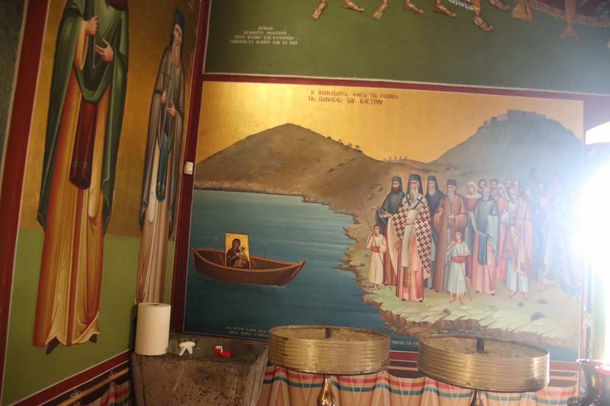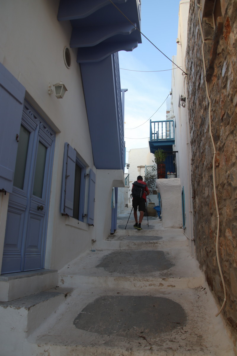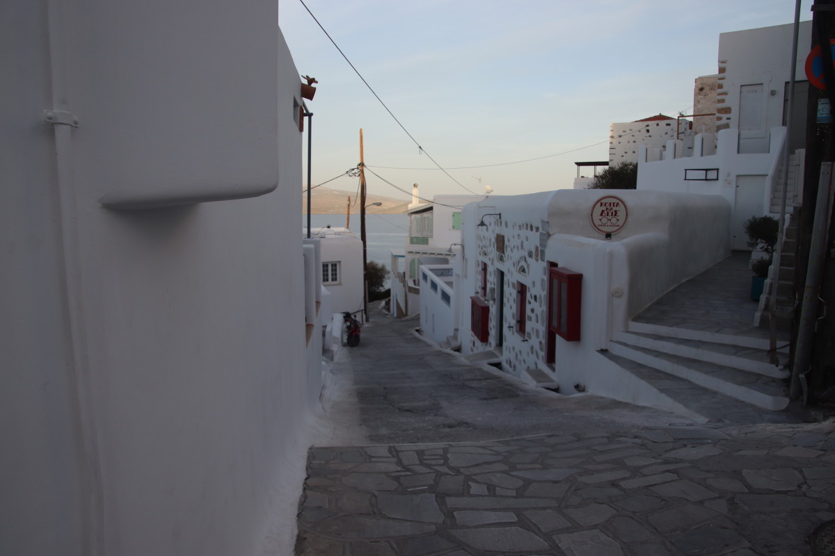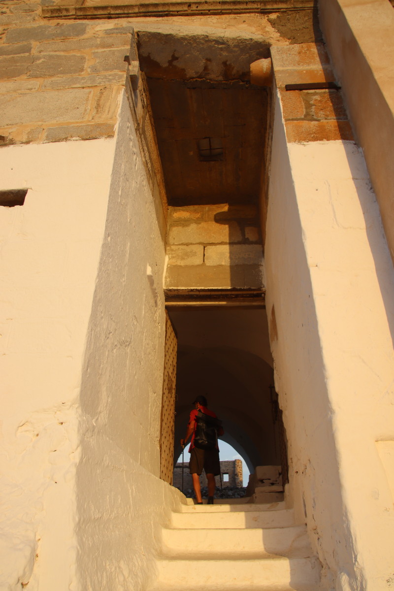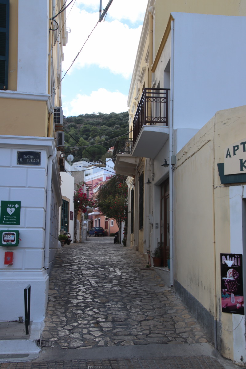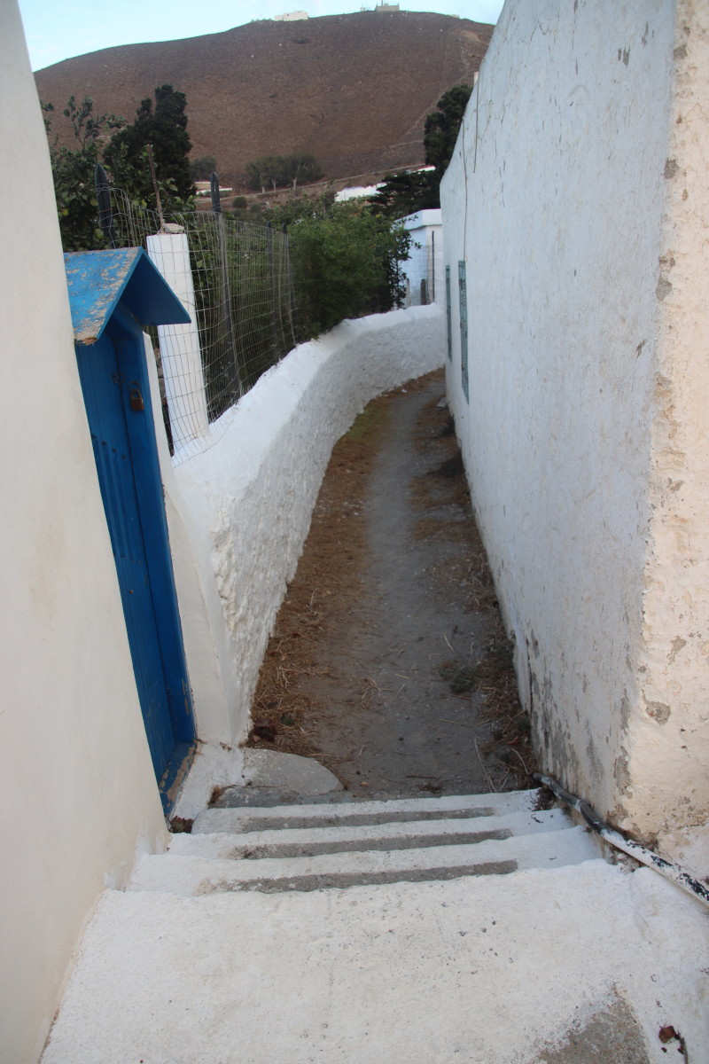 Première sortie le port de Laki et la chapelle de la Vierge Kavouradaina tout au sud de l’île. Il y a un camp d’hébergement de réfugiés à côté de Laki et on en voit beaucoup sur les bords de la route qui vont en ville faire leurs courses. La petite chapelle, nichée dans un creux de rocher sur la côte Est de la baie est vraiment adorable. La vue sur les sommets de Rethymno et les îlots parsèment le passage entre les deux îles est de toute beauté. Dans la lumière rasante de cette fin de journée la vue ferait plus penser au Lofoten qu’au Dodécanèse. Retour par Agia Marina et sa forteresse (malheureusement fermée nous y reviendrons dimanche) en rentrant nous empruntons ce qui semblait sur google maps un bon raccourci mais qui était en fait un sens interdit et sans doute la rue la plus étroite de l’île heureusement les habitants nous cèdent le passage et nous aident à nous en sortir. Les grecs sont vraiment des gens adorables dans une telle situation en France on se serait sans doute fait traiter de noms d’oiseaux.