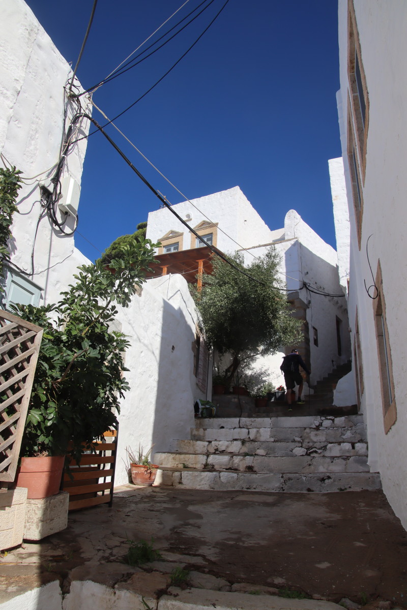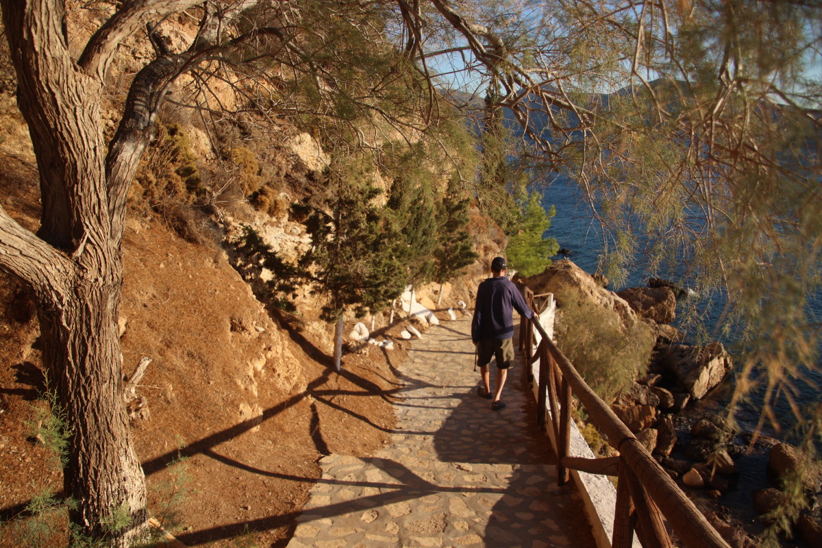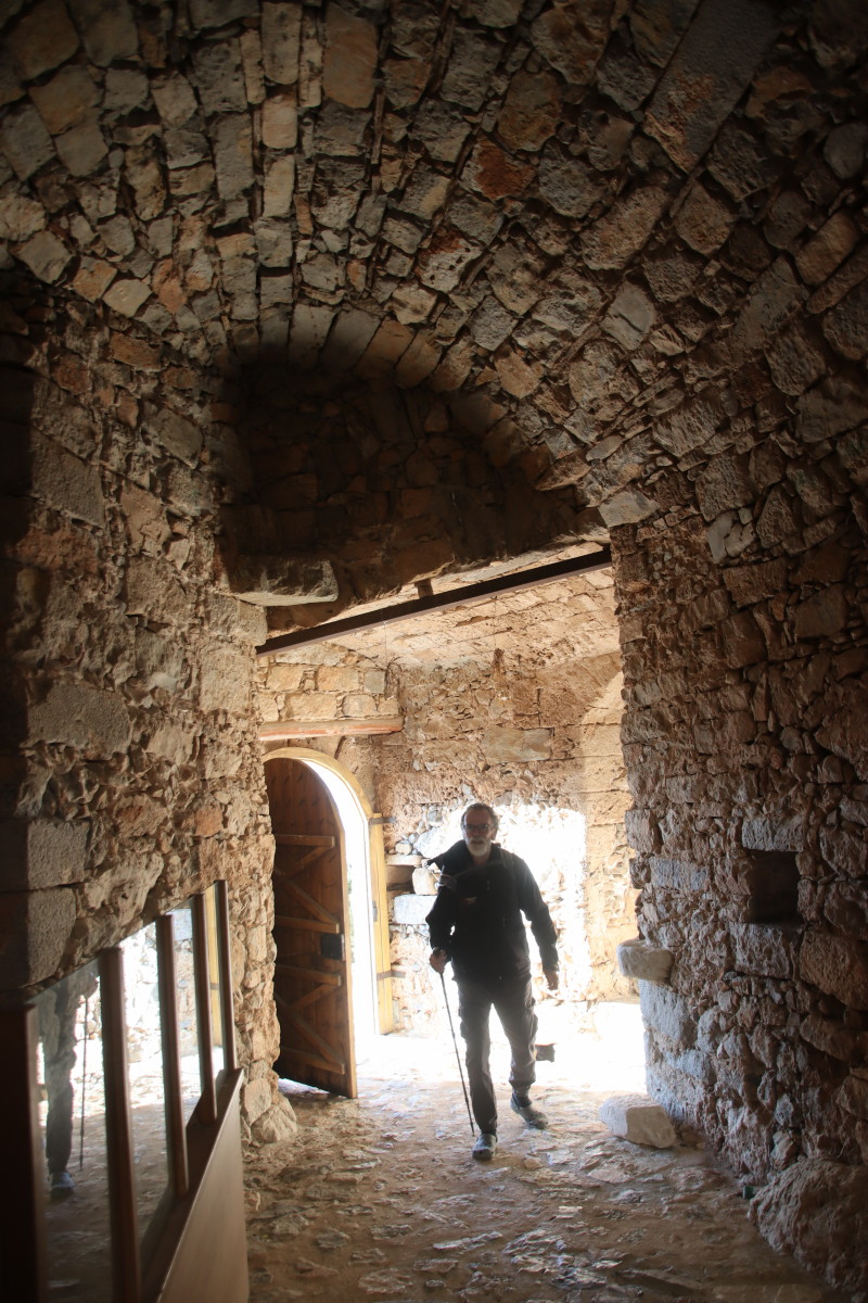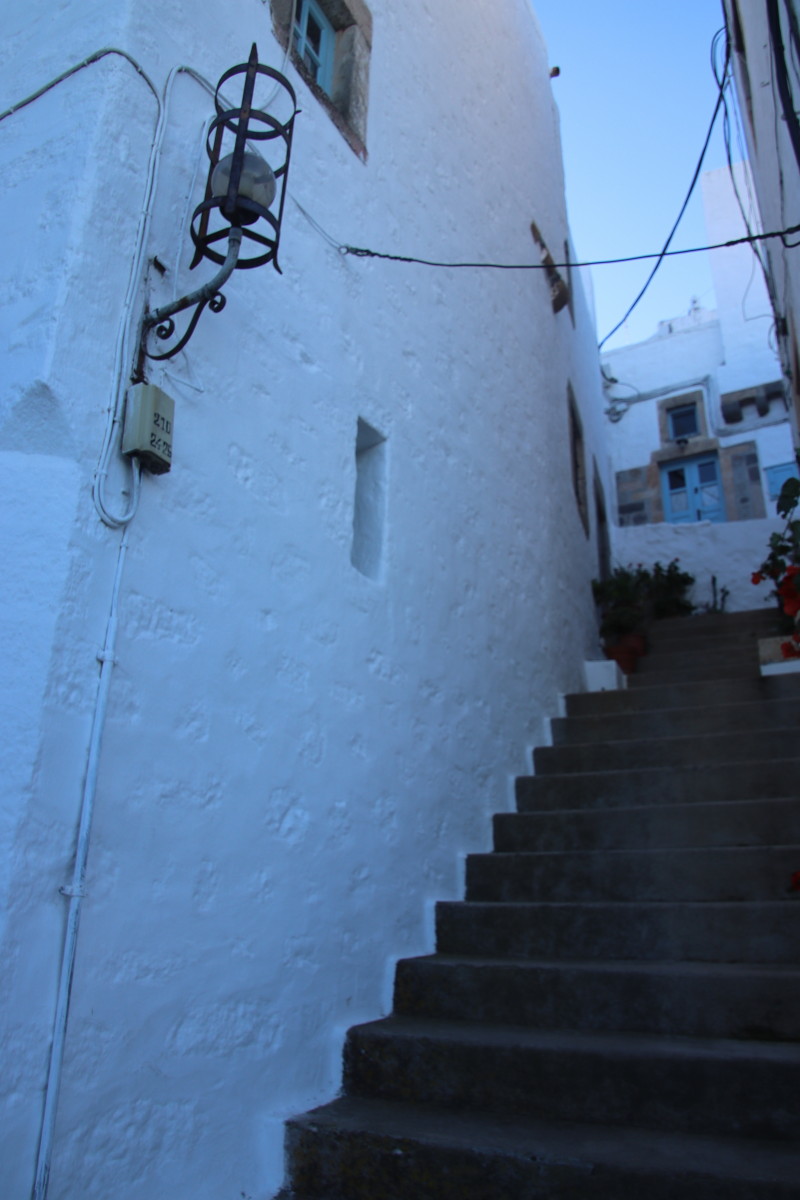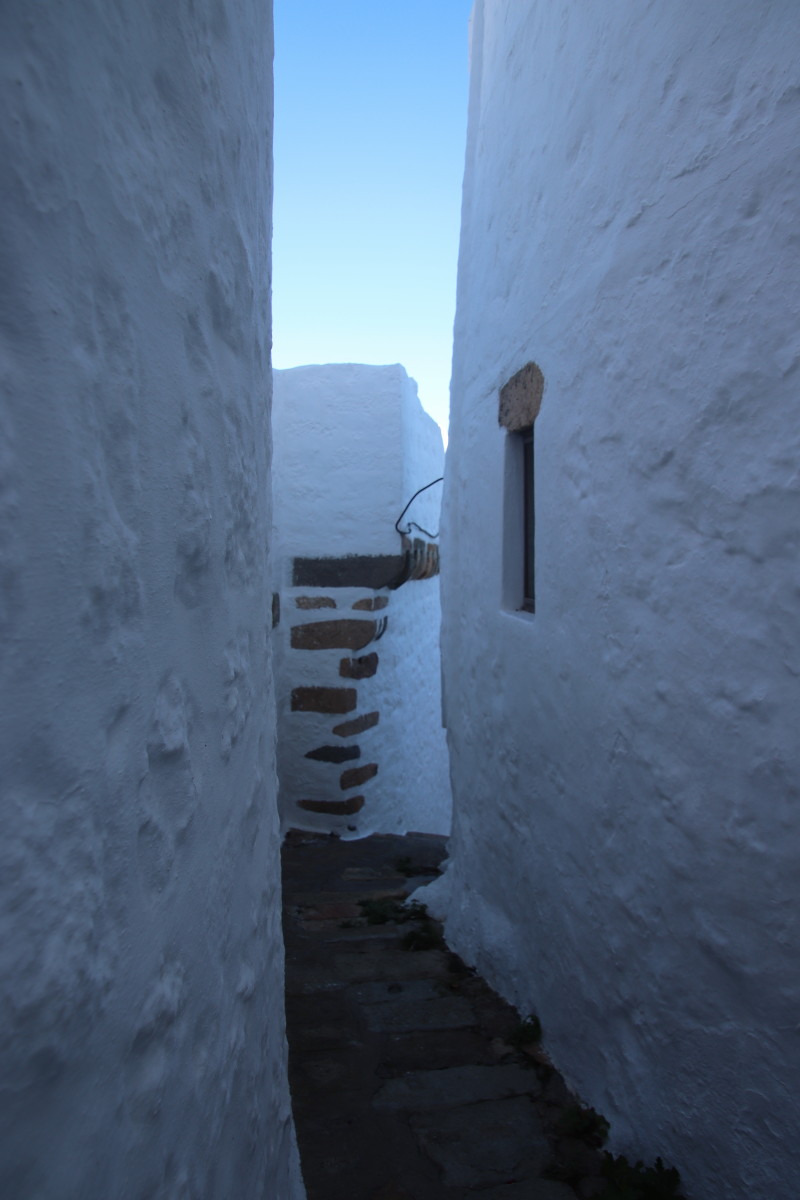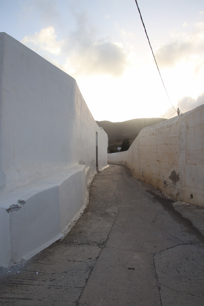 Première sortie le port de Laki et la chapelle de la Vierge Kavouradaina tout au sud de l’île. Il y a un camp d’hébergement de réfugiés à côté de Laki et on en voit beaucoup sur les bords de la route qui vont en ville faire leurs courses. La petite chapelle, nichée dans un creux de rocher sur la côte Est de la baie est vraiment adorable. La vue sur les sommets de Rethymno et les îlots parsèment le passage entre les deux îles est de toute beauté. Dans la lumière rasante de cette fin de journée la vue ferait plus penser au Lofoten qu’au Dodécanèse. Retour par Agia Marina et sa forteresse (malheureusement fermée nous y reviendrons dimanche) en rentrant nous empruntons ce qui semblait sur google maps un bon raccourci mais qui était en fait un sens interdit et sans doute la rue la plus étroite de l’île heureusement les habitants nous cèdent le passage et nous aident à nous en sortir. Les grecs sont vraiment des gens adorables dans une telle situation en France on se serait sans doute fait traiter de noms d’oiseaux.