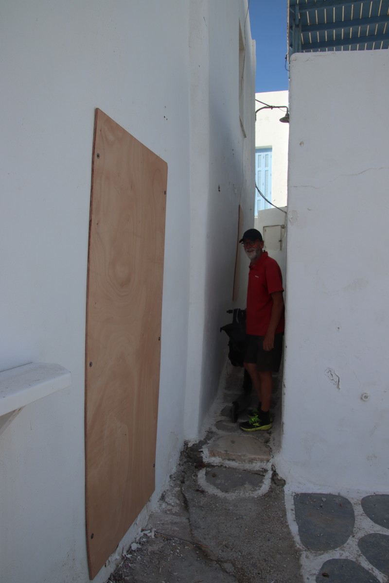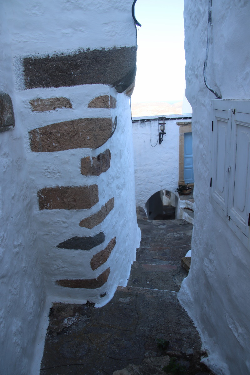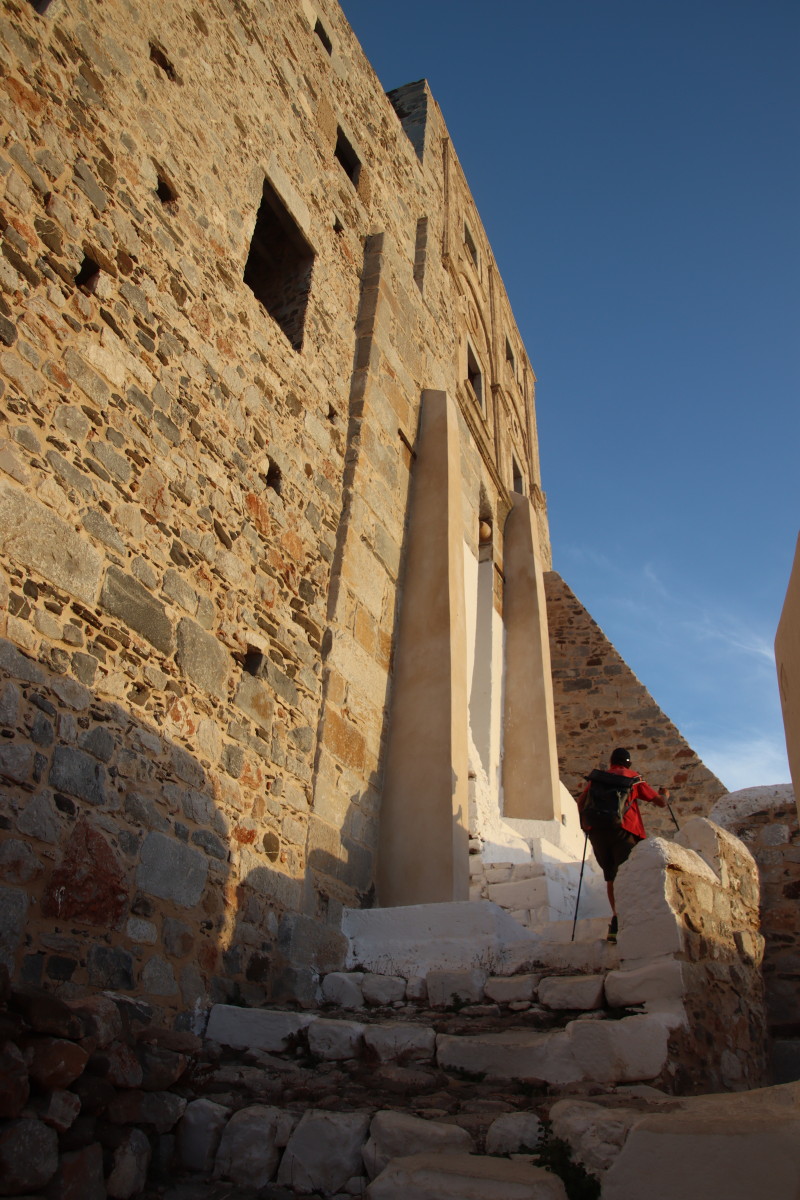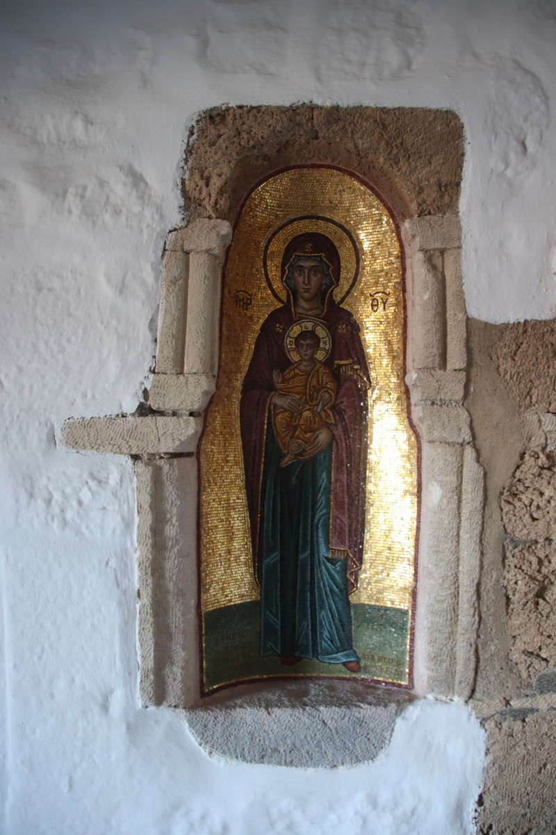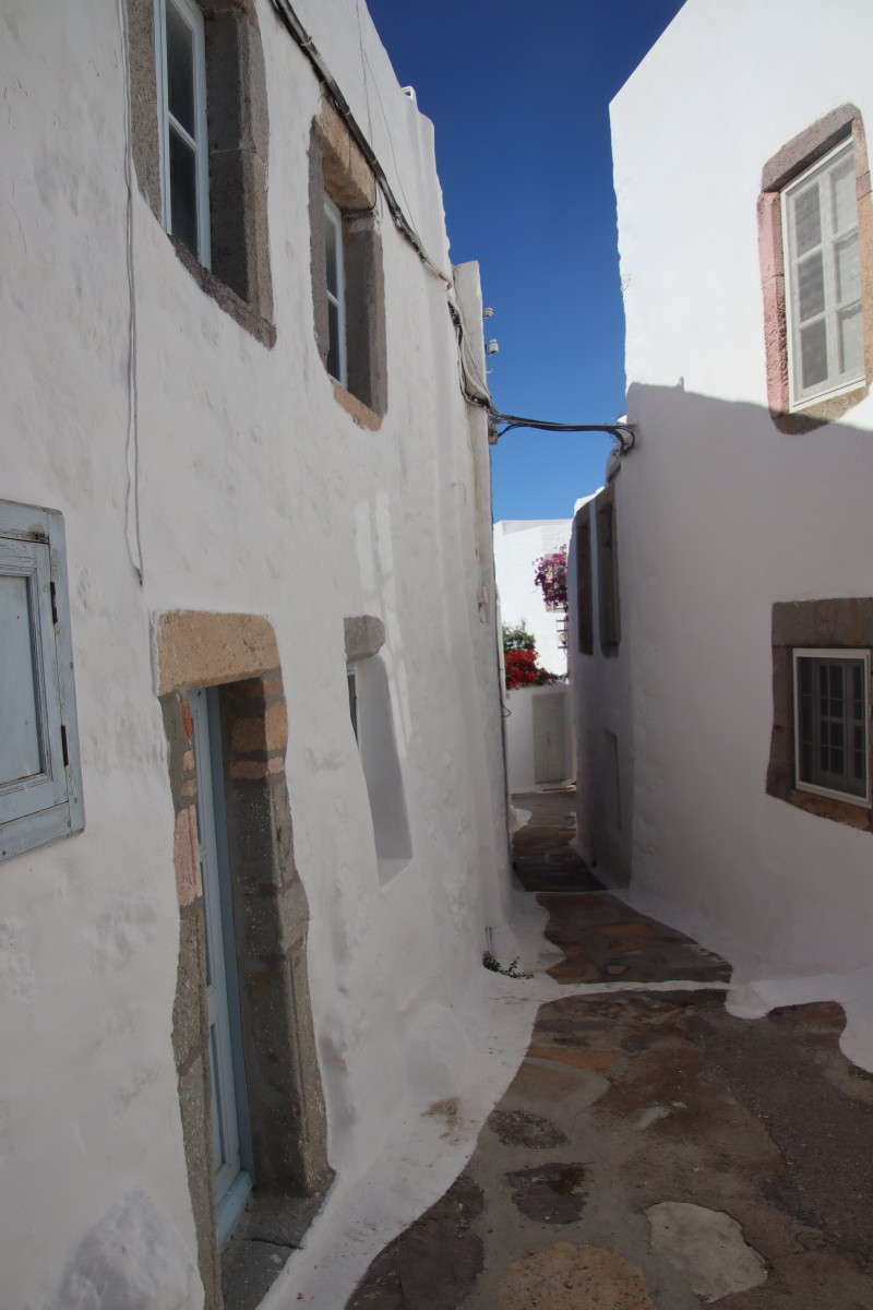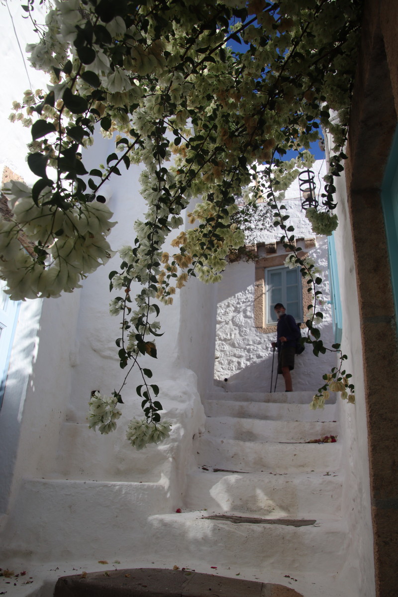 Première sortie le port de Laki et la chapelle de la Vierge Kavouradaina tout au sud de l’île. Il y a un camp d’hébergement de réfugiés à côté de Laki et on en voit beaucoup sur les bords de la route qui vont en ville faire leurs courses. La petite chapelle, nichée dans un creux de rocher sur la côte Est de la baie est vraiment adorable. La vue sur les sommets de Rethymno et les îlots parsèment le passage entre les deux îles est de toute beauté. Dans la lumière rasante de cette fin de journée la vue ferait plus penser au Lofoten qu’au Dodécanèse. Retour par Agia Marina et sa forteresse (malheureusement fermée nous y reviendrons dimanche) en rentrant nous empruntons ce qui semblait sur google maps un bon raccourci mais qui était en fait un sens interdit et sans doute la rue la plus étroite de l’île heureusement les habitants nous cèdent le passage et nous aident à nous en sortir. Les grecs sont vraiment des gens adorables dans une telle situation en France on se serait sans doute fait traiter de noms d’oiseaux.