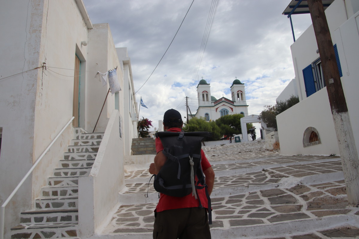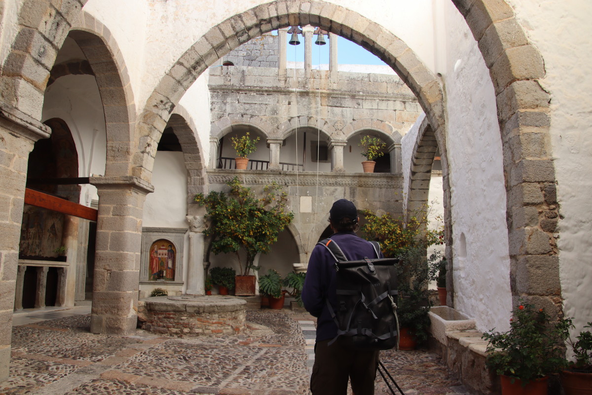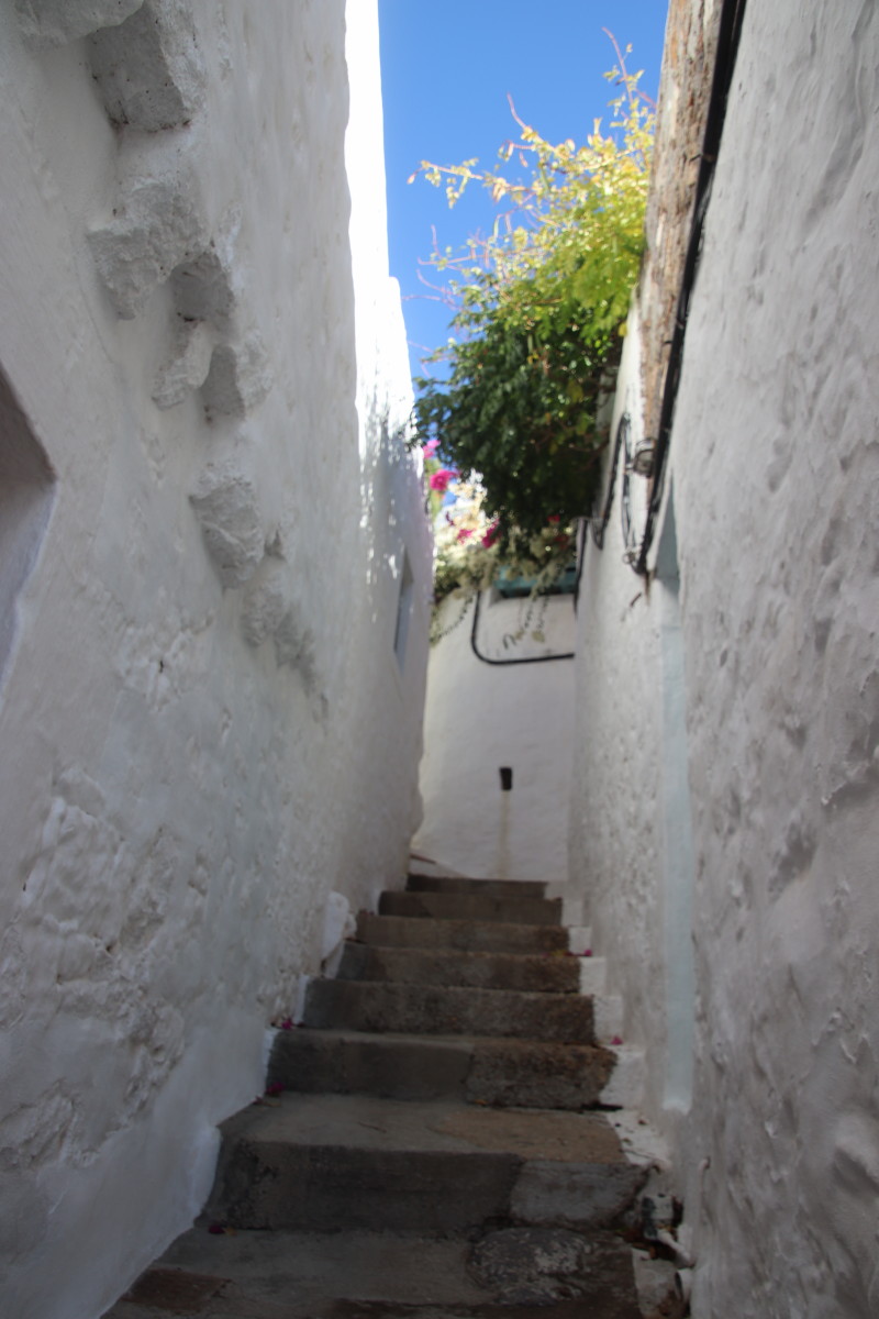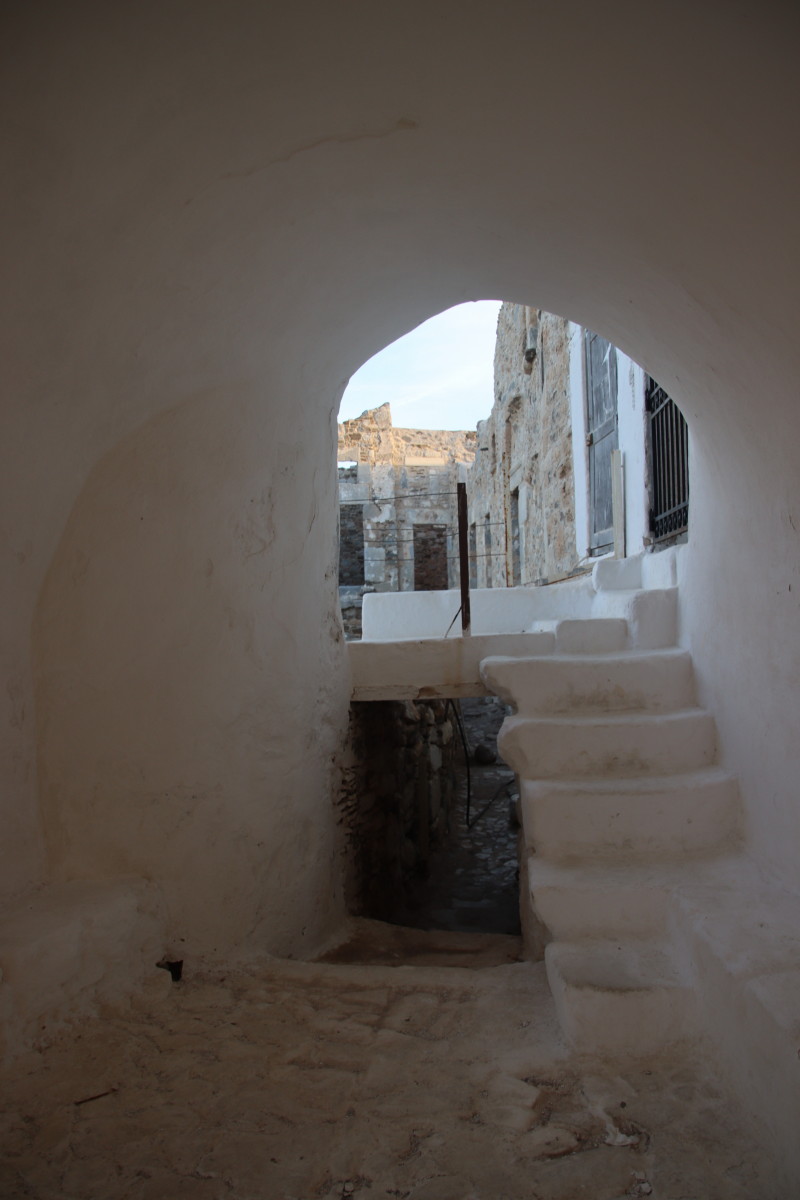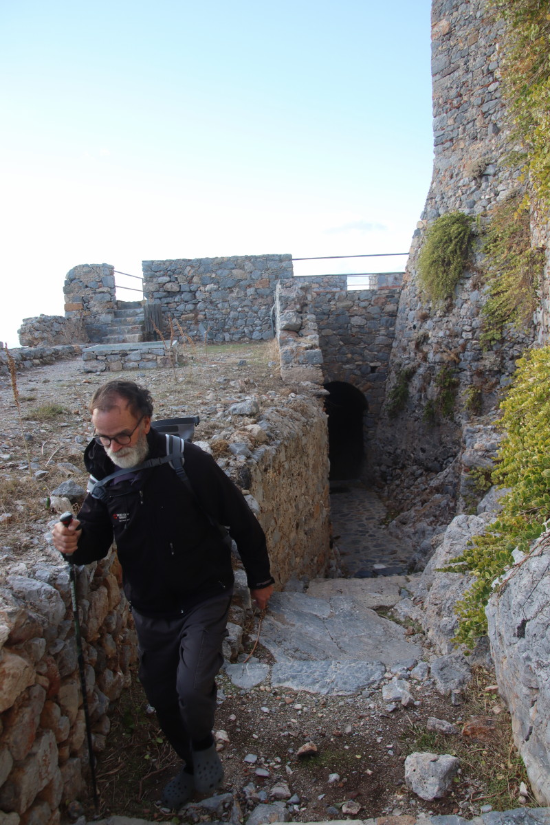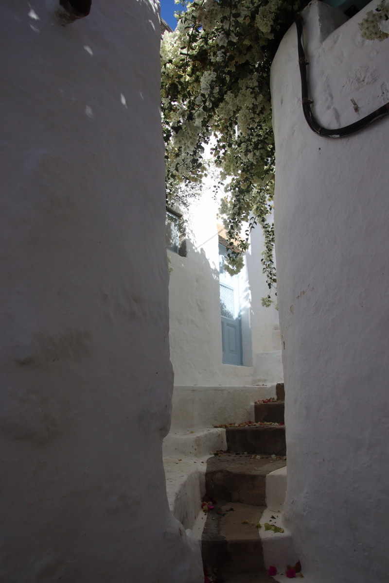 Première sortie le port de Laki et la chapelle de la Vierge Kavouradaina tout au sud de l’île. Il y a un camp d’hébergement de réfugiés à côté de Laki et on en voit beaucoup sur les bords de la route qui vont en ville faire leurs courses. La petite chapelle, nichée dans un creux de rocher sur la côte Est de la baie est vraiment adorable. La vue sur les sommets de Rethymno et les îlots parsèment le passage entre les deux îles est de toute beauté. Dans la lumière rasante de cette fin de journée la vue ferait plus penser au Lofoten qu’au Dodécanèse. Retour par Agia Marina et sa forteresse (malheureusement fermée nous y reviendrons dimanche) en rentrant nous empruntons ce qui semblait sur google maps un bon raccourci mais qui était en fait un sens interdit et sans doute la rue la plus étroite de l’île heureusement les habitants nous cèdent le passage et nous aident à nous en sortir. Les grecs sont vraiment des gens adorables dans une telle situation en France on se serait sans doute fait traiter de noms d’oiseaux.