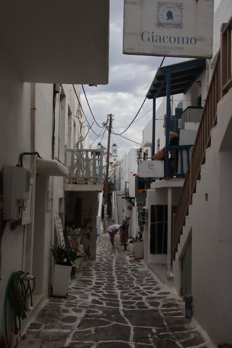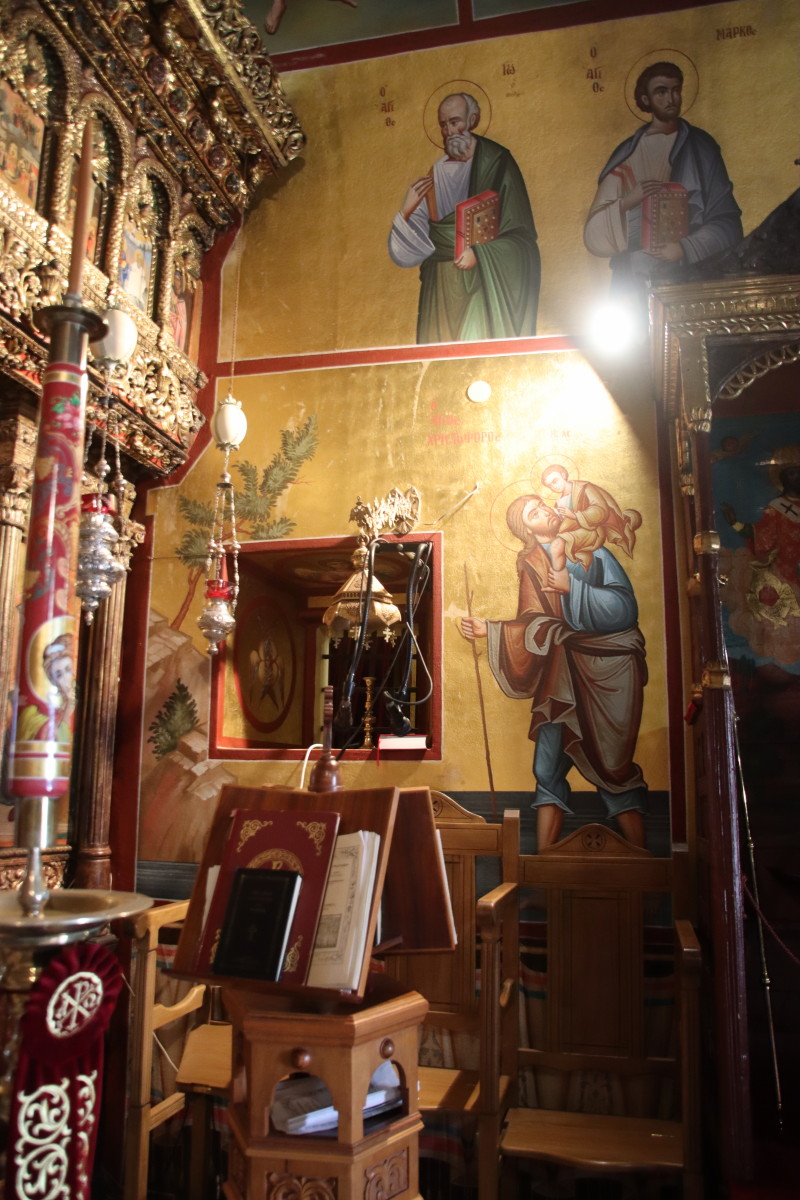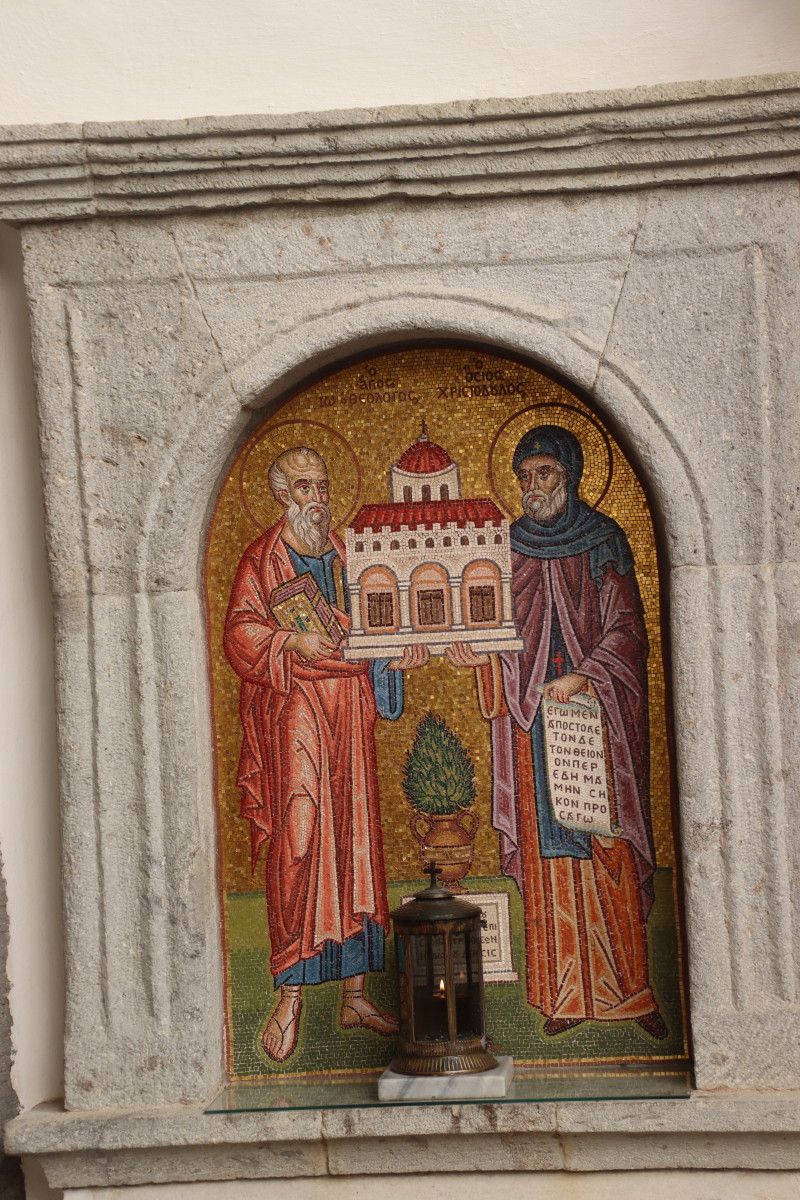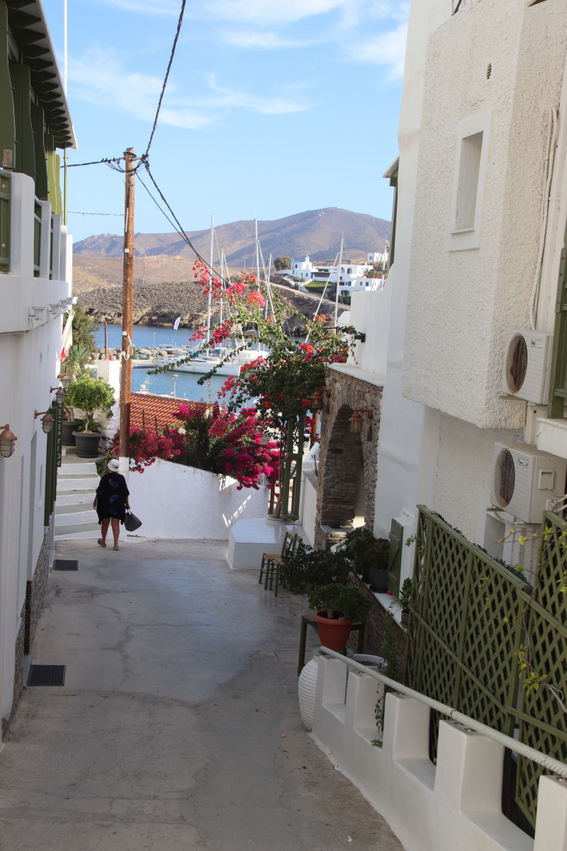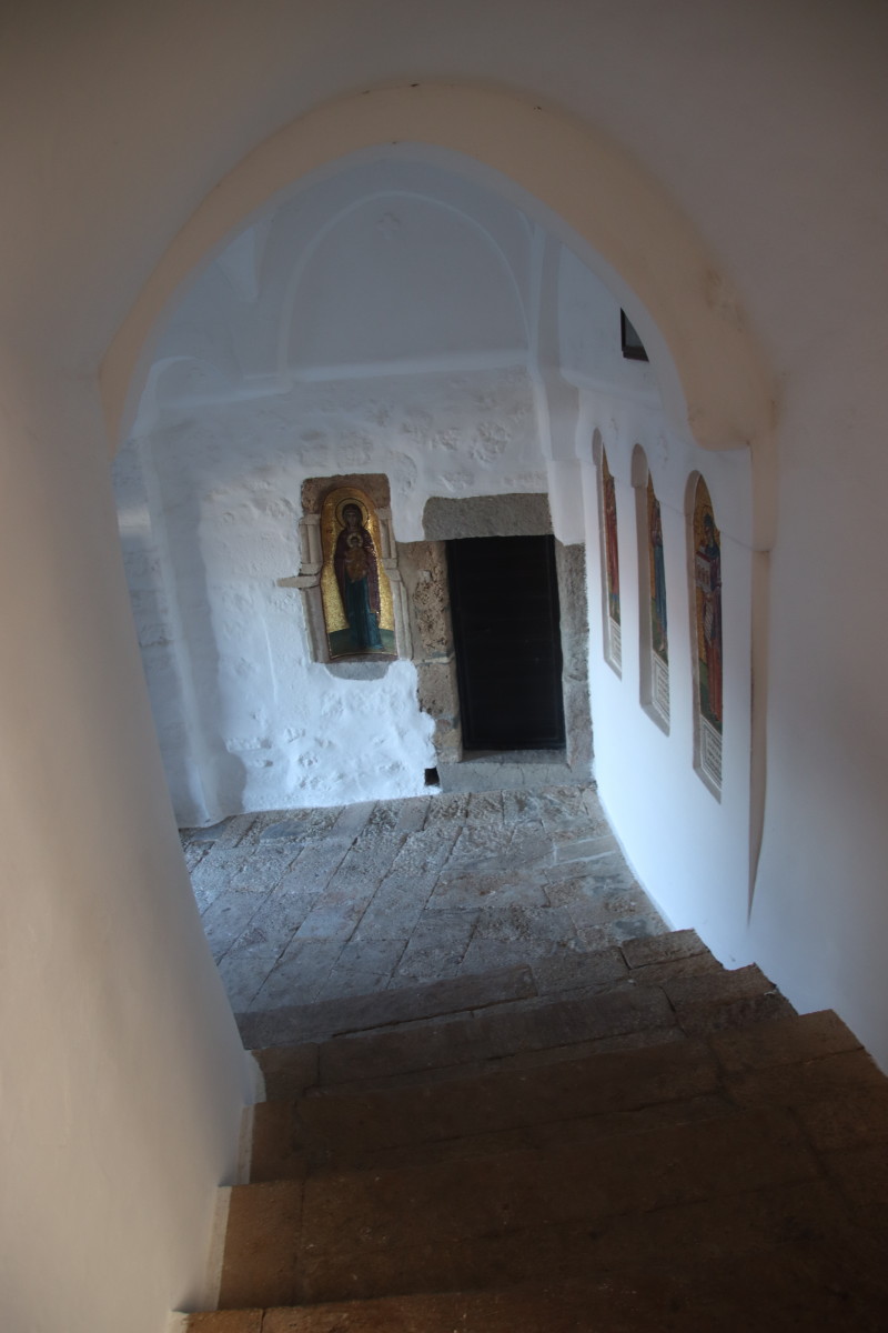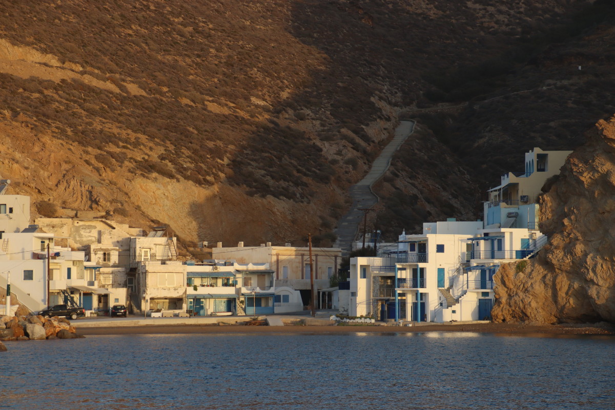 Première sortie le port de Laki et la chapelle de la Vierge Kavouradaina tout au sud de l’île. Il y a un camp d’hébergement de réfugiés à côté de Laki et on en voit beaucoup sur les bords de la route qui vont en ville faire leurs courses. La petite chapelle, nichée dans un creux de rocher sur la côte Est de la baie est vraiment adorable. La vue sur les sommets de Rethymno et les îlots parsèment le passage entre les deux îles est de toute beauté. Dans la lumière rasante de cette fin de journée la vue ferait plus penser au Lofoten qu’au Dodécanèse. Retour par Agia Marina et sa forteresse (malheureusement fermée nous y reviendrons dimanche) en rentrant nous empruntons ce qui semblait sur google maps un bon raccourci mais qui était en fait un sens interdit et sans doute la rue la plus étroite de l’île heureusement les habitants nous cèdent le passage et nous aident à nous en sortir. Les grecs sont vraiment des gens adorables dans une telle situation en France on se serait sans doute fait traiter de noms d’oiseaux.