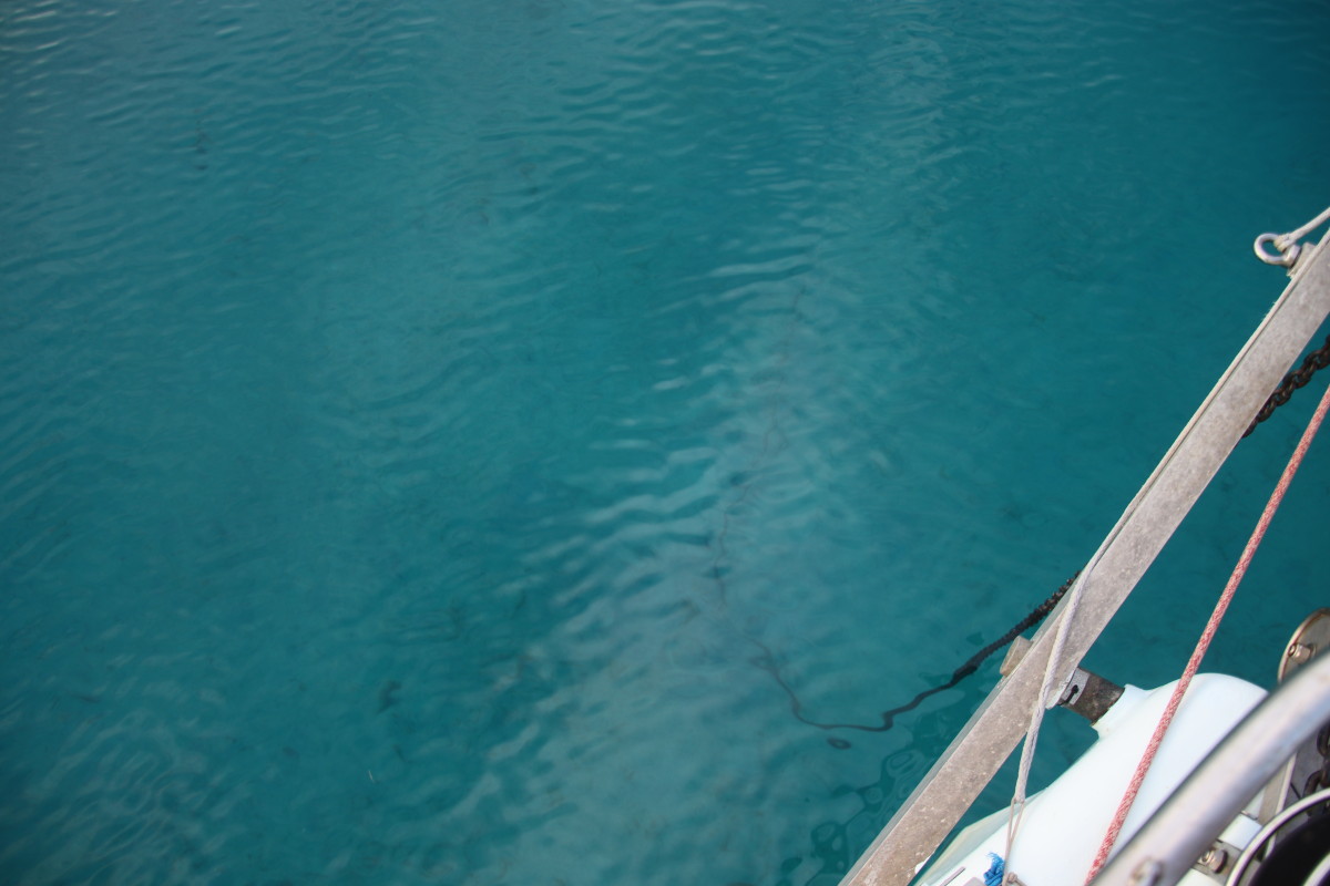 Mercredi 15/11/2023, nous passons la journée au corps mort à continuer le nettoyage et la préparation de l’hivernage avec juste une petite pose baignade (peut-être la dernière de la saison) en fin de matinée. La température ambiante a bien baissé (21°C) mais la mer est toujours à 26°C et l’eau est toujours aussi claire.