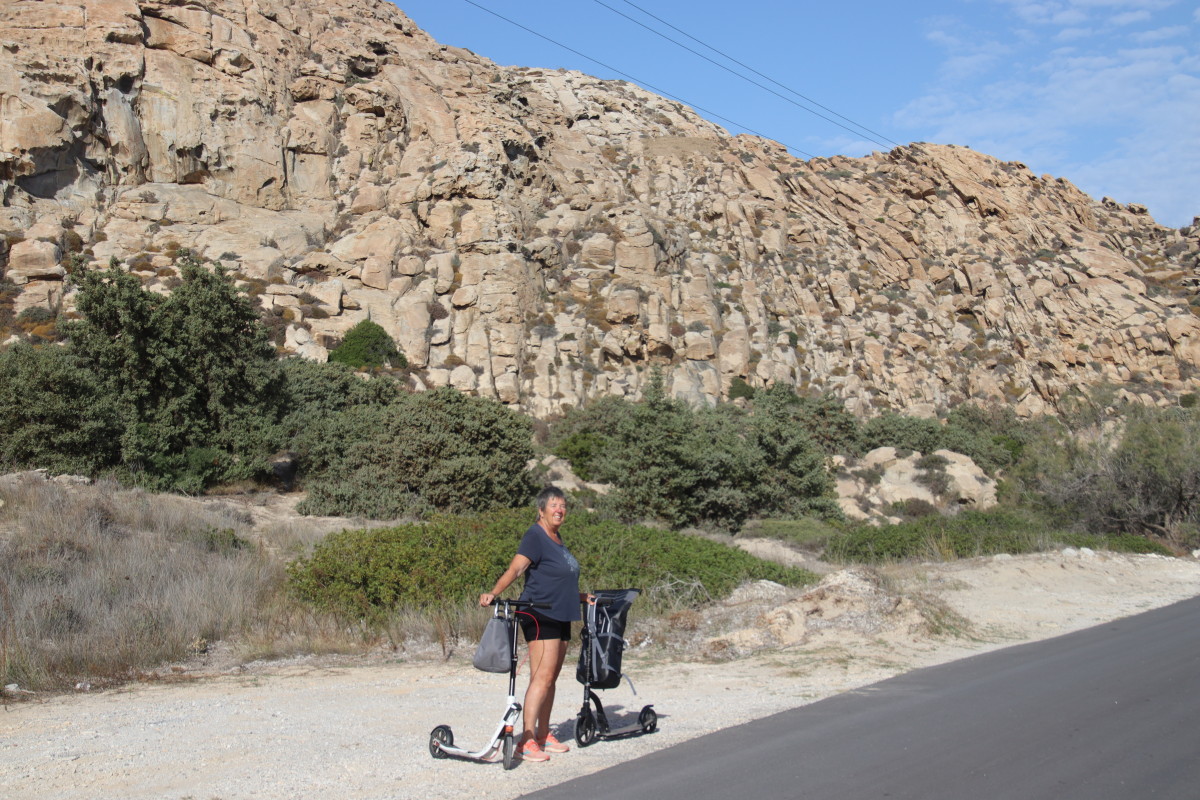 Pour explorer l’île nous louons une voiture. 25 Euros par jours kilométrage illimité (vu la taille de l’île ils ne prennent pas trop de risques!) le véhicule est livré en 10’ au chantier et il suffira de la déposer sur le parking du port en laissant les clefs sur le contact quand nous prendrons le ferry.