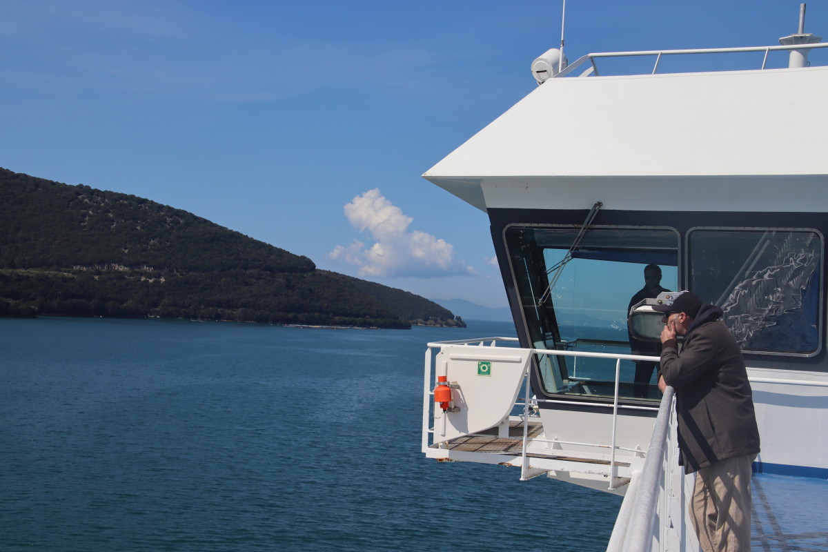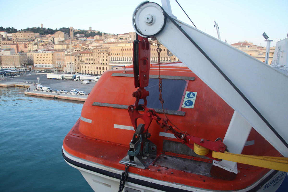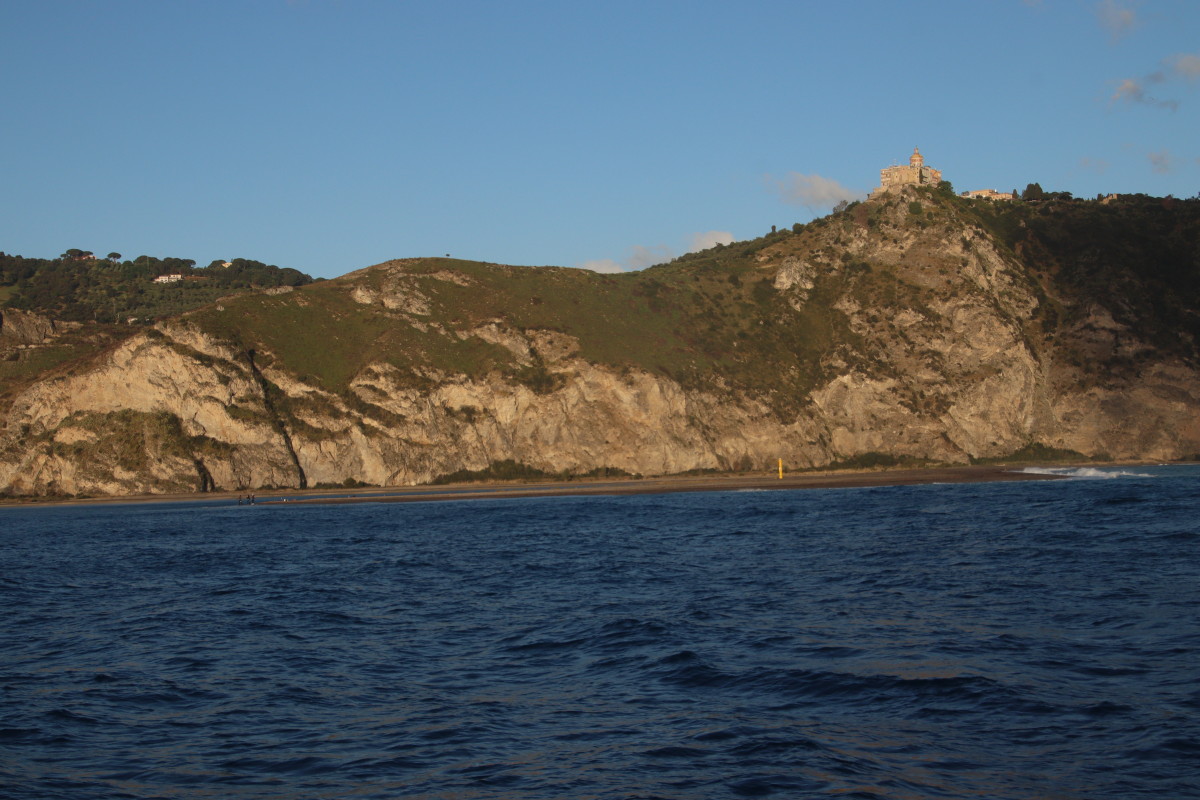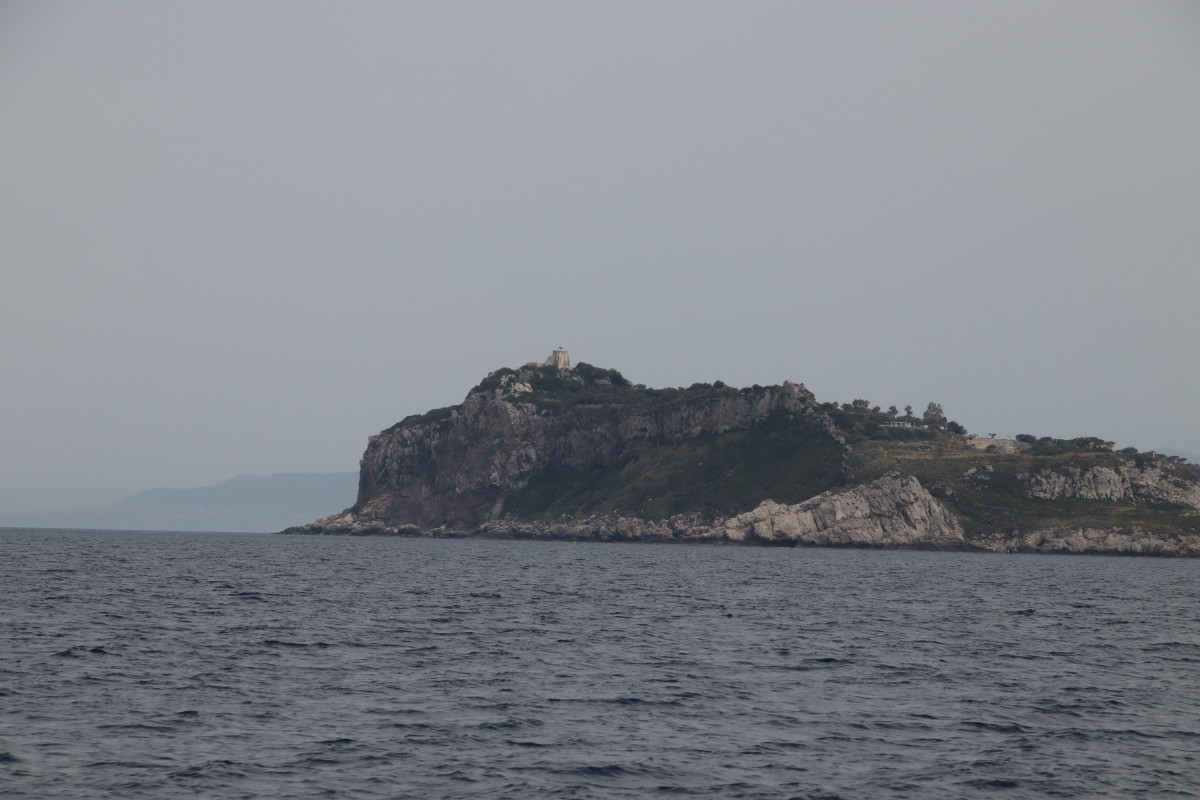 Le lendemain nous sommes contrôlés par la vedette de la Guardia di Finanzia (Douane) ils ne nous abordent pas mais nous tendent une épuisette dans la quelle nous plaçons nos documents qu’ils vont contrôler un peu plus loin avant de revenir nous les rendre toujours avec l’épuisette. Ils sont très polis et l’un deux parle parfaitement français.