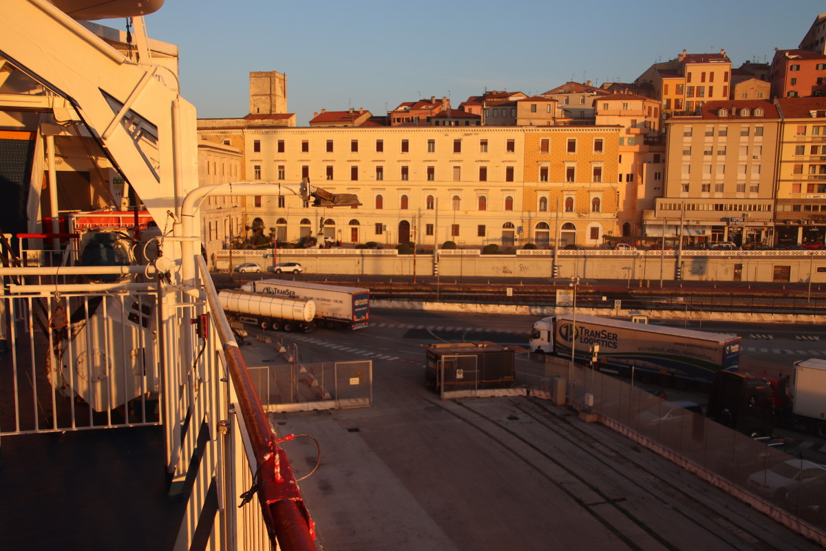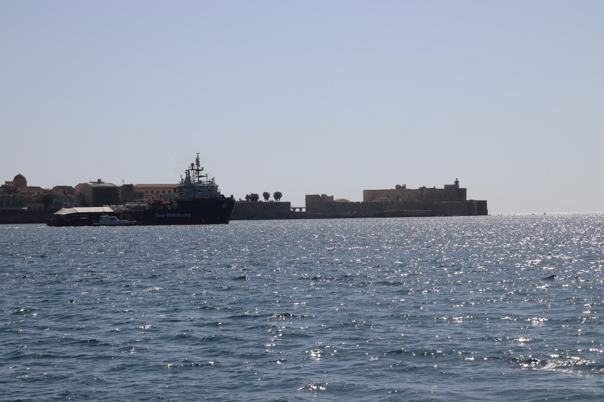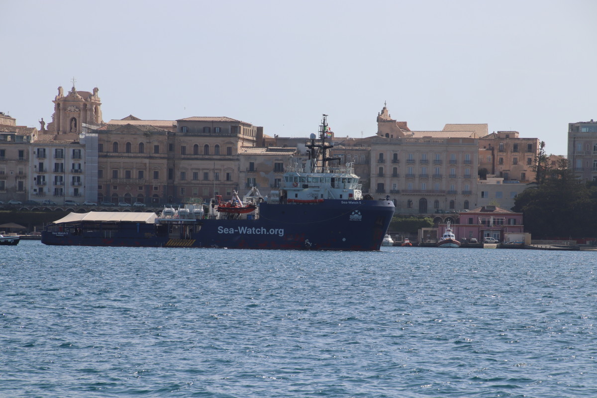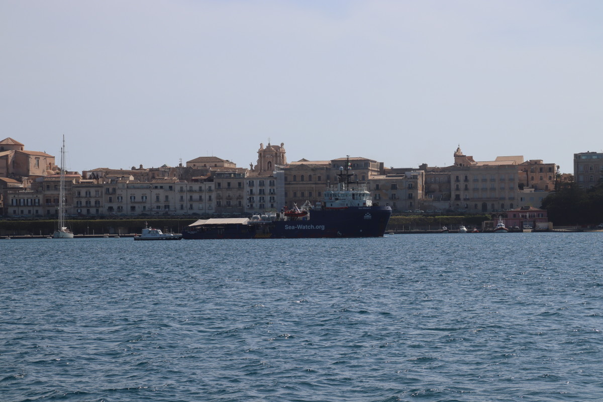 A quai il y a un navire de l’ONG Sea Watch spécialisé dans le secours en mer au migrants. Nous le voyons sortir du port mais visiblement il met cap au nord, à l’opposé donc de sa zone d’activité supposée au large de la Libye. Fin de mission ou restriction imposée par les autorités ?…