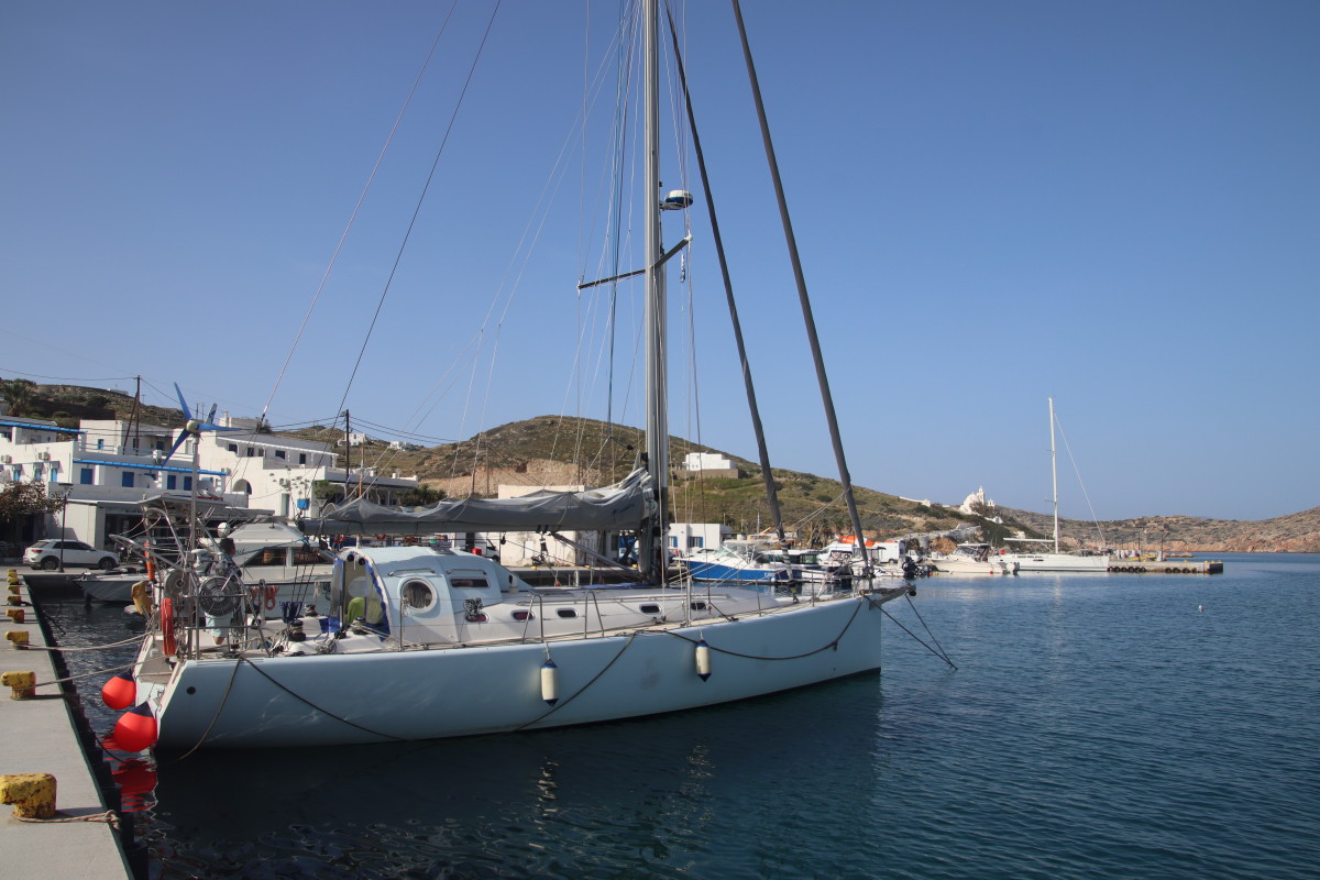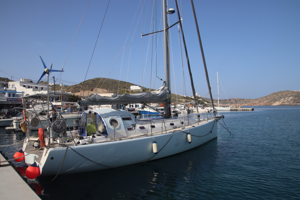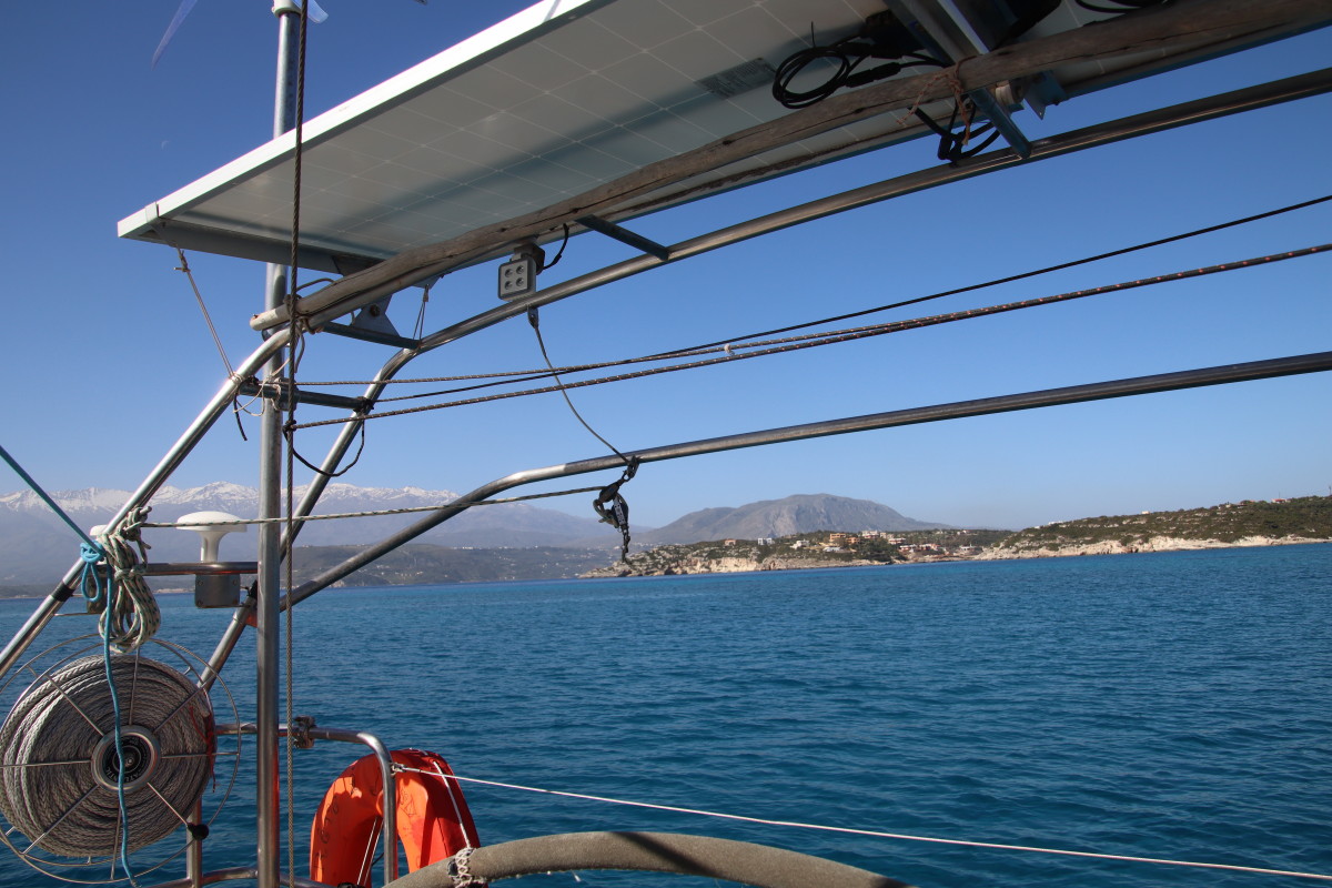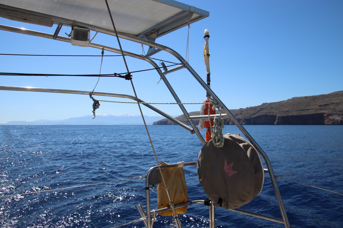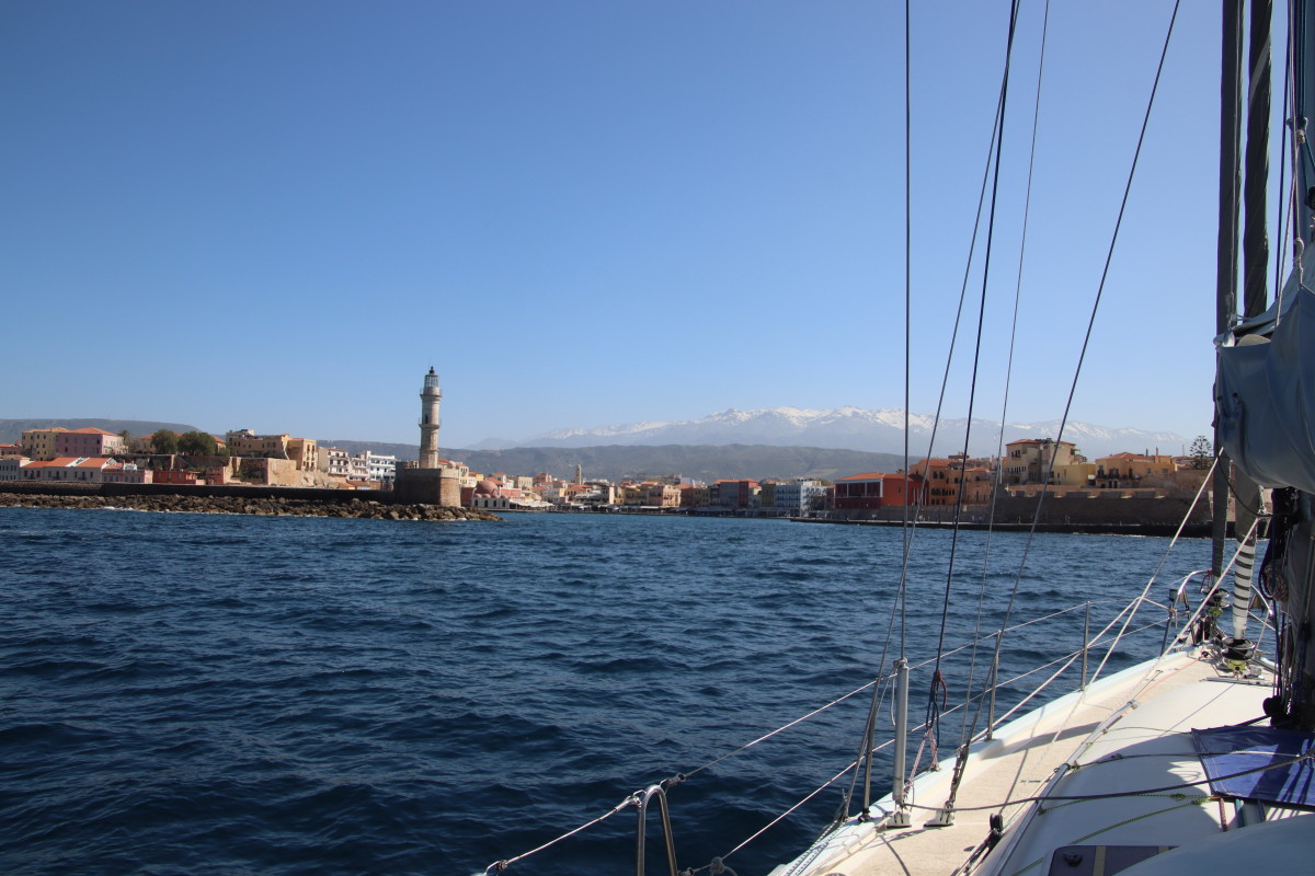 Le Mercredi 10 avril 2024 à 02:00 nous mouillons dans la rade de Syracuse après 3 jours et 18 heures de traversée. Nous avons suivi assez précisément les routages que nous avions fait avant de quitter la Crète (nous n’avons plus d’abonnement Iridium donc plus d’internet quand nous sommes en dehors de portée des antennes 4G soit environ 10 à 20 milles des côtes) Les prévisions des gribs se sont révélées étonnamment proches de la réalité jusqu’à l’arrivée en dépit du fait qu’elles dataient de 4 jours (Arpège, GFS et ICON – les 3 donnaient sensiblement les mêmes conditions). Du petit temps au départ, quarante heures de vent bien soutenus mais jamais plus de 18 nœuds, 1 vingtaine d’heures de moteur pour aider le passage dans la mer avec moins de 7 nds de vent et d’excellentes conditions de mer et de vent pour les dernières 24 heures. Énormément de trafic maritime dans les deux sens, j’ai dû appeler au moins 8 cargos pour savoir de quel côté ils voulaient nous croiser suscitant toujours une réaction très aimable de l’officier de quart suivi d’un changement de route leur permettant de passer à bonne distance. Aussi beaucoup d’activités de contrôle de la part de la marine et des gardes côtes italiens avec navires et avions, sans doute la chasse aux passeurs de migrants?