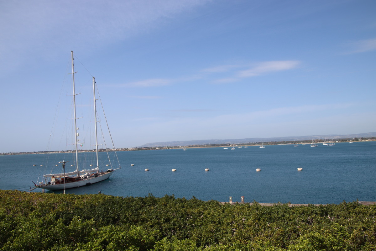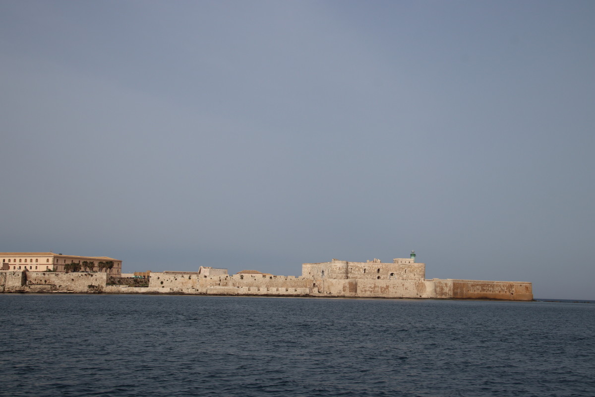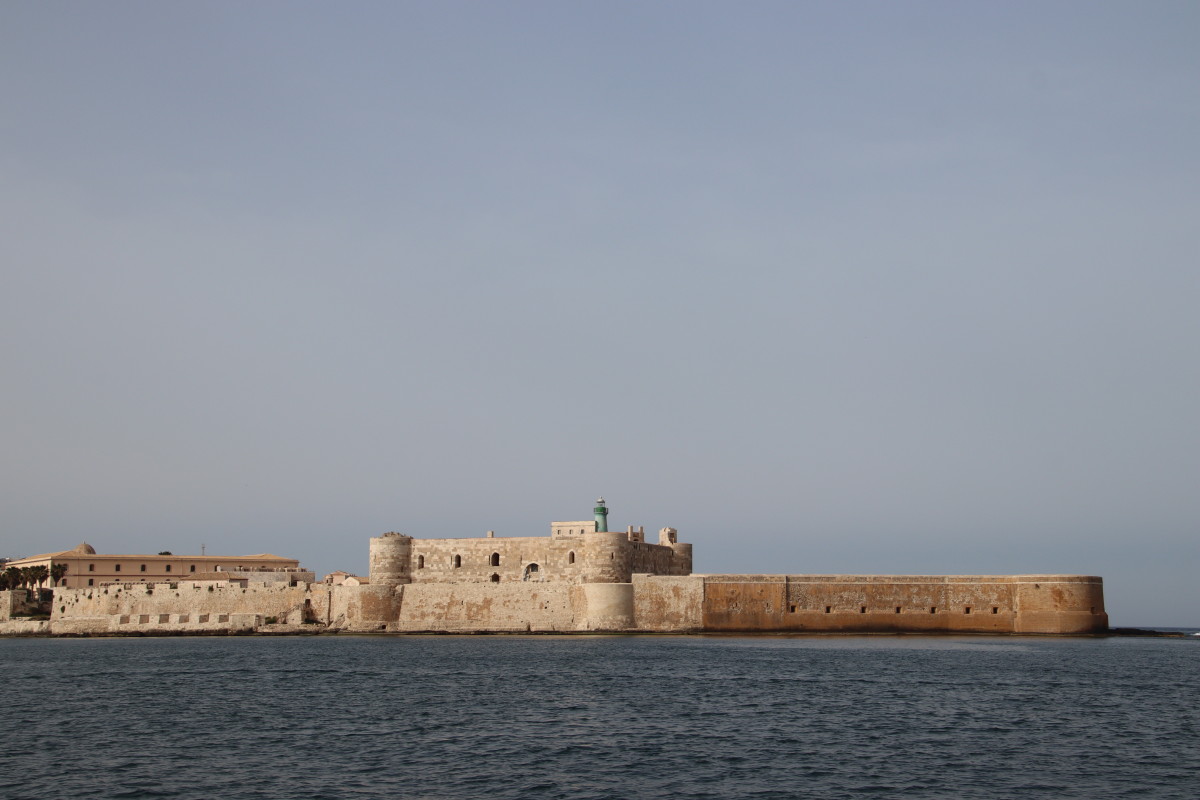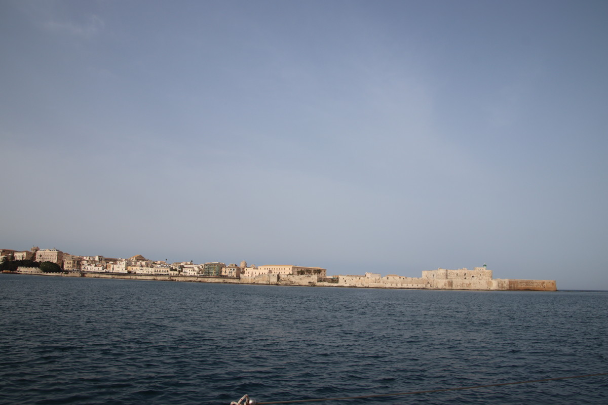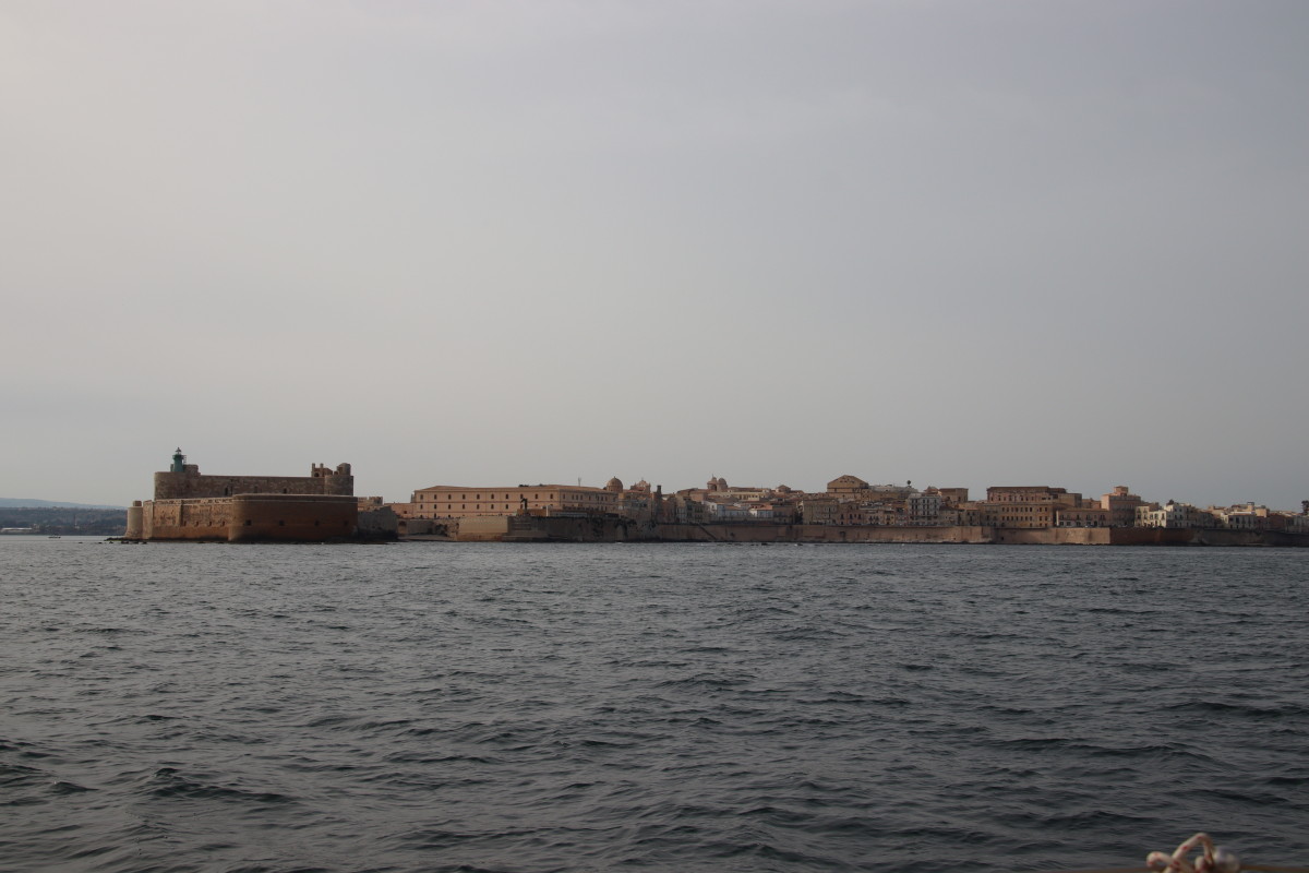 La rade de Syracuse est parfaite pour une arrivée de nuit : bon alignement d’entrée, à l’abri de tous les vents, beaucoup de place pour ancrer sur un fond plats à 8m. La citadelle et la vieille ville illuminées nous accueillent. Ne pas oublier toutefois d’appeler le « Harbour Master » pour confirmer la zone de mouillage.