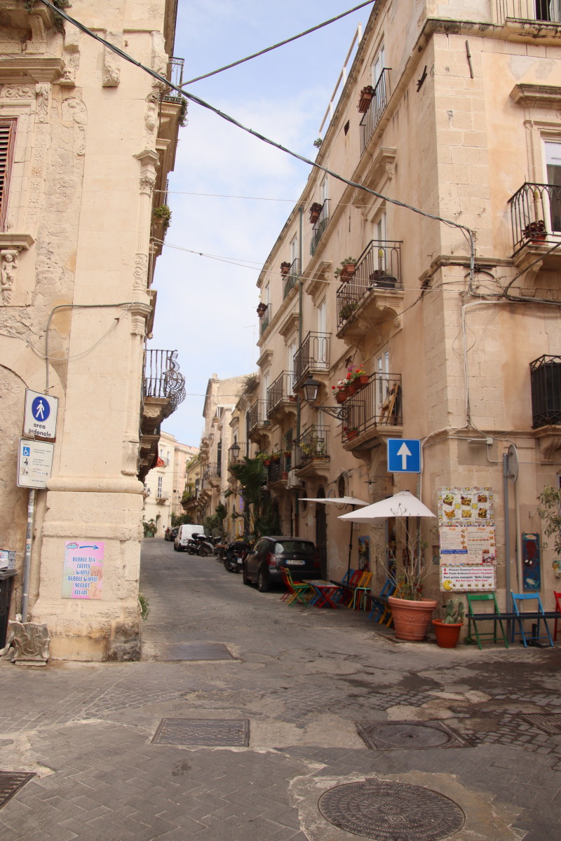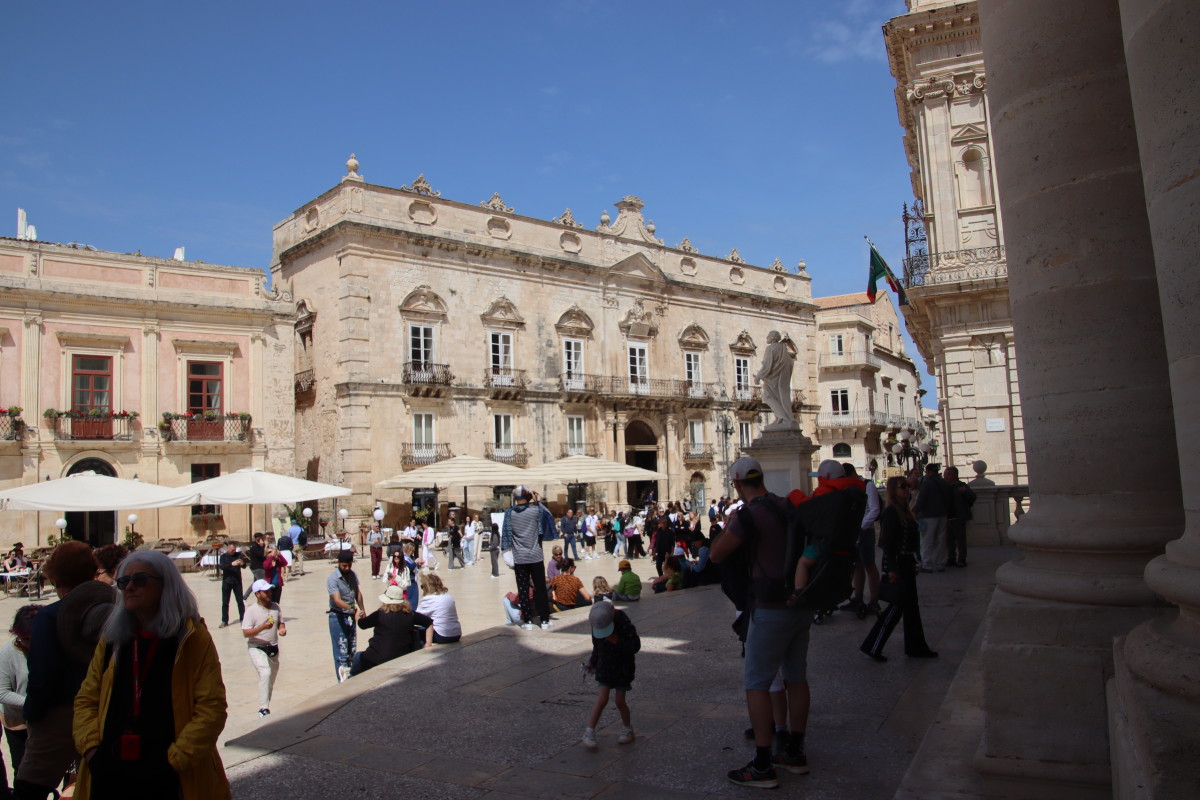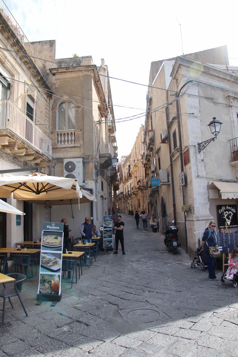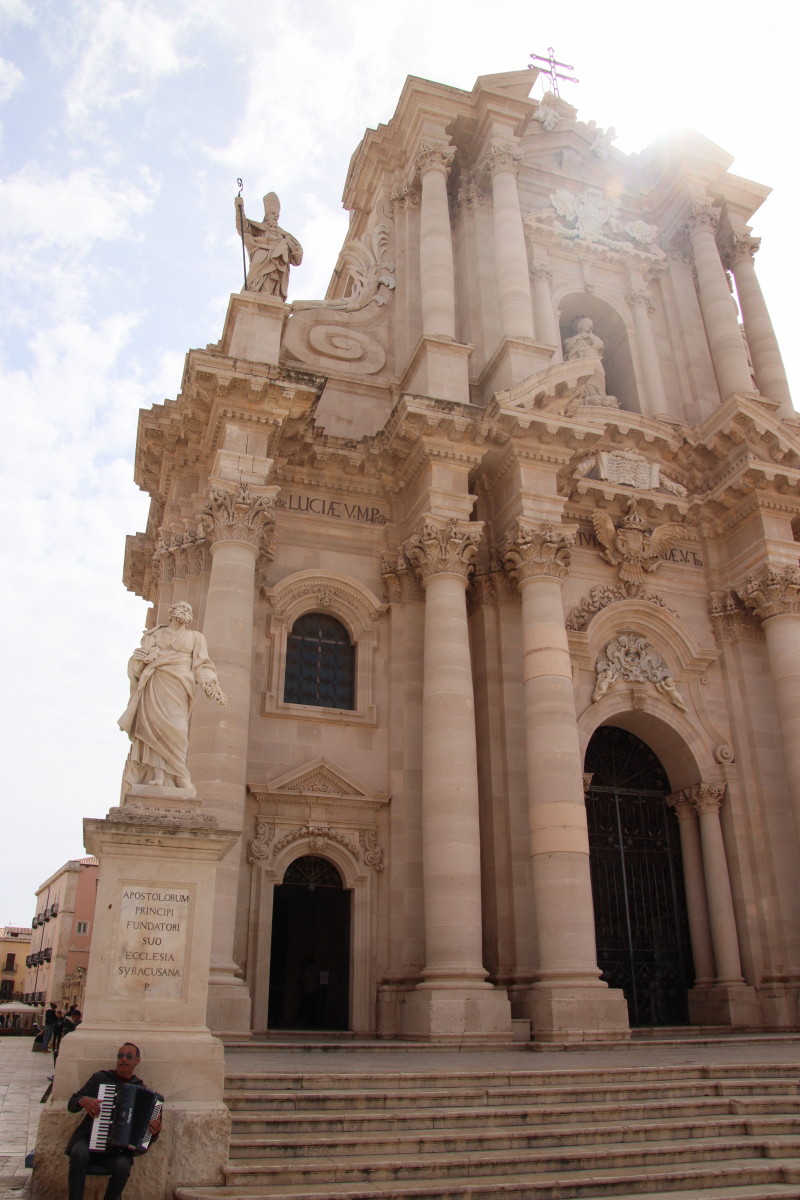 L’histoire de la Sicile en général et de Syracuse en particulier est extrêmement compliquée : fondée par les Grecs, revendiquée par Carthage, conquise par les romains puis les Byzantins, 2 siècles et demi sous domination Arabe puis Normande, Souabe, Angevine, Aragonaise, Espagnole, Bourbon de Naples et j’en passe, avant de devenir finalement Italienne en 1860. Toutes ces péripéties ont laissé beaucoup de traces dans la vieille ville bâtit sur l’île d’Orthigie et se retrouvent dans l’architecture très variée des monuments.
