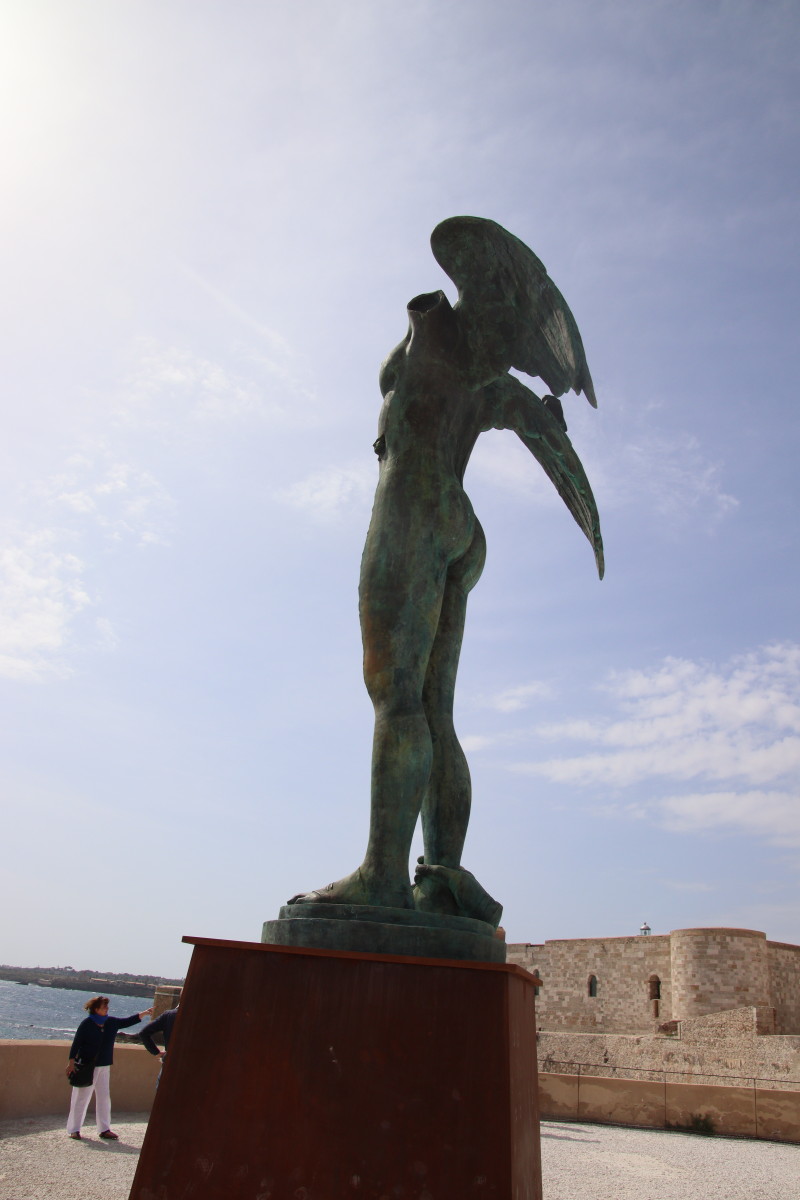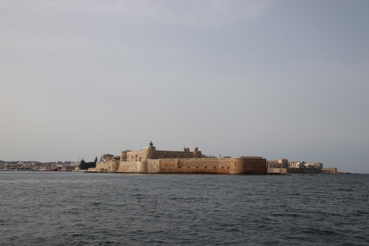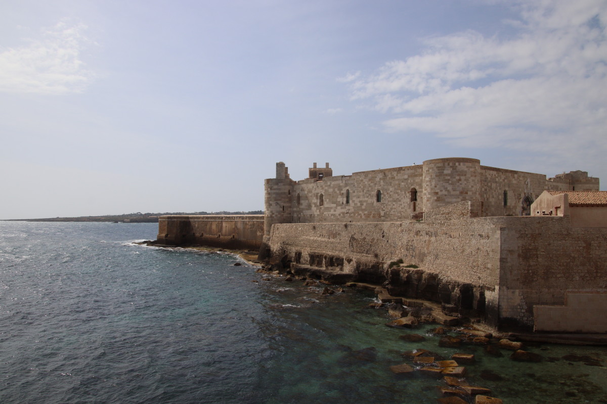 Une impressionnante forteresse commande l’entrée de la rade c’est le château Maniace (du nom du général Byzantin qui en construit la première version aux alentours de l’an mille. La citadelle actuelle aurait été édifiée 2 siècles plus tard à l’initiative de l’empereur Frederik II duc de Souabe. Malheureusement le château est fermé au public jusqu’à la semaine prochaine en raison d’un festival de cinéma.