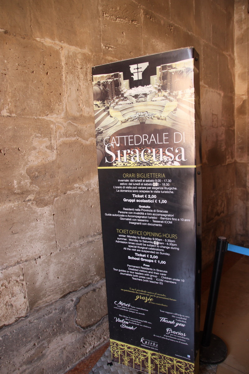 Autre monument intéressant : la cathédrale, érigée au 7éme siècle en incorporant les colonnes d’un temple grec dédié à Athéna, elle fut à l’époque la première cathédrale construite en Europe et la deuxième dans le monde après celle d’Antioche. Sa façade extérieure de style baroque ainsi qu’une grande partie de la déco intérieure date de la fin du 17ème siècle.