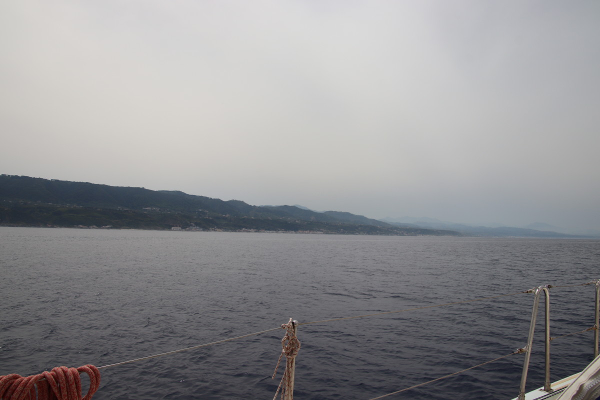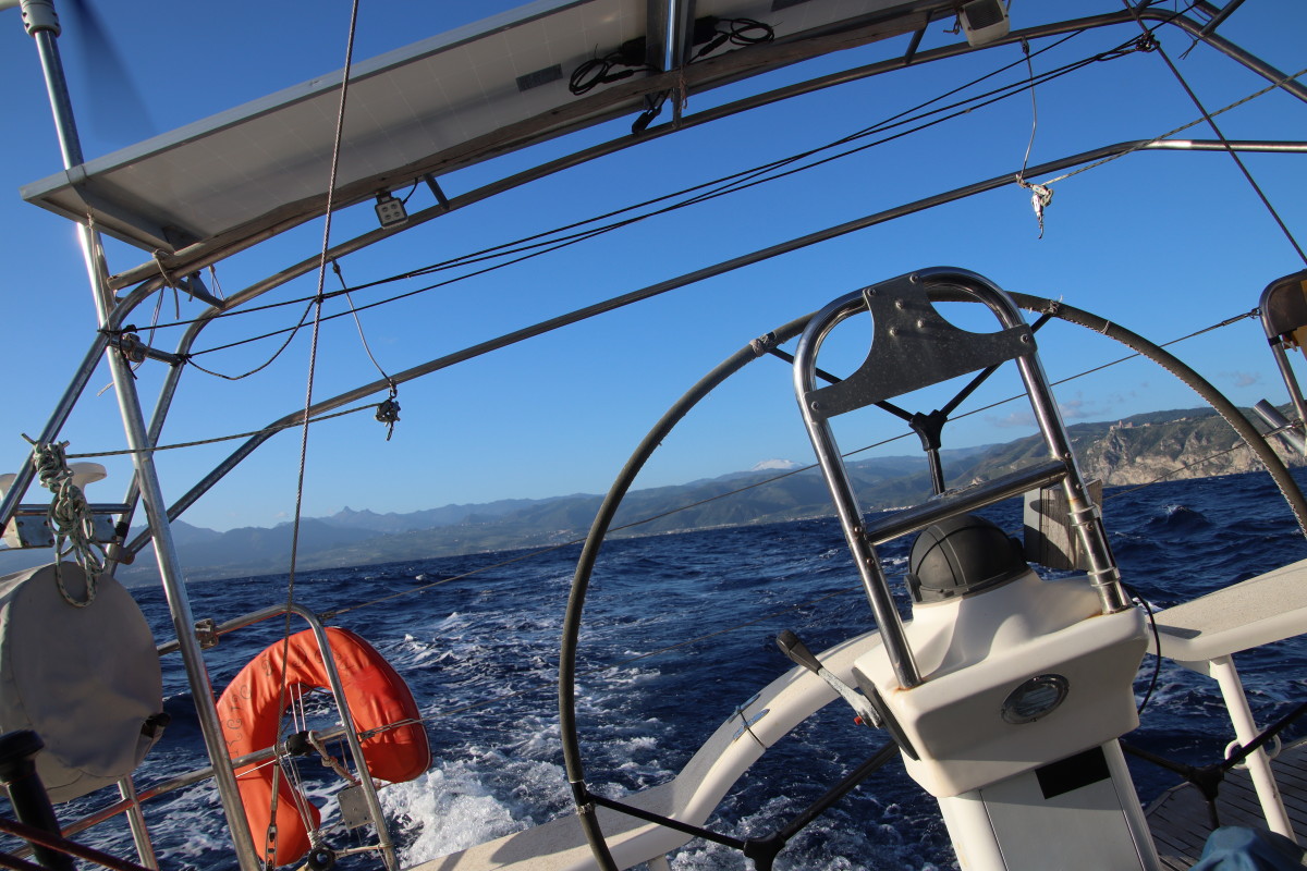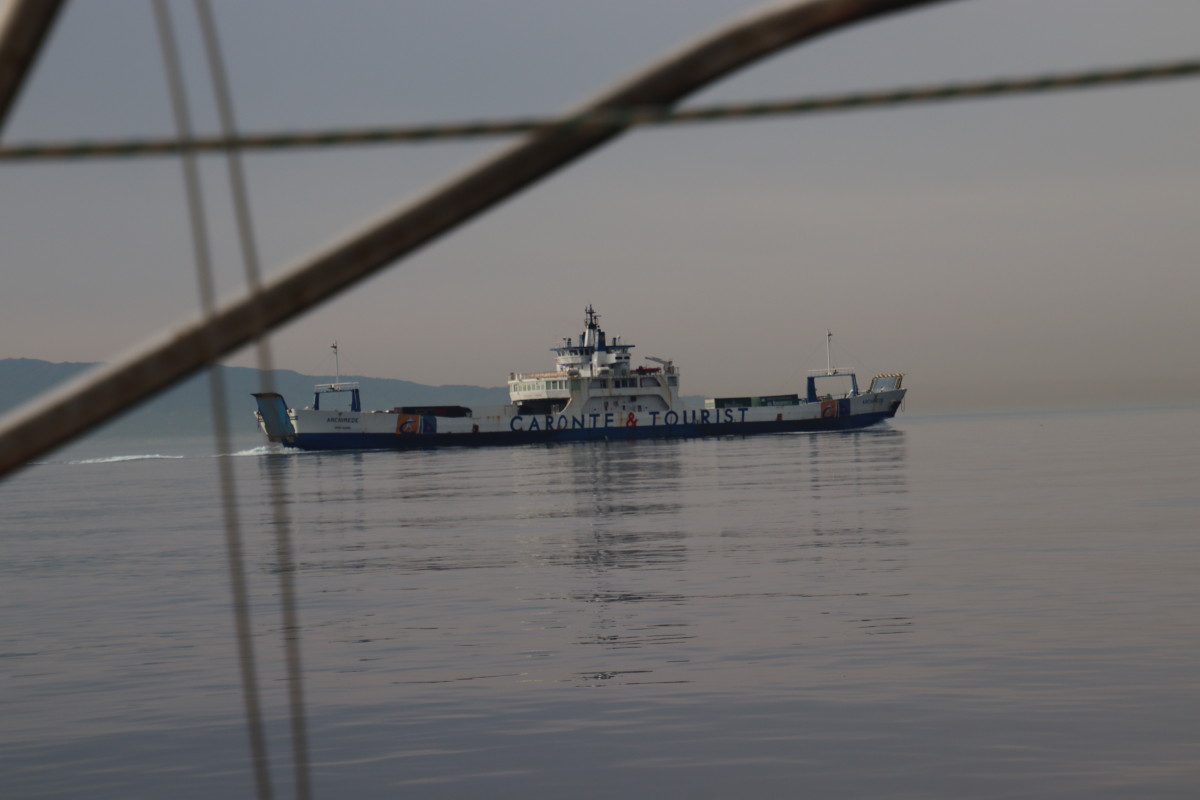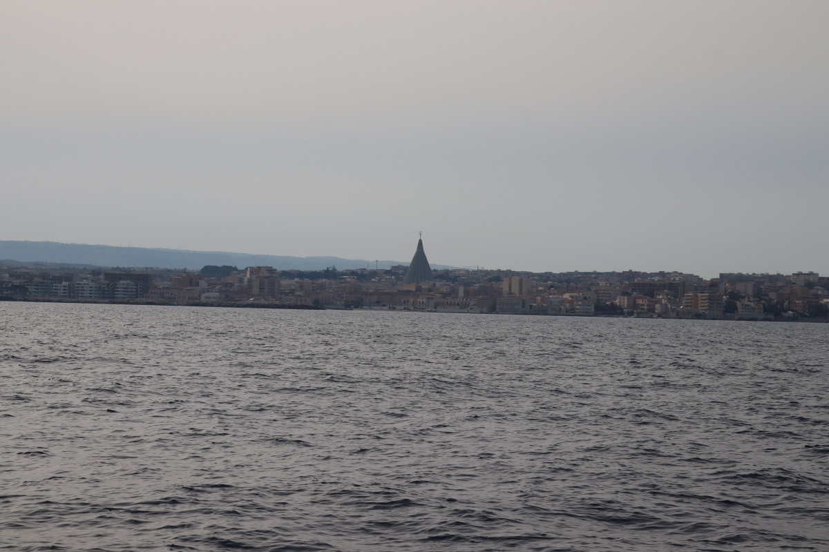 De puis que nous sommes à Syracuse, nous continuons bien sûr à suivre de près l’évolution de la météo et nous avons identifié que les prochaines 24 heures présentent les conditions idéales pour passer sereinement le détroit de Messine : très peu de vent mer plate, courant minimum (mortes eaux coefficient 40) conditions qui ne semblent pas vouloir se reproduire avant très longtemps. Mais pour atteindre à temps il faut partir tout de suite sans faire escale en route. Banco le temps d’une courte baignade et nous levons l’ancre !