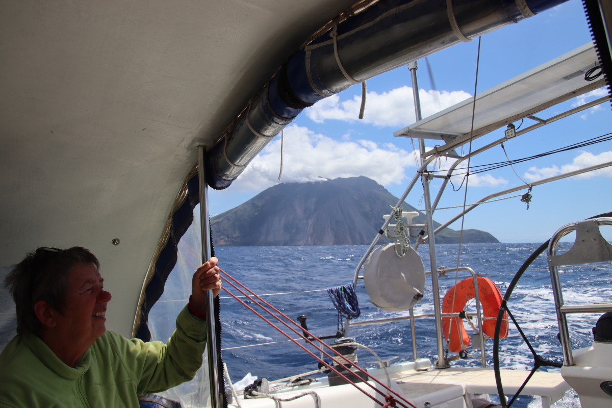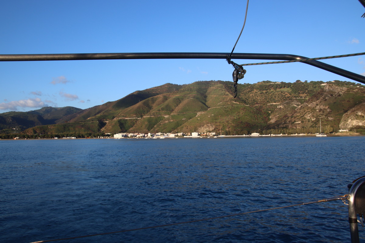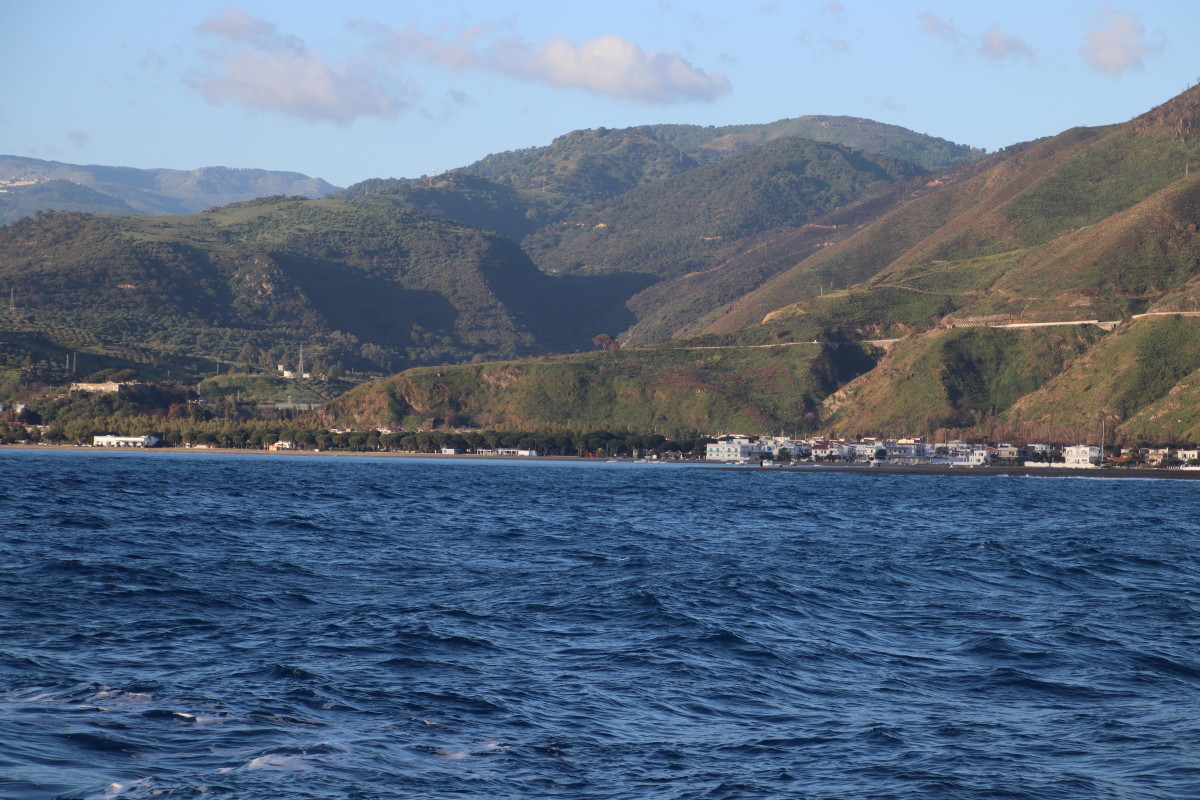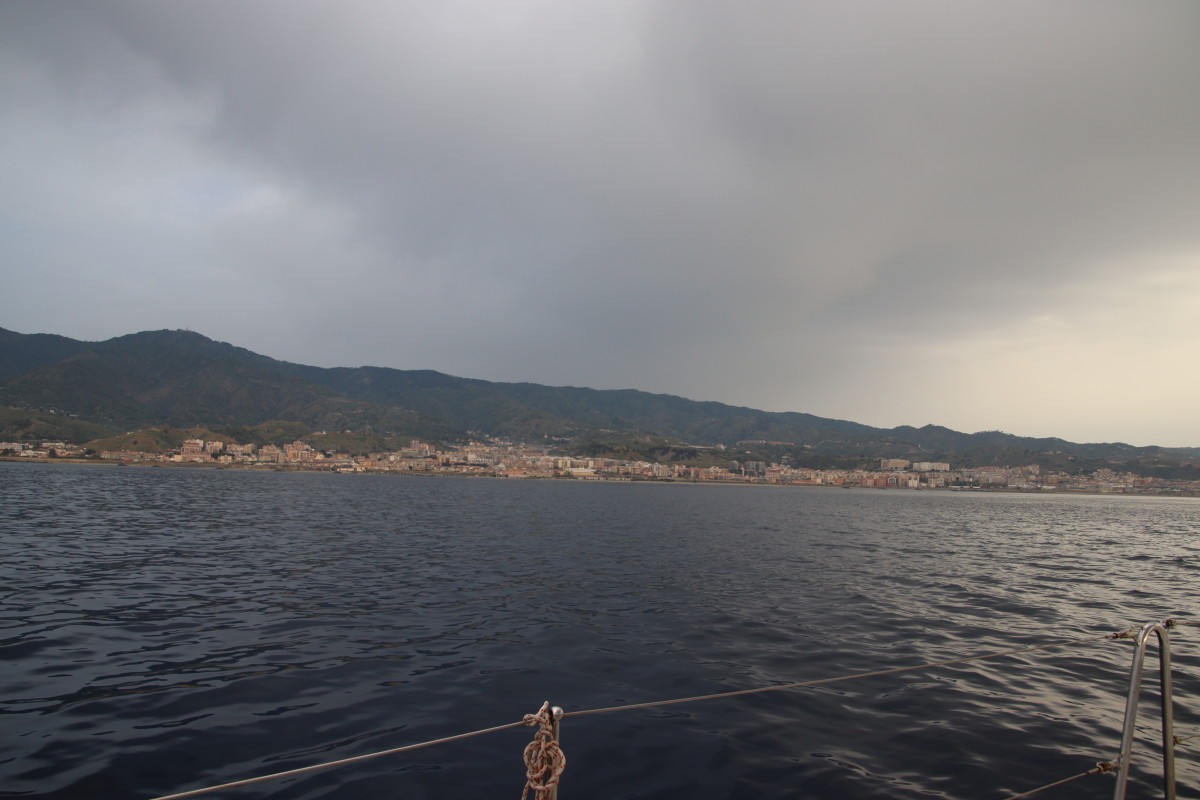 De puis que nous sommes à Syracuse, nous continuons bien sûr à suivre de près l’évolution de la météo et nous avons identifié que les prochaines 24 heures présentent les conditions idéales pour passer sereinement le détroit de Messine : très peu de vent mer plate, courant minimum (mortes eaux coefficient 40) conditions qui ne semblent pas vouloir se reproduire avant très longtemps. Mais pour atteindre à temps il faut partir tout de suite sans faire escale en route. Banco le temps d’une courte baignade et nous levons l’ancre !