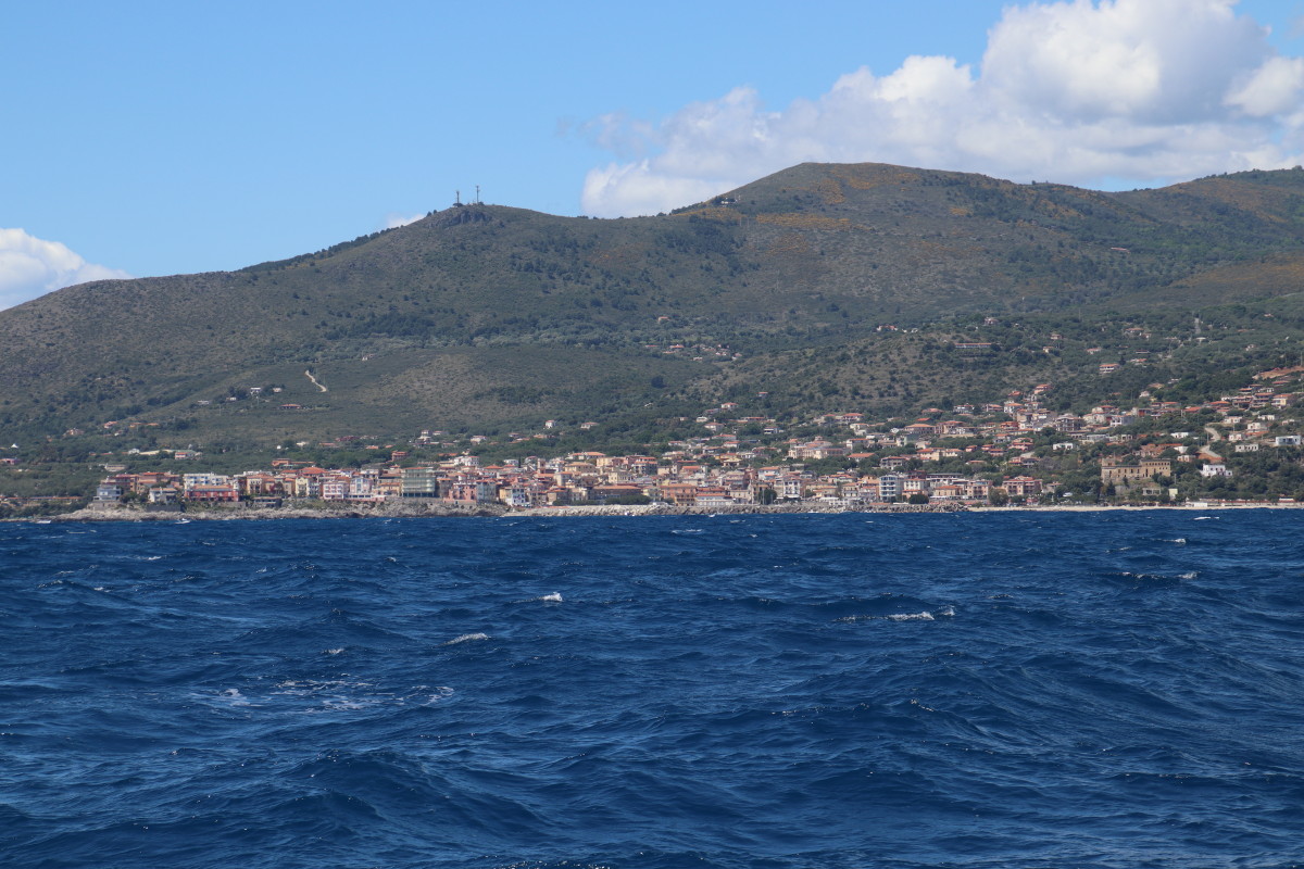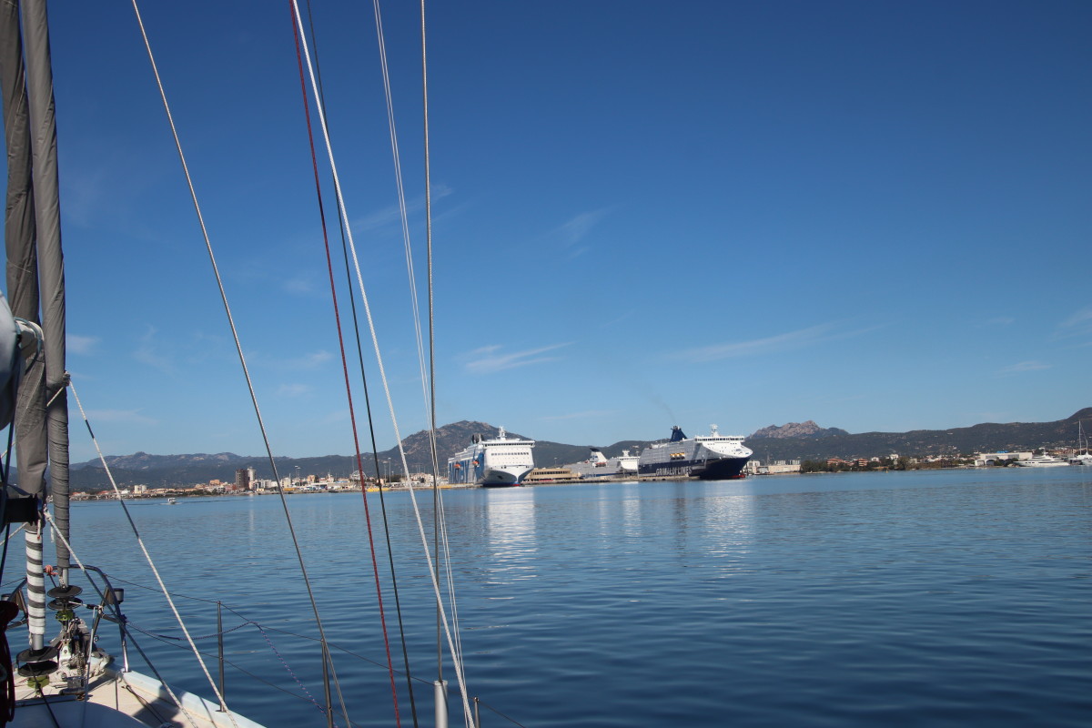 Le lendemain nous mettons le cap de bonne heure sur Olbia même. La ville a conservé deux quais (le Molo Brin et le Molo Vecchio accessible (presque) gratuitement aux voiliers de passage. Il suffit d’appeler les gardes côtes à l’arrivée pour obtenir l’autorisation et de s’acquitter d’un timbre fiscal de 16,80 Euros. L’amarrage est autorisé pour 48 heures. Apparemment de nombreux plaisanciers ne s’embarrassent pas de ces formalités et restent plus longtemps mais on préfère être en règle et on joue le jeu.