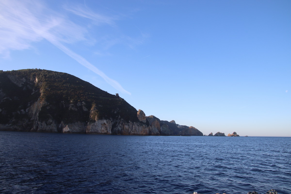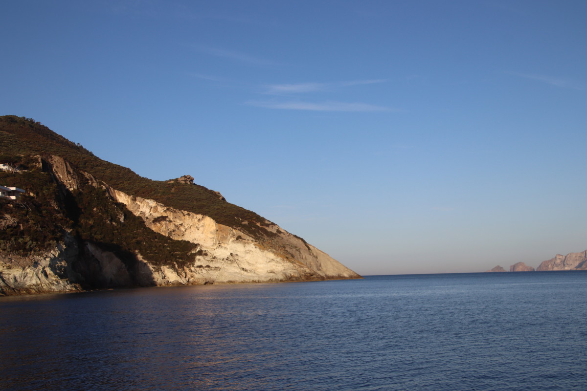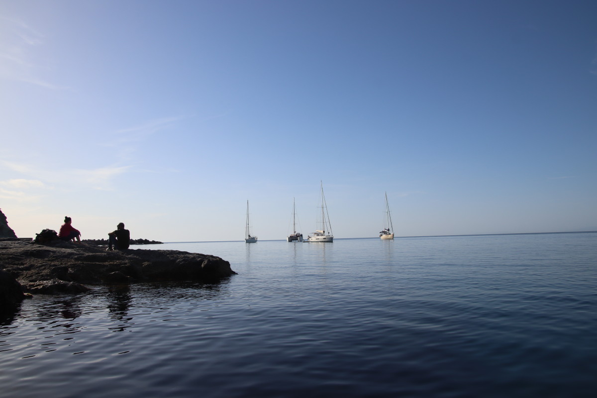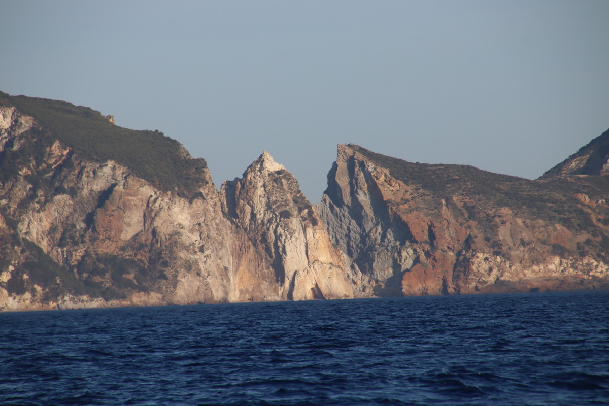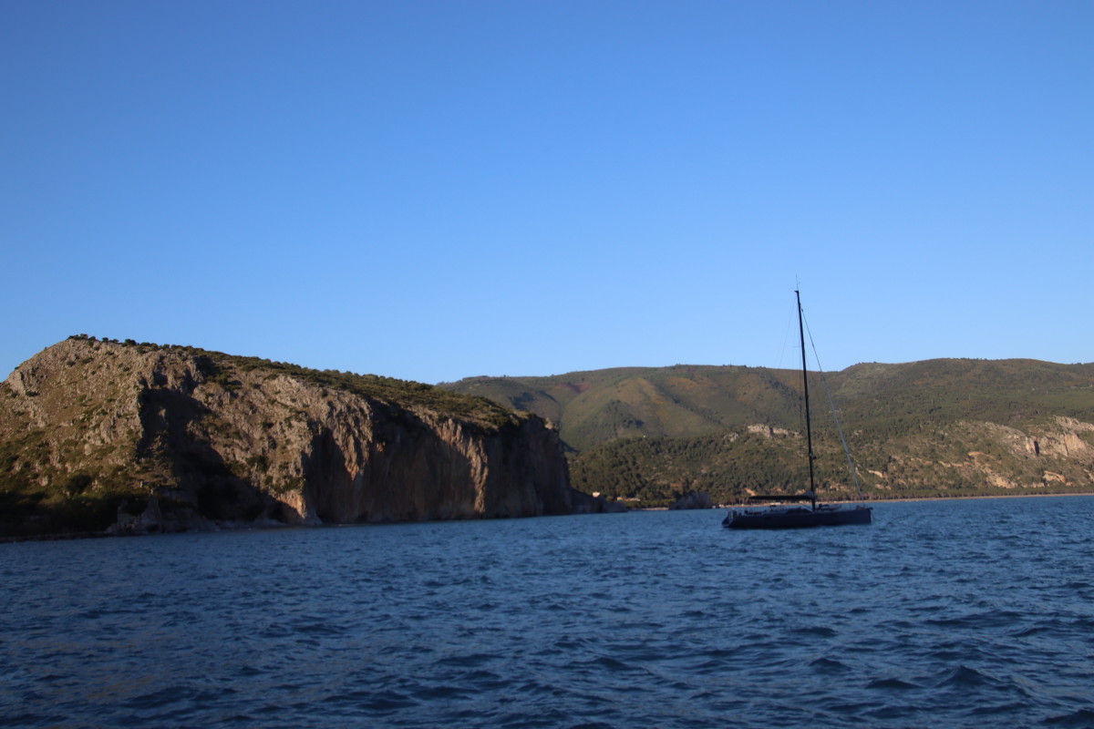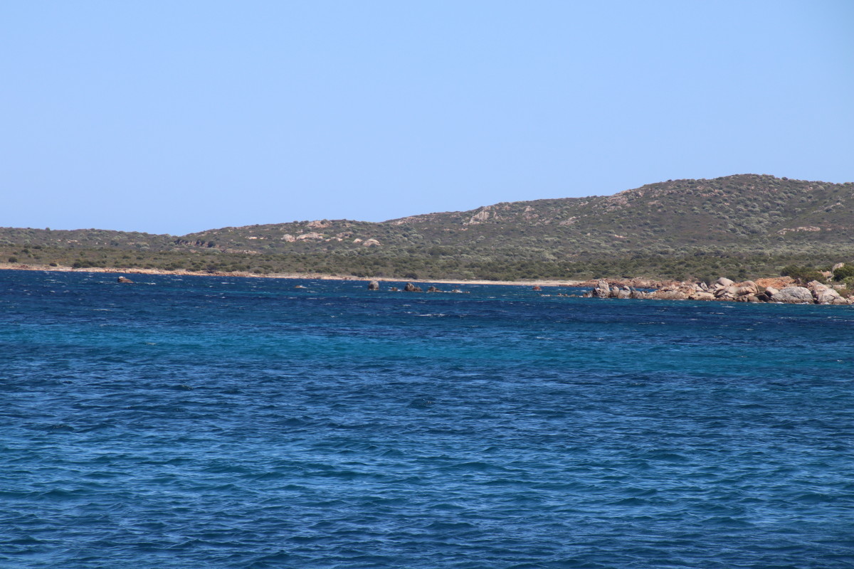 On a tout de suite flashés sur cette région : le relief de collines tourmentées en arrière plan, la côte découpées de baie aux eaux tellement limpides et plages de sables blancs, rochers arrondis par l’usure du temps et falaises vertigineuses. En plus cette côte de rêve présente un énorme avantage c’est qu’elle regorge d’excellents mouillages avec des fonds de sable de très bonne tenue et en cherchant un peu ou trouve facilement un ancrage sûr quelque soit la direction du vent surtout que la saison estivale n’étant pas encore commencée il y a de la place partout. Si on en croit les comptes rendu en plein mois d’août c’est bondé !