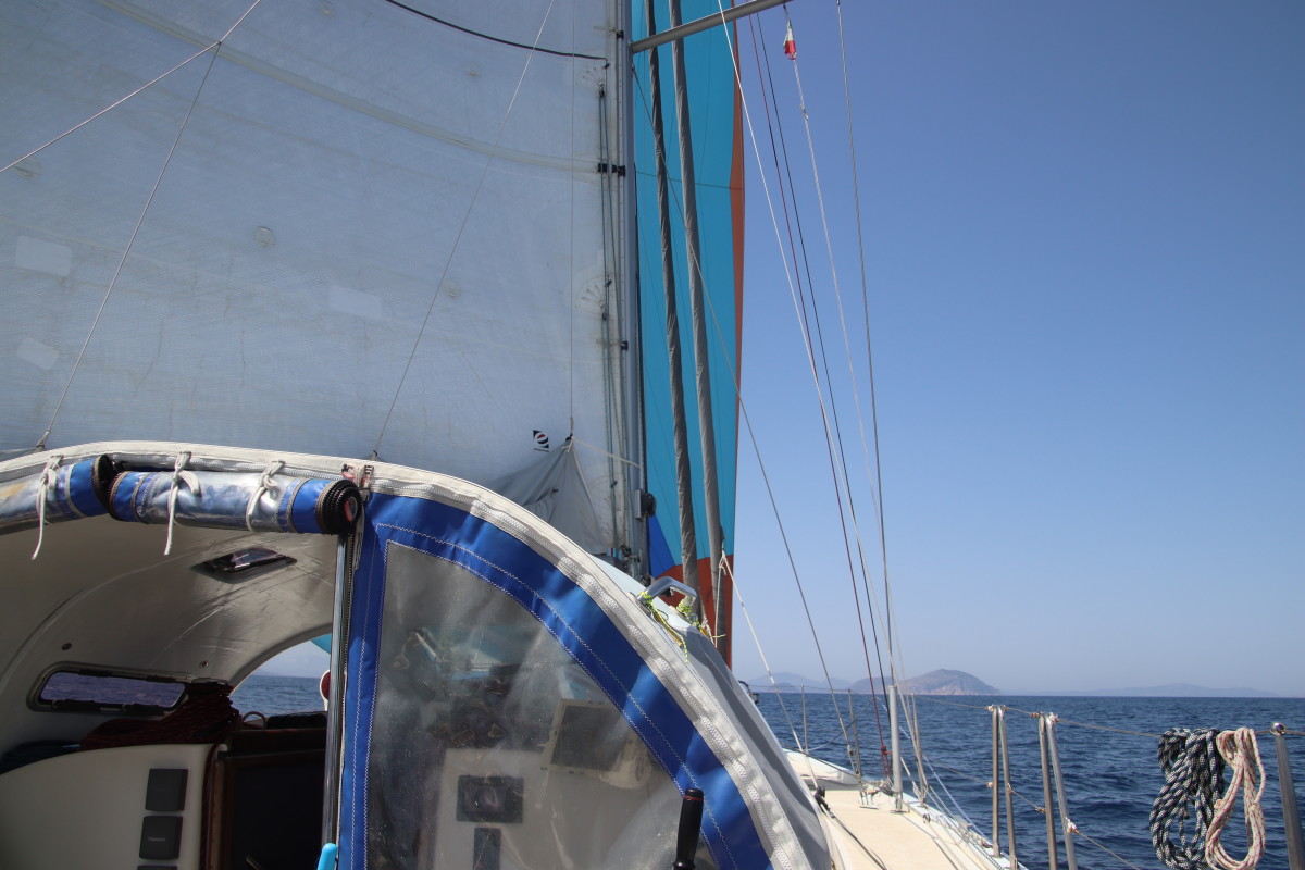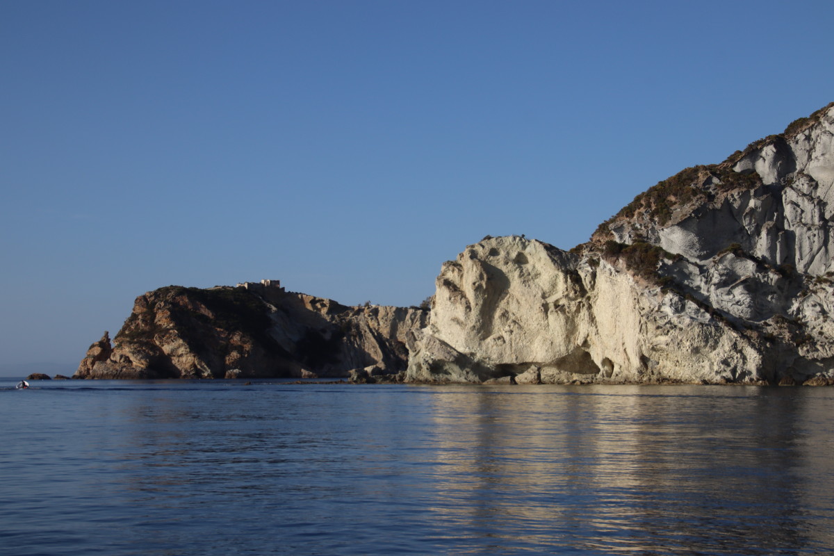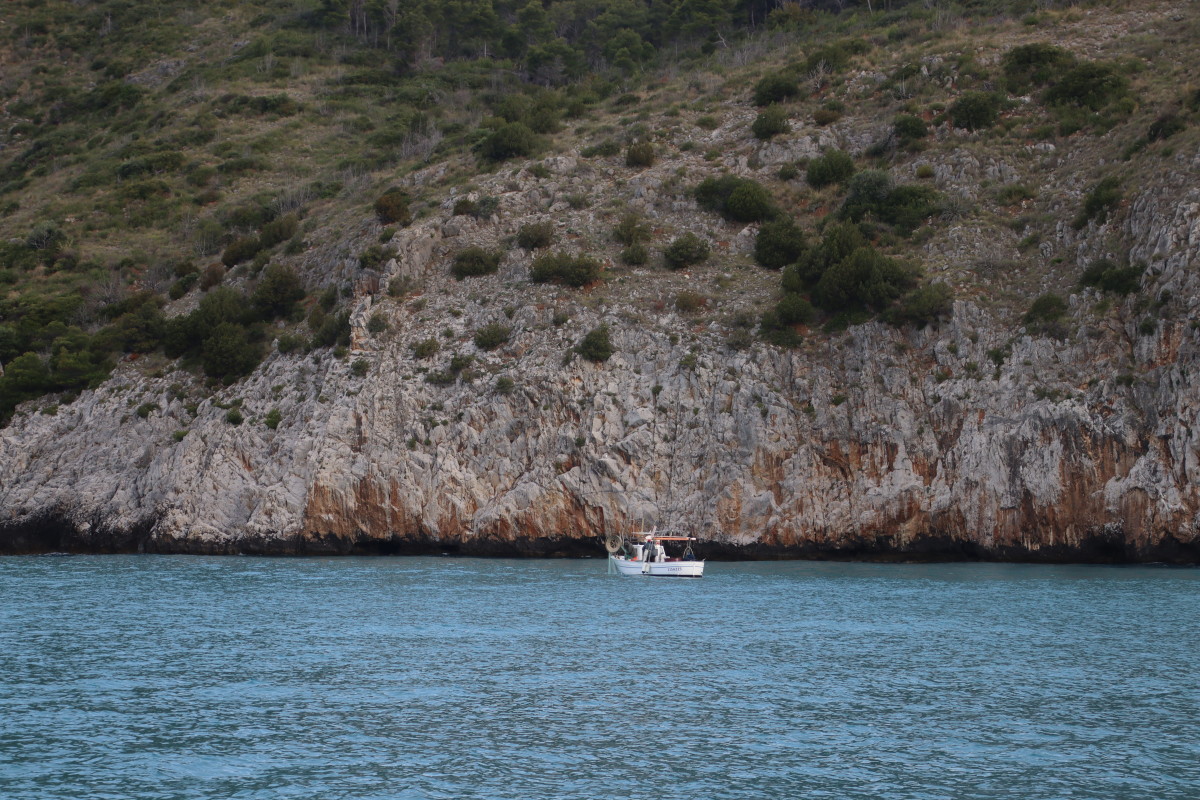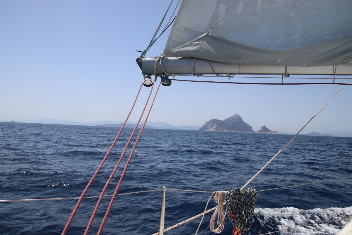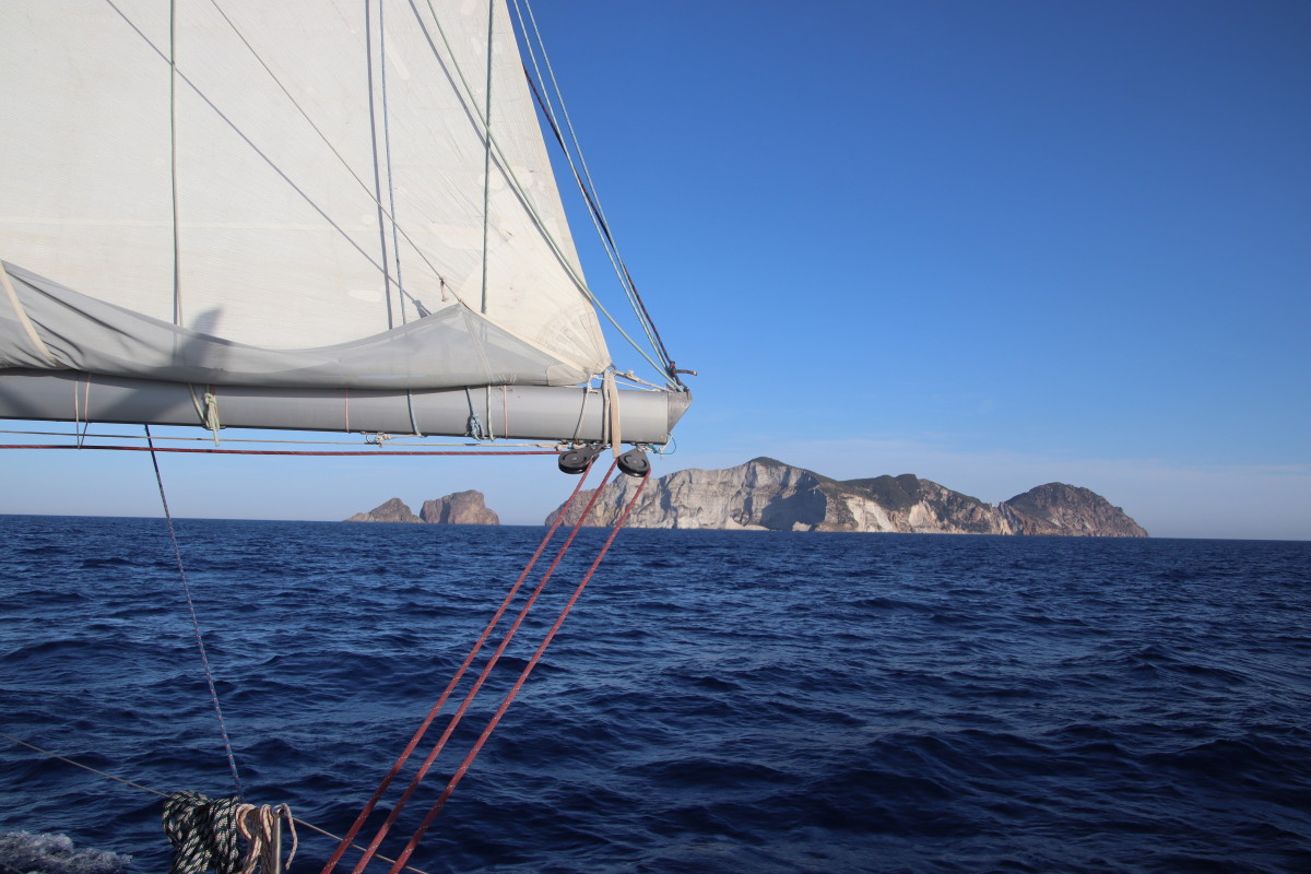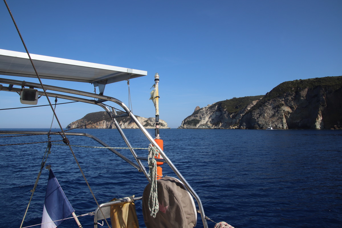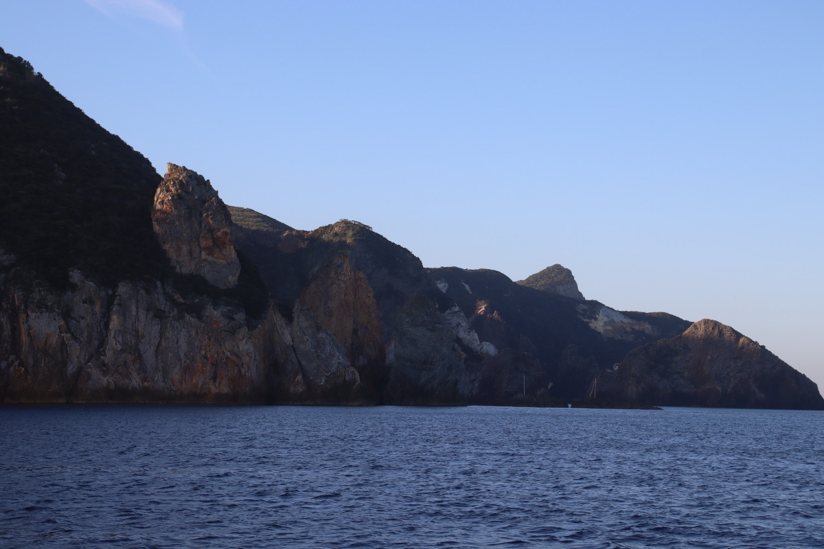 On a tout de suite flashés sur cette région : le relief de collines tourmentées en arrière plan, la côte découpées de baie aux eaux tellement limpides et plages de sables blancs, rochers arrondis par l’usure du temps et falaises vertigineuses. En plus cette côte de rêve présente un énorme avantage c’est qu’elle regorge d’excellents mouillages avec des fonds de sable de très bonne tenue et en cherchant un peu ou trouve facilement un ancrage sûr quelque soit la direction du vent surtout que la saison estivale n’étant pas encore commencée il y a de la place partout. Si on en croit les comptes rendu en plein mois d’août c’est bondé !