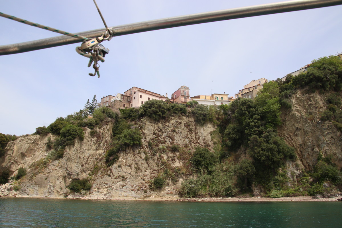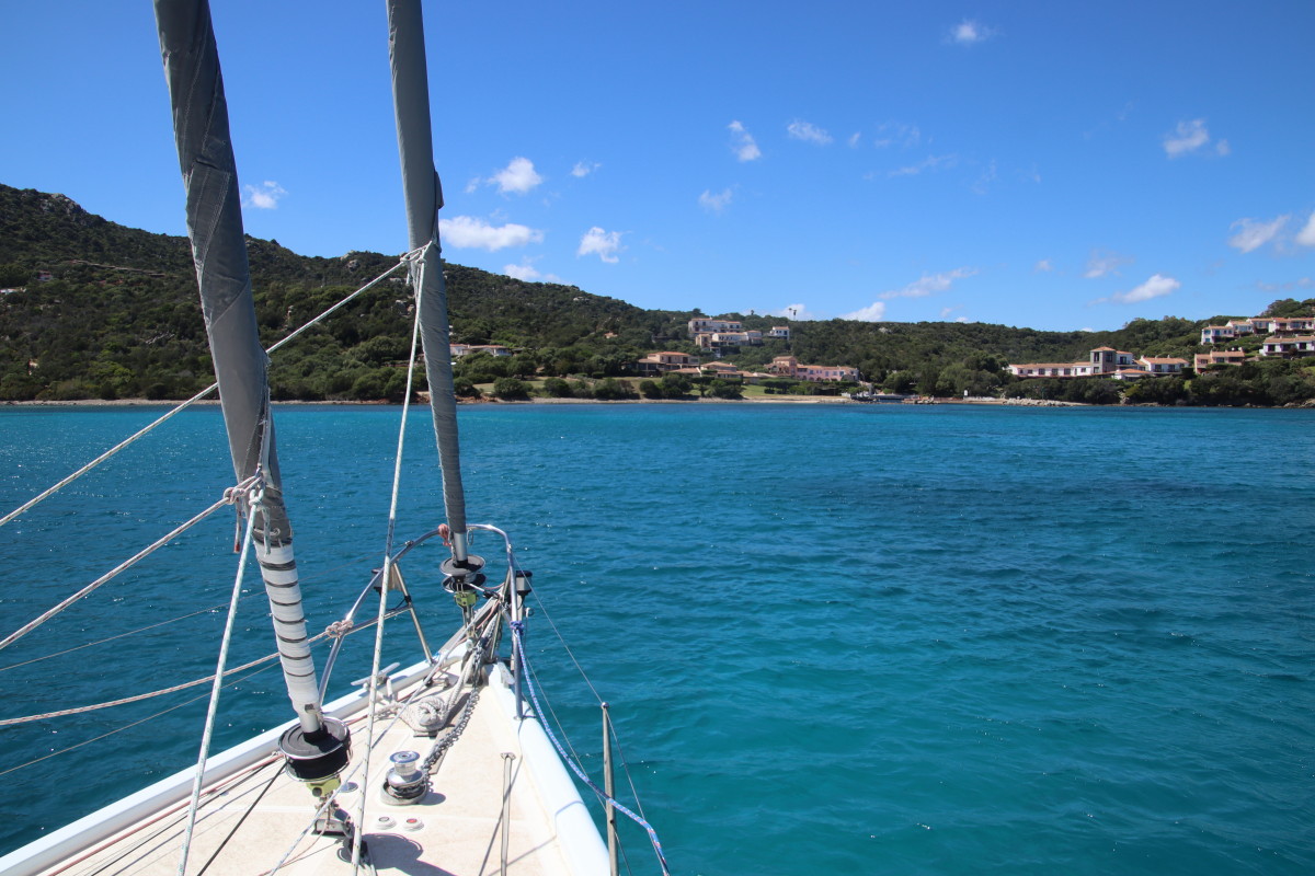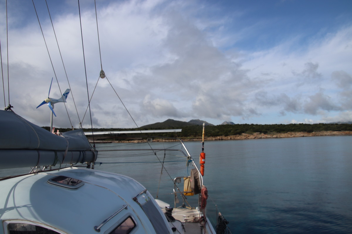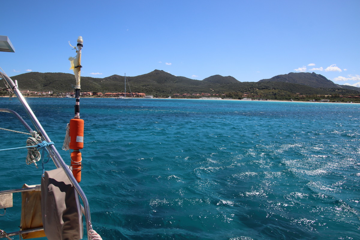 Nous nous déplaçons donc juste à côté, tout au fond du Golfe de Marinella. La veille avant de jeter l’ancre à Cala Sabina nous avions été reconnaître l’endroit. Nous savons donc exactement où mouiller pour être bien abrité sur un font de sable bien plat, exempt de roches et d’anciens blocs de corps morts, juste devant l’entrée d’un adorable petit port privé entouré de jolies villas.