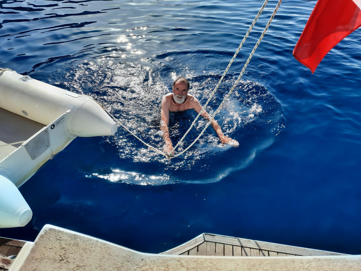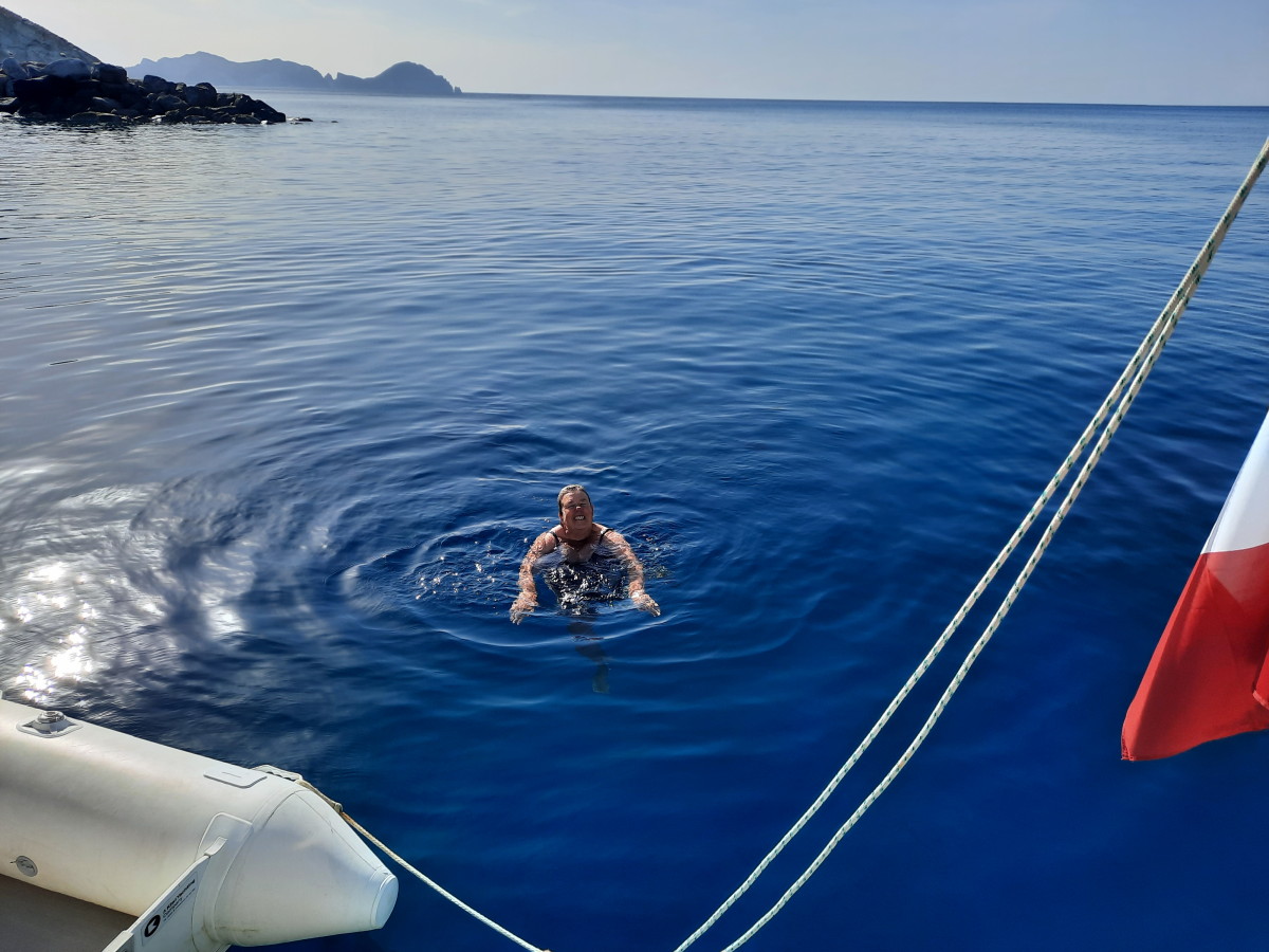 Nous passons la nuit dans la baie de Porto Istana, juste en face de l’île majestueuse de Tavolara. Très jolie plage mais le fond est parsemé de grandes roches plus ou moins paltes, il faut bien choisir ou poser son ancre.