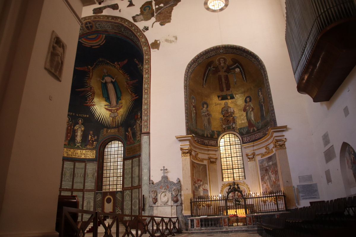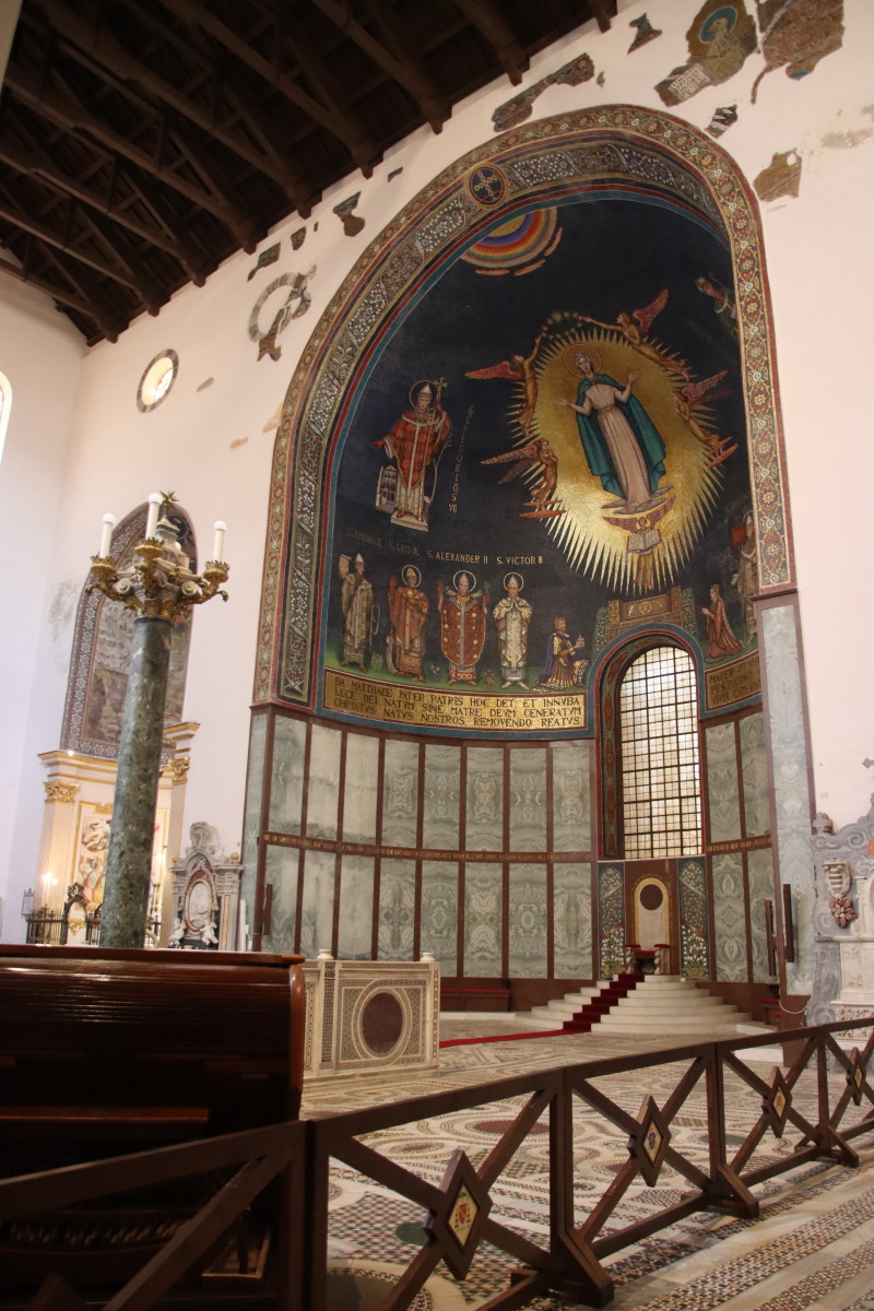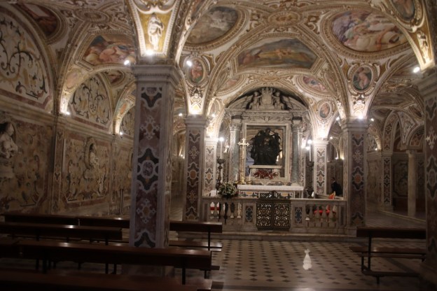 La découverte se prolonge lundi avec la visite de la basilique de San Simplicio construite au 5ème siècle sur les reste d’un temple dont elle garde l’orientation et la base des colonnes et sous laquelle se situe une grande nécropole datant de 200 av. JC, parfaite illustration de cet effet mille feuilles,
