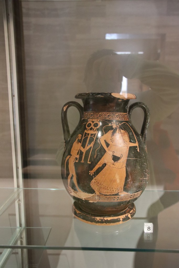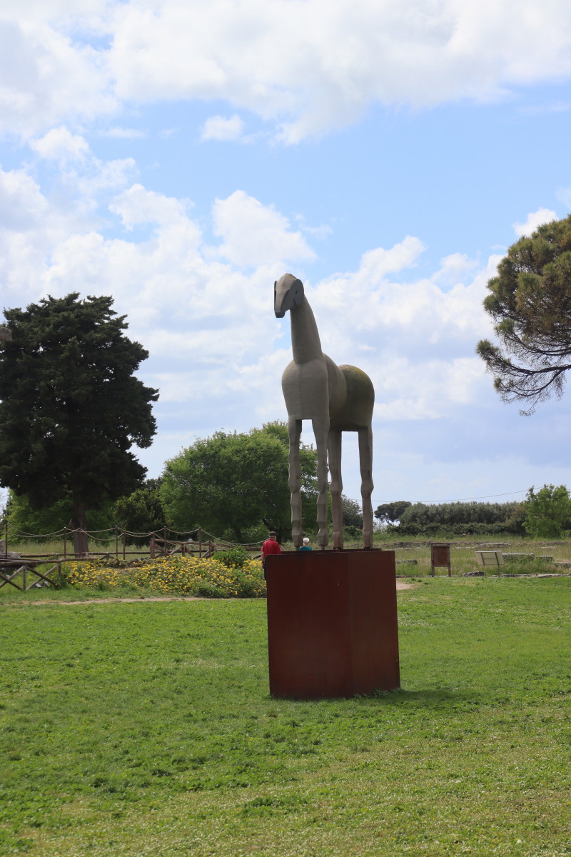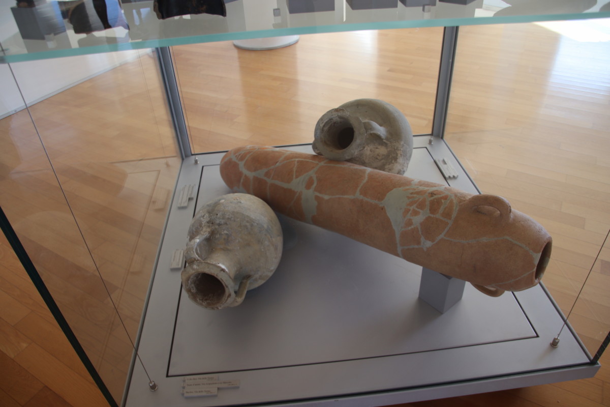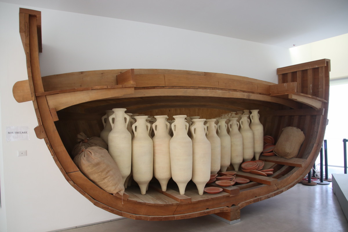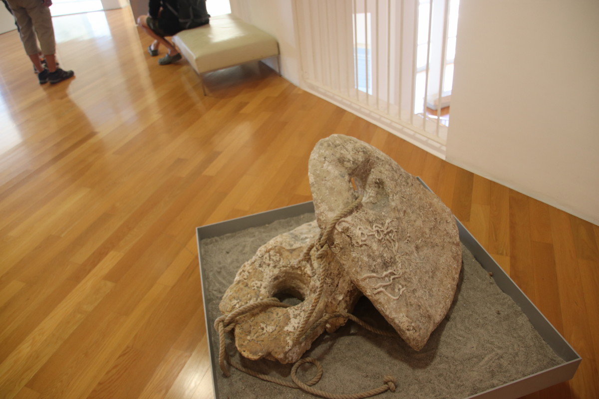 L’après midi nous visitons le musée archéologique à deux pas du quai. Nouvelle bonne surprise : l’entrée est gratuite y compris l’audio-guide. Le musée est très intéressant même si plusieurs salles sont en travaux. Il retrace l’histoire de la ville depuis le paléolithique jusqu’à nos jours dont voici un très bref résumé : les premiers habitants de la région était les Nuraghi, la ville elle même et son port ont été fondés par le Phéniciens vers le Xème siècle av. JC puis les Grecs qui lui ont donné son nom, supplantés à leur tours par les Carthaginois, avec qui elle connu son apogée en temps que plaque tournante commerciale, puis les Romains pour être dévastés par les Vandales au Vème siècle de notre ère (se sont eux qui ont coulé la magnifique épave exposée) et végété quelques temps sous domination Bizantine. Elle tomba ensuite pratiquement dans l’oubli au grès des périodes d’indépendances et de colonisations de l’île (Pise, Aragon) pour ne renaître qu’au XXème siècle. La colline où est bâtie la ville est en fait un mille feuille constitué des restes de toute ces civilisations.