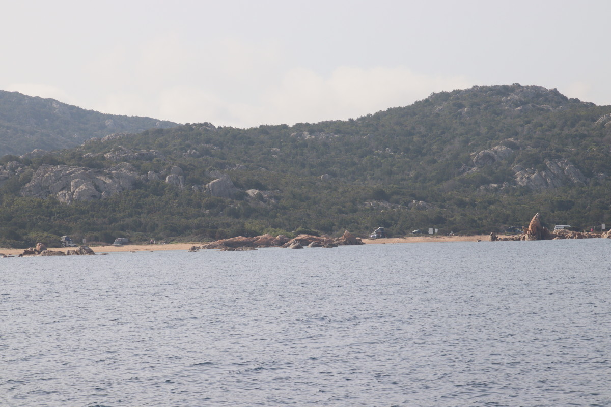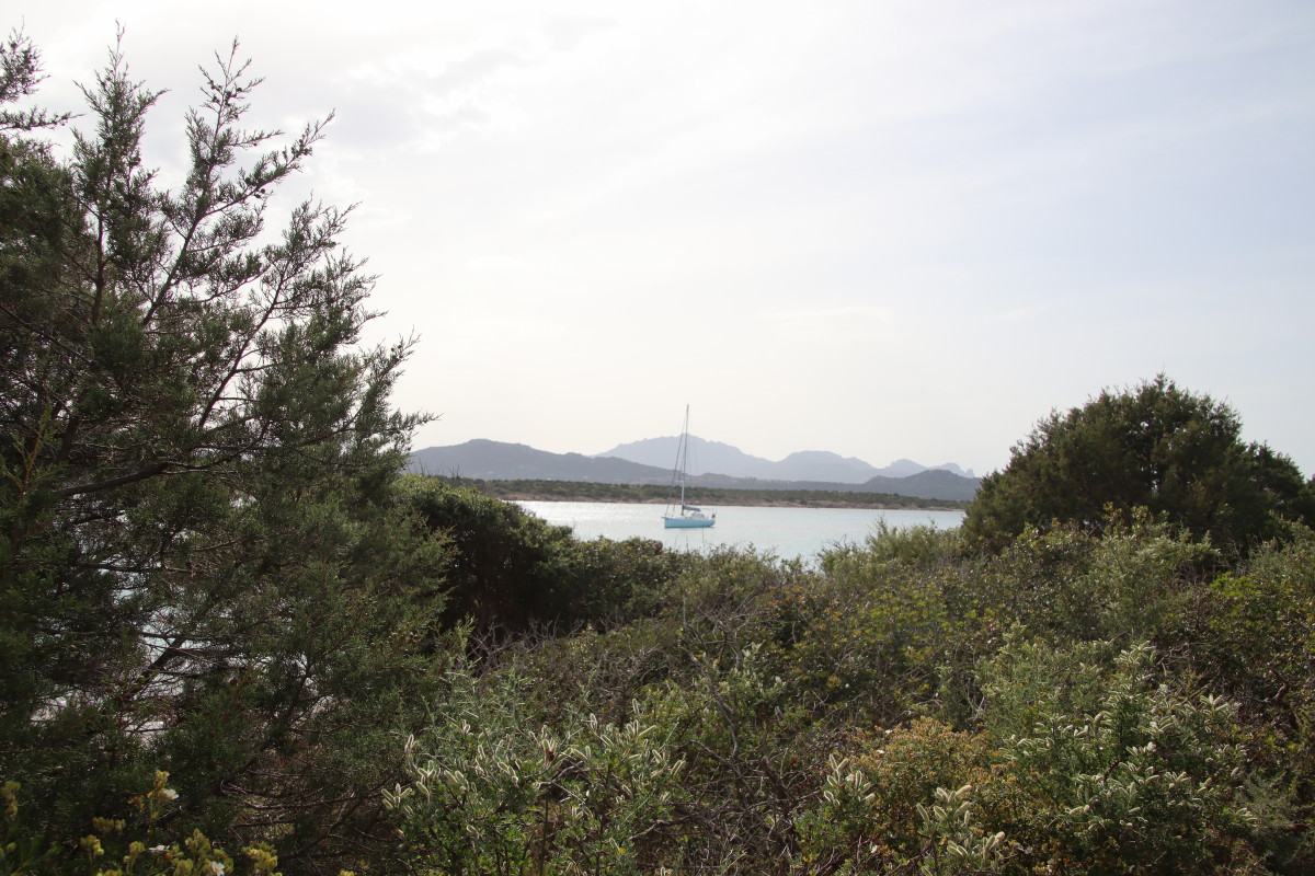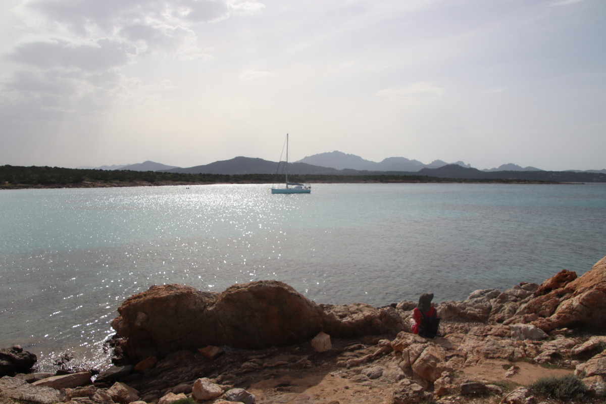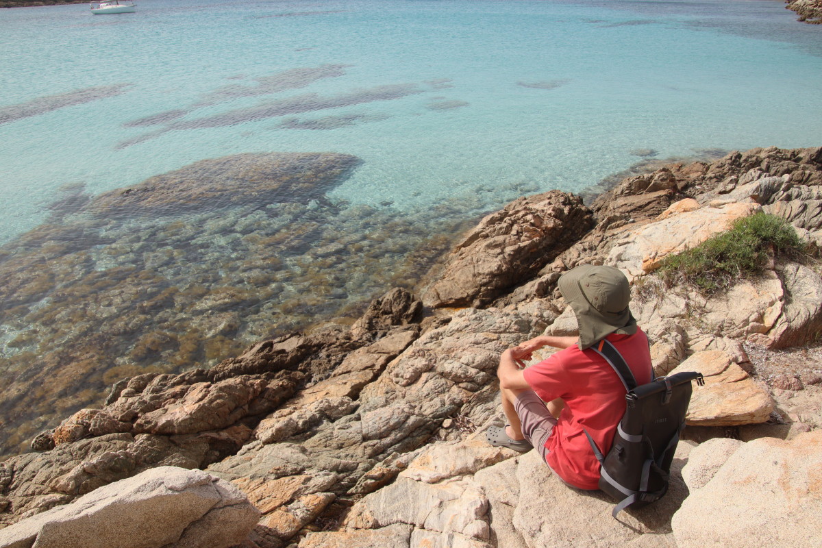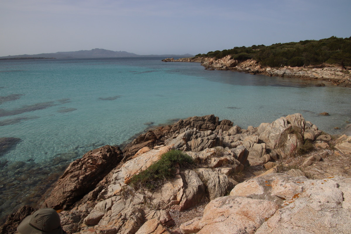 Bon pour commencer c’est du Sud Est On va donc aller s’abriter sur la côte nord de la péninsule formant le Golfe d’Aranci plus précisément la Cala Sabina une petite crique entourée de maquis d’où débordent de gros rochers et terminée par une petite plage de sable blanc donnant à l’eau cette couleur émeraude si caractéristique. À peine 21° l’eau est loin d’être chaude mais elle est tellement cristalline que c’est un plaisir de s’y plonger même si après quelques brasserons en ressort très vite. Après la baignade ballade dans le maquis.
