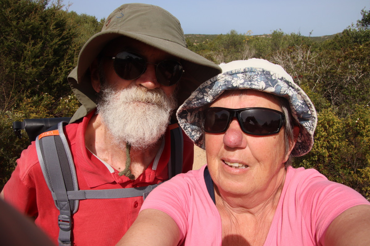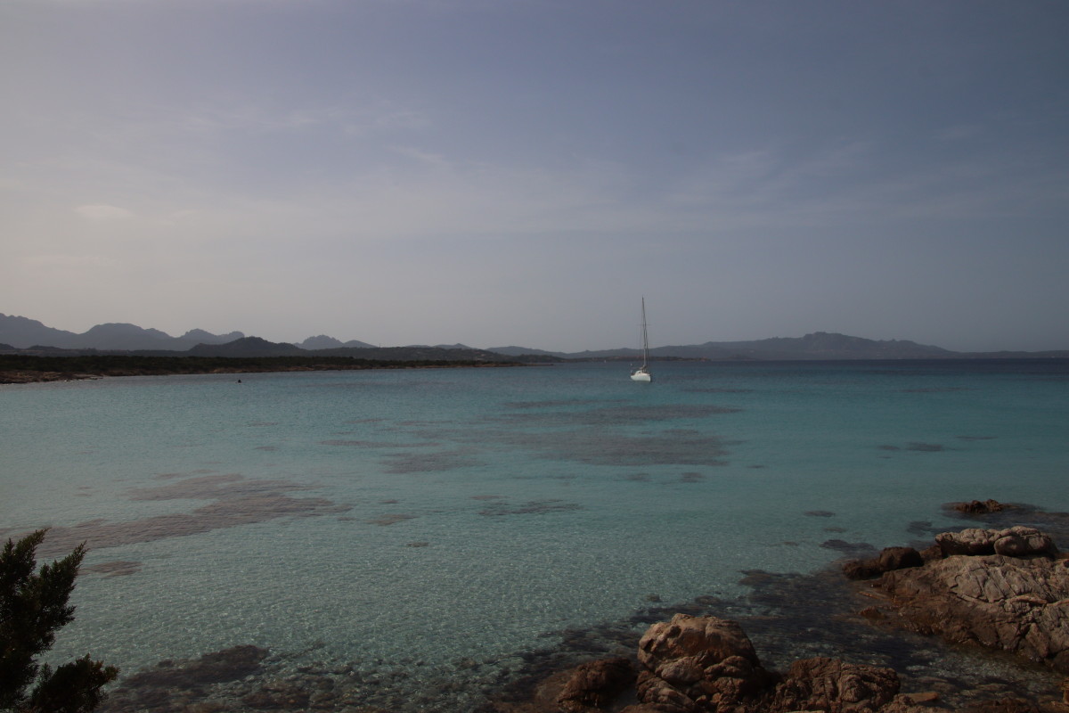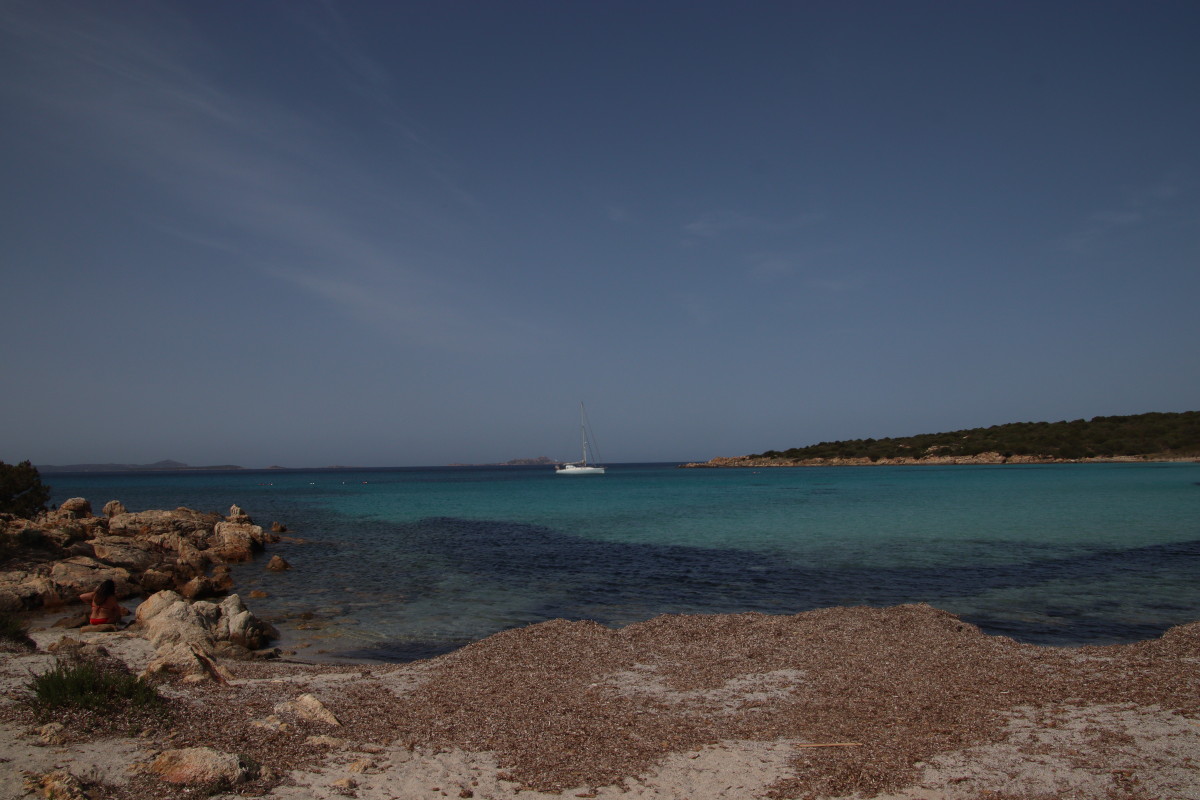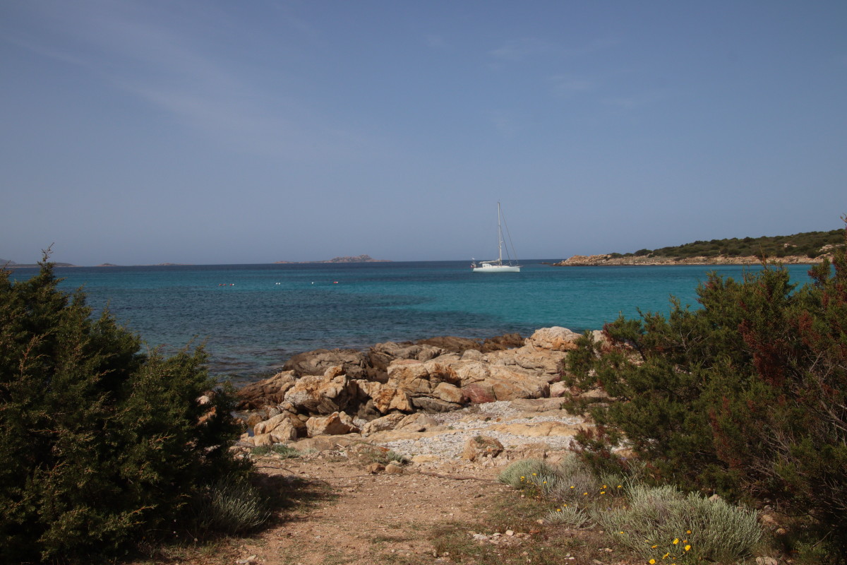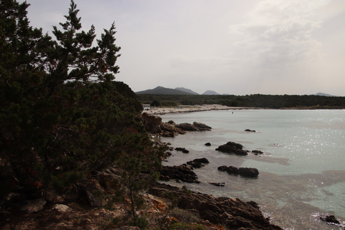 Bon pour commencer c’est du Sud Est On va donc aller s’abriter sur la côte nord de la péninsule formant le Golfe d’Aranci plus précisément la Cala Sabina une petite crique entourée de maquis d’où débordent de gros rochers et terminée par une petite plage de sable blanc donnant à l’eau cette couleur émeraude si caractéristique. À peine 21° l’eau est loin d’être chaude mais elle est tellement cristalline que c’est un plaisir de s’y plonger même si après quelques brasserons en ressort très vite. Après la baignade ballade dans le maquis.