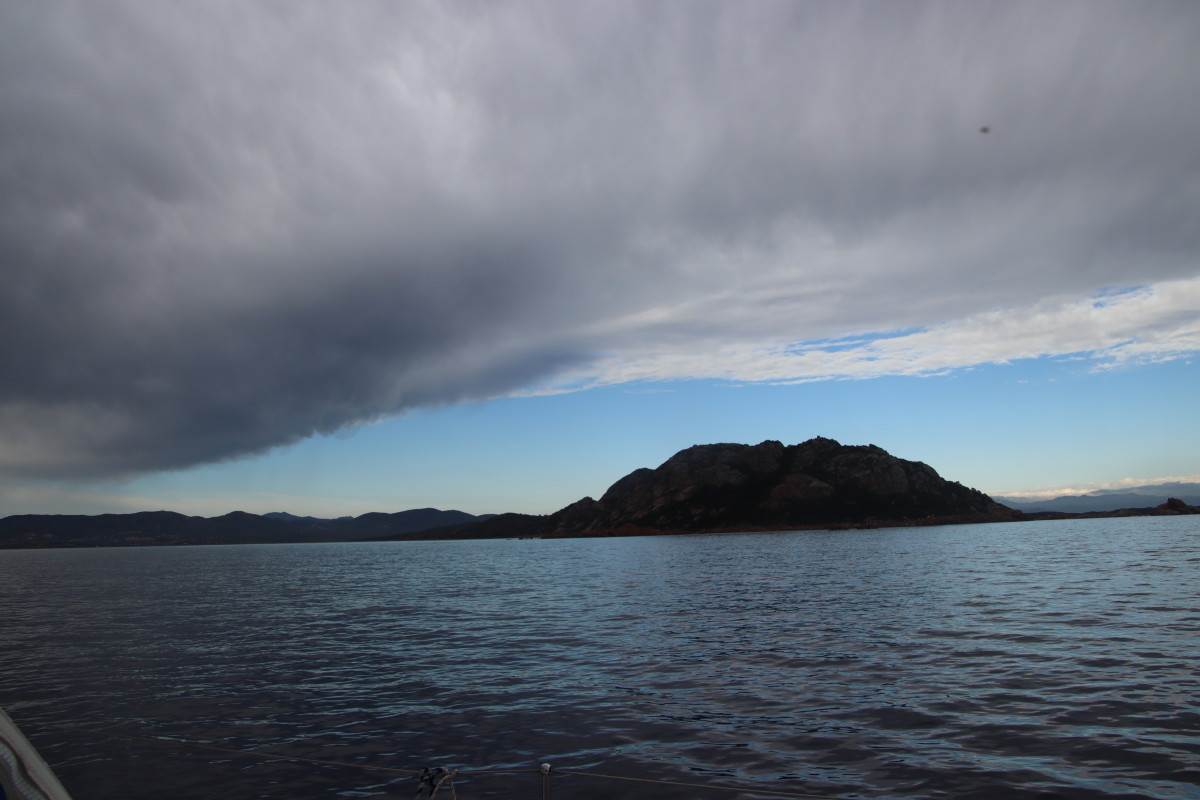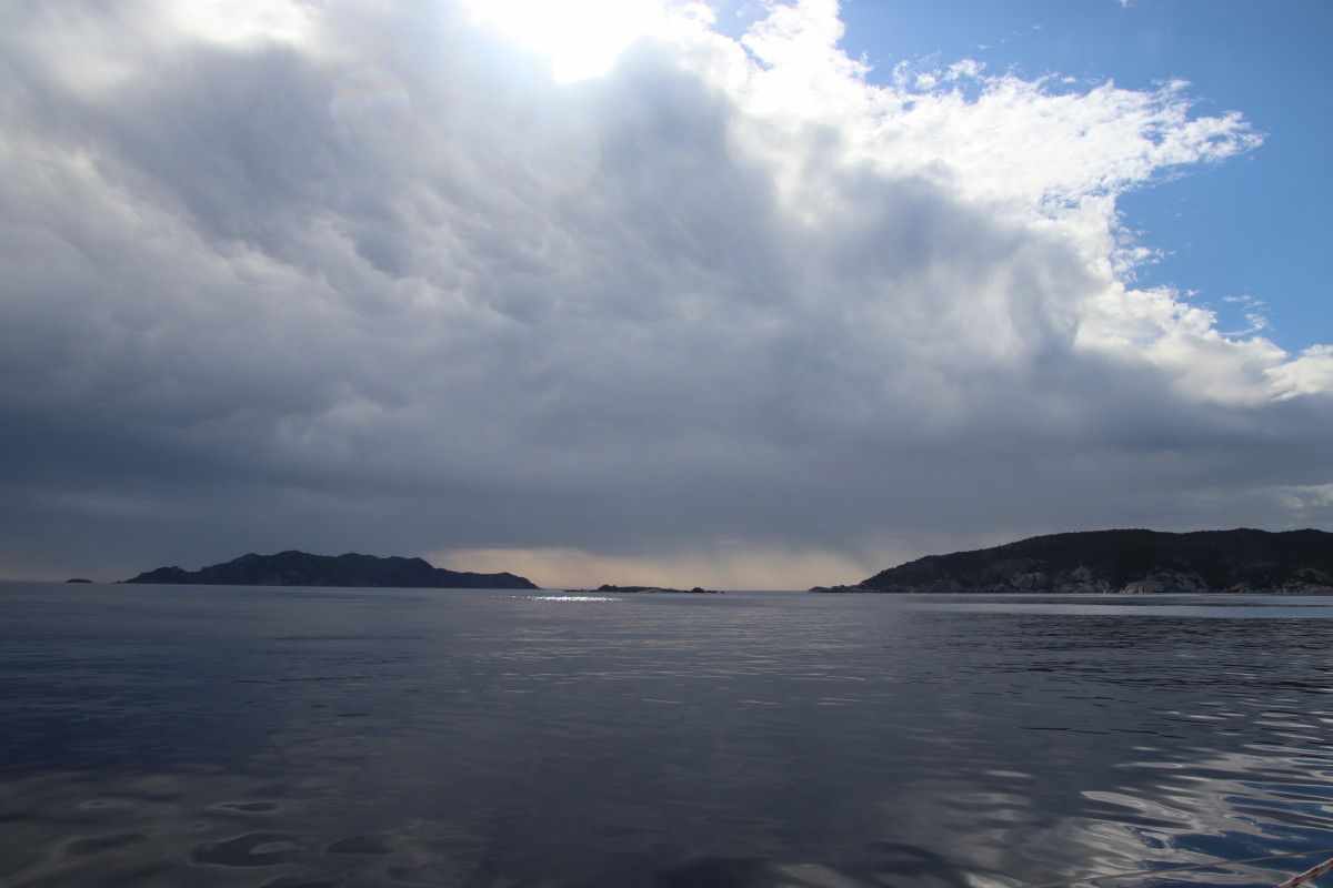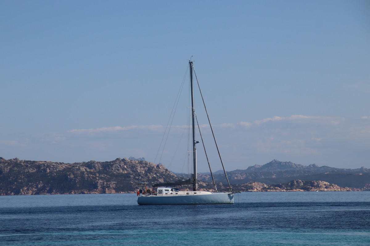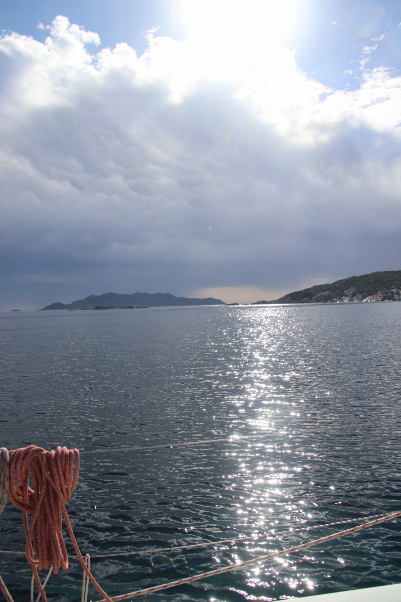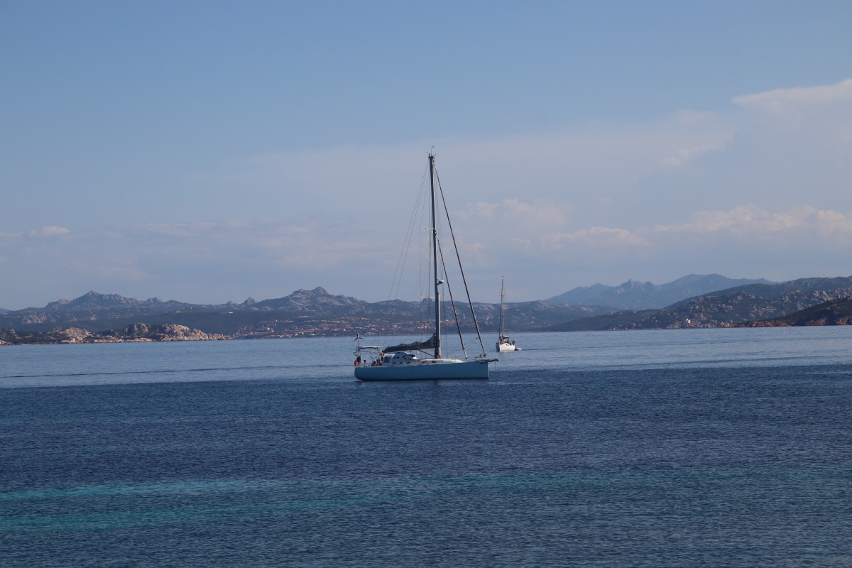 Mais le luxe de Porto Cervo n’est absolument pas pour nous : notre but, ce sont les îles Maddalena qui s’étendent dans toute la partie Sud des bouches de Bonifacio (le détroit séparant la Corse de la Sicile). Un grand beau temps avec du vent très modéré de Nord Est est annoncé pour les jours suivant. C’est idéal et il faut en profiter car ici la topographie du détroit en fait un cône de venturi presque parfait et dès que le vent souffle un peu fort de l’Ouest ou de l’Est il est brutalement accéléré rendant au mieux les mouillages inconfortables voire impraticables.