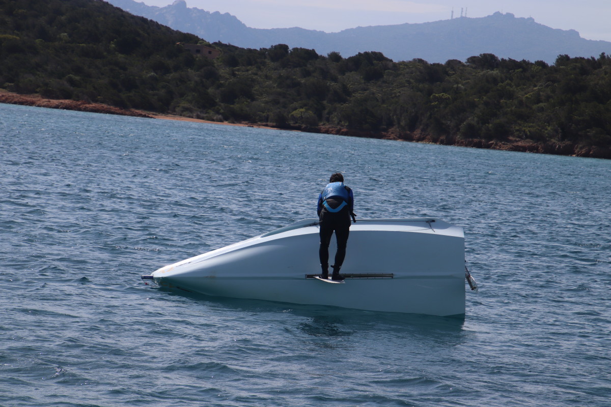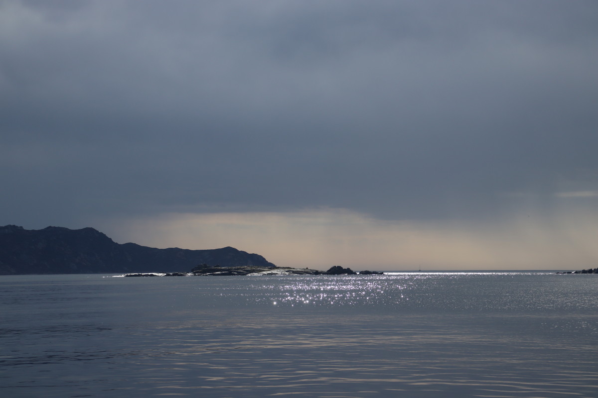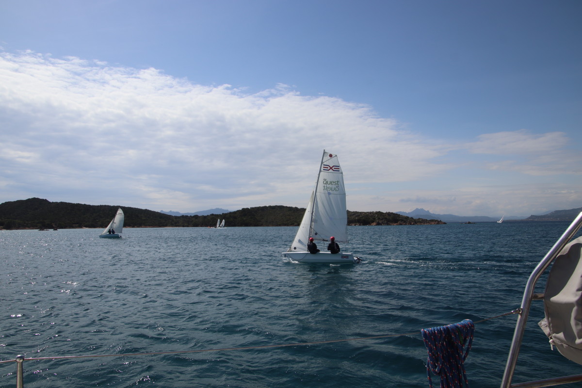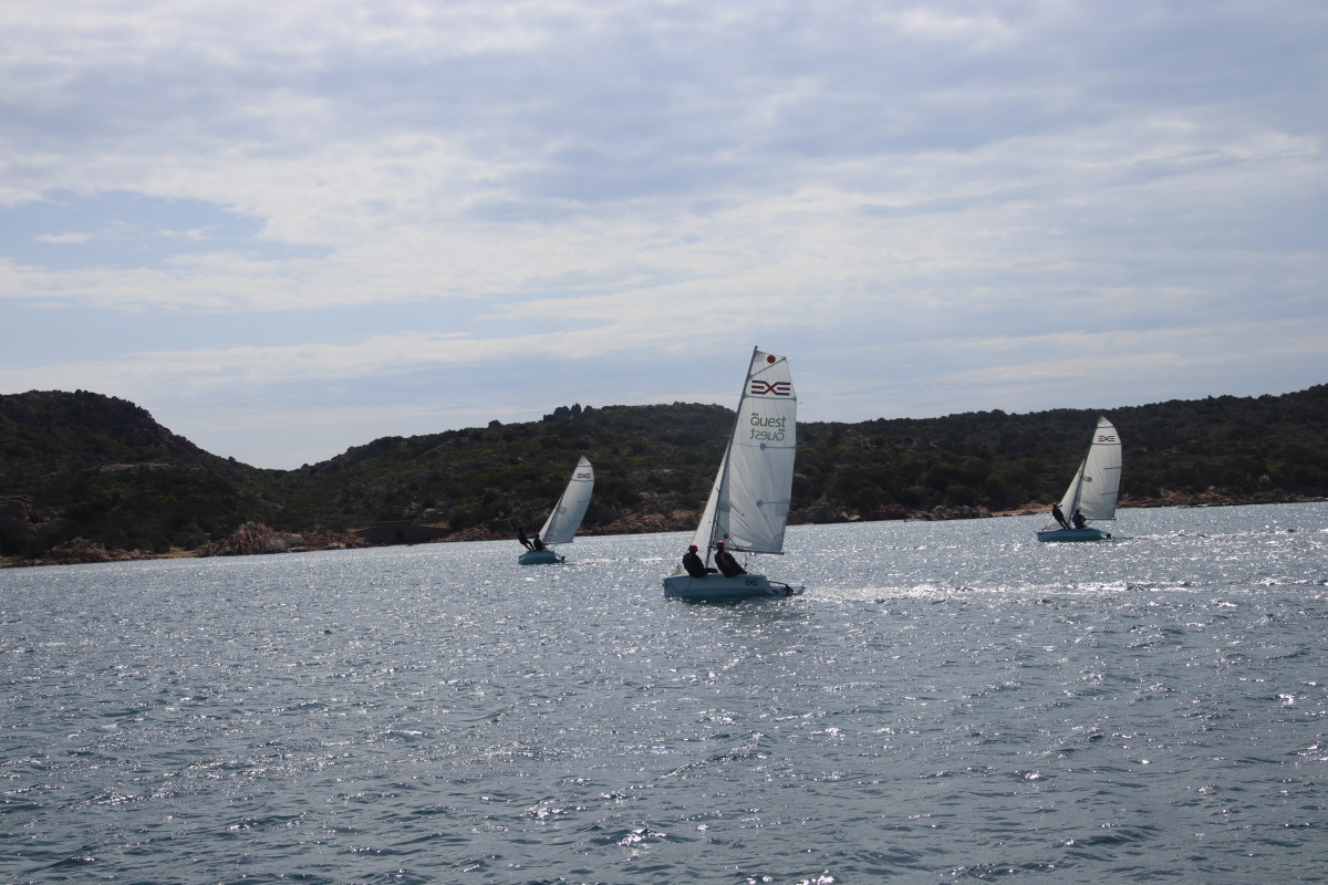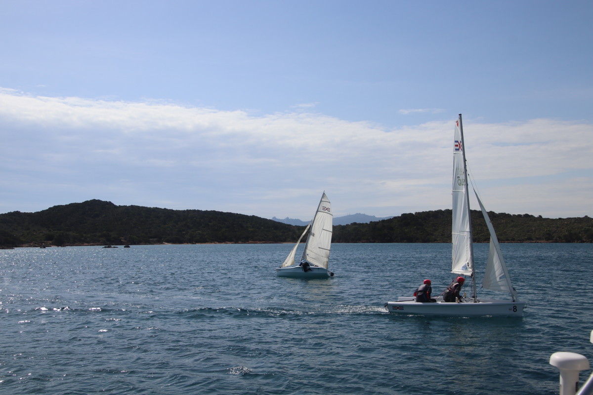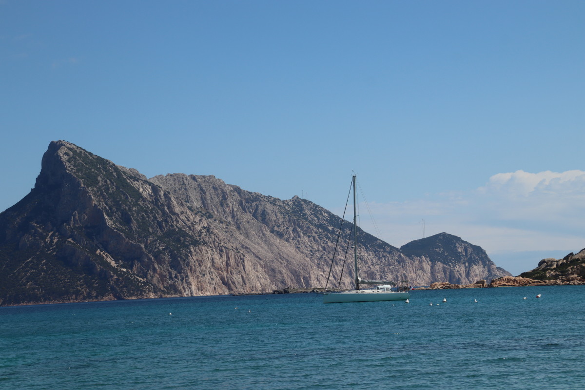 Nous commençons ce séjour par 2 jours dans la baie de Porto Palma sur la côte sud de Caprera. Encore tranquille en cette saison nous avons toute la place pour choisir un beau patch de sable sans posidonie pour y déposer notre ancre. La baie est le terrain de jeu d’une école de voile très active (ça nous rappelle des souvenirs de jeunesse) et toute la journée dériveurs et petits habitables de régate s’ébattent dans un ballet incessant d’empannages, virements de bords et autres manœuvres.