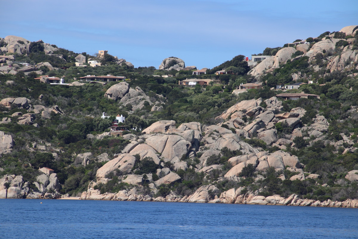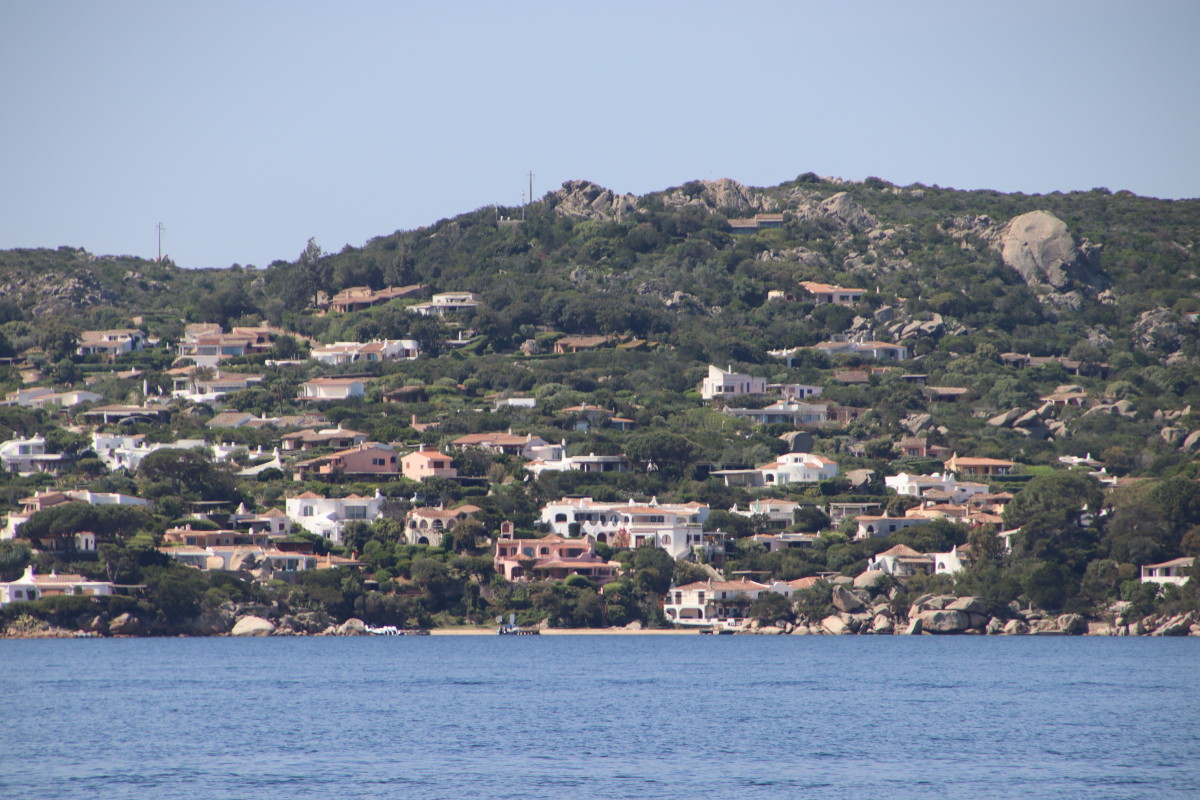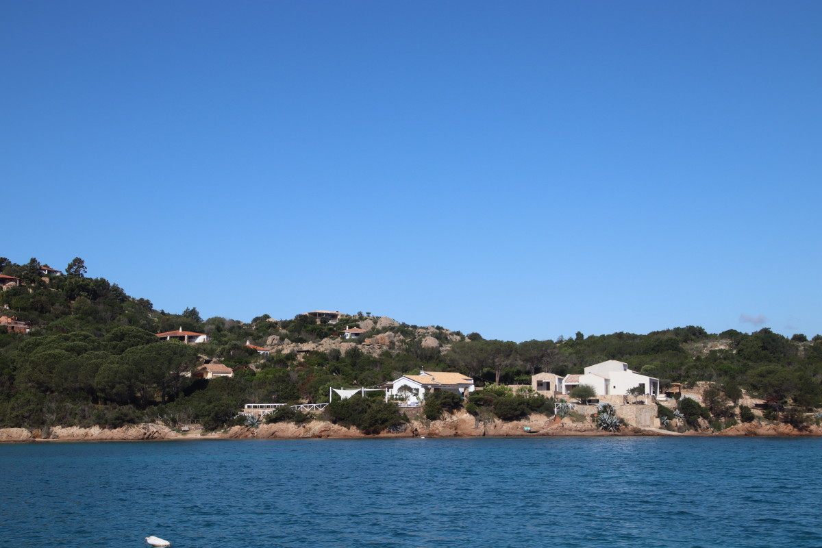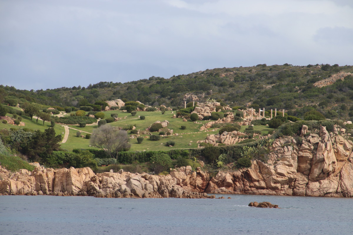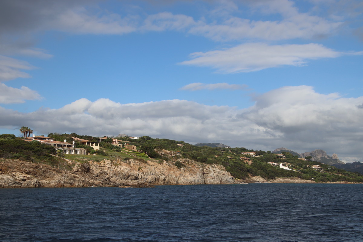 La Costa Smeralda (côte d’émeraude) est une portion de la côte sarde qui s’étend du Cap Figari (que nous avons passer hier) au sud jusqu’au port Palau (à ne pas confondre avec l’archipel de Micronésie qui porte le même nom) au nord. Avec en son centre la célèbre station balnéaire/port de luxe de Porto Cervo. Cette région à l’origine très pauvre mais gâtée par la nature de paysages marins d’une beauté exceptionnelle a été développé dans les années 1960 en un lieu de villégiature exclusive pour les plus riches et le plus célèbres de ce monde par le Prince Karim Agha Khan IV. Si l’on peut contester les bienfaits d’un tel développement sur la nature, il aurait été très bénéfique pour la population local, et il faut reconnaître que de très gros efforts ont été accomplis pour intégrer les constructions dans le paysage.