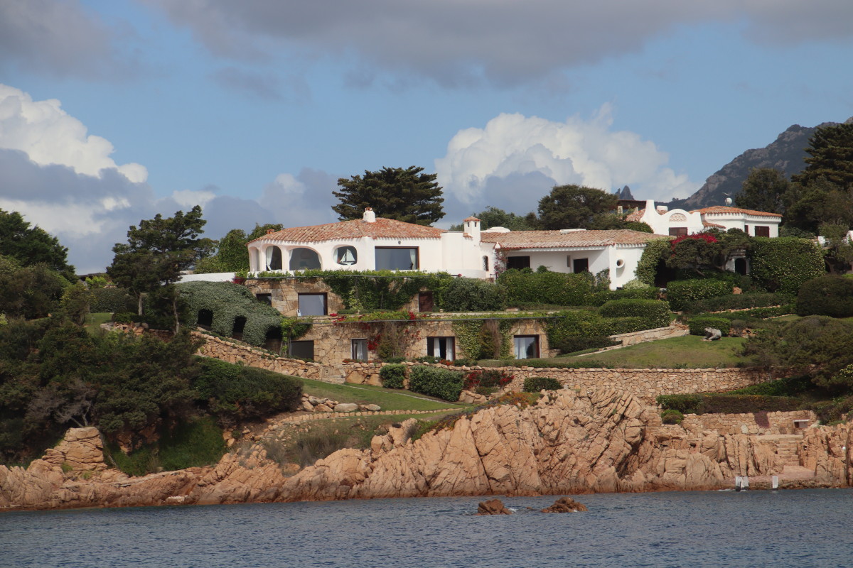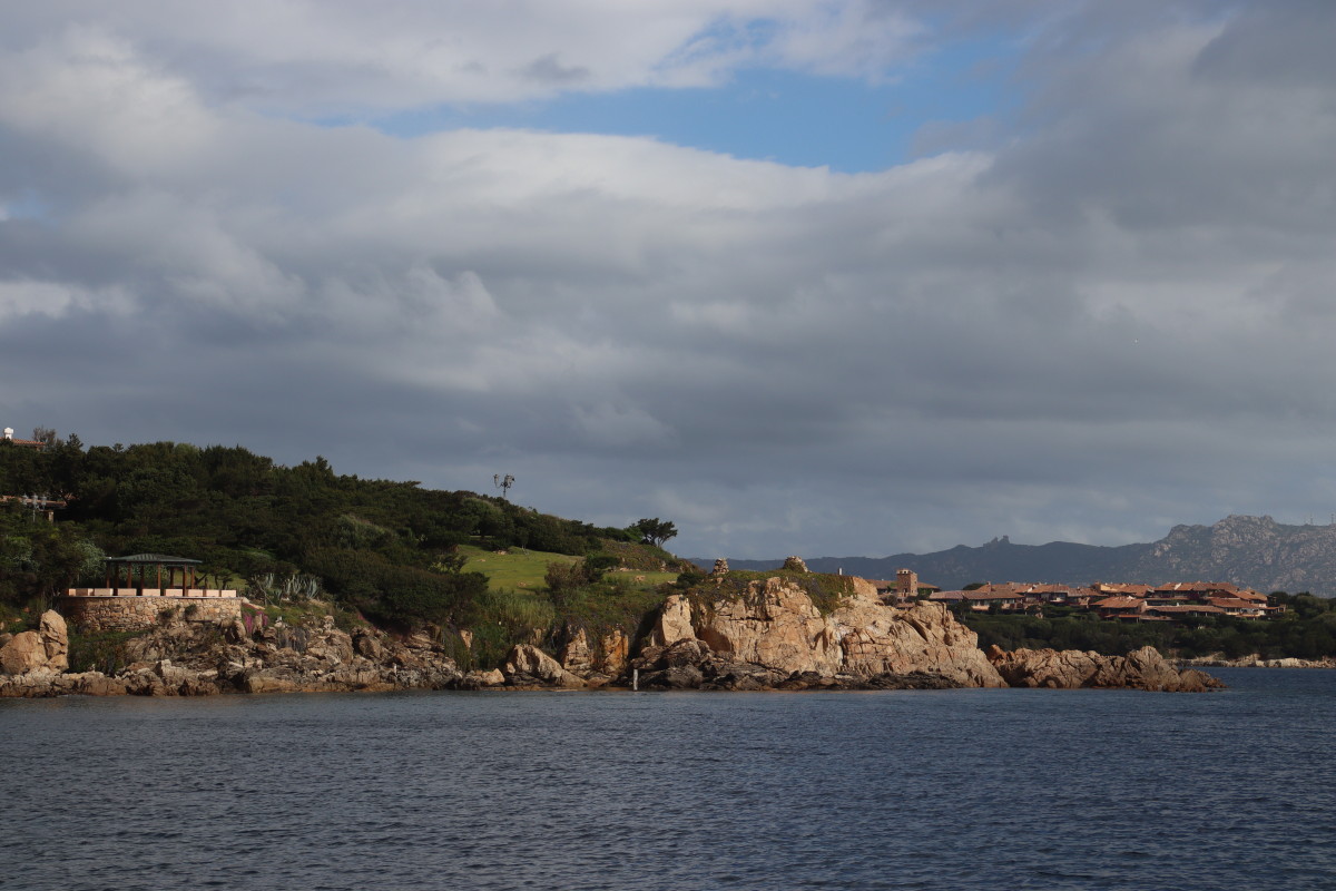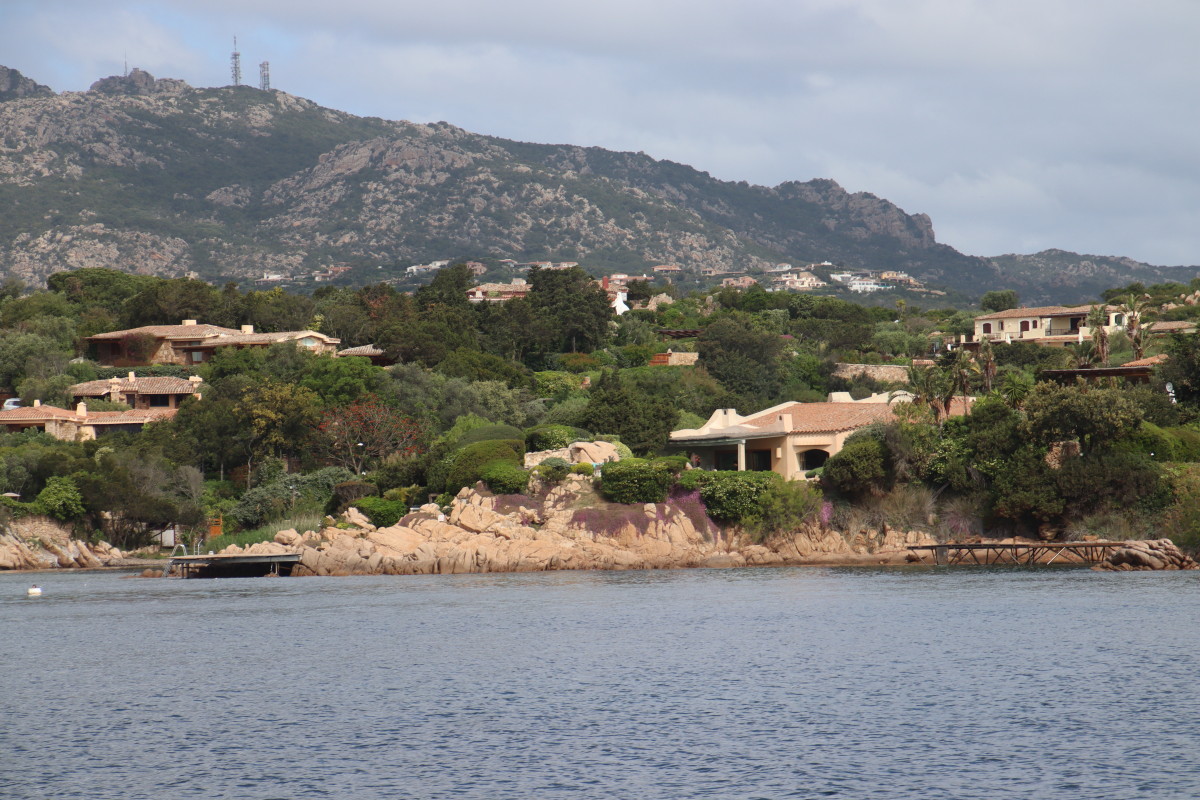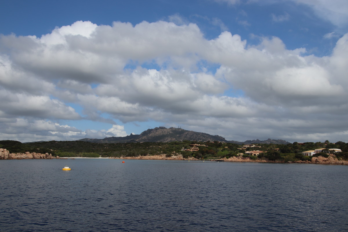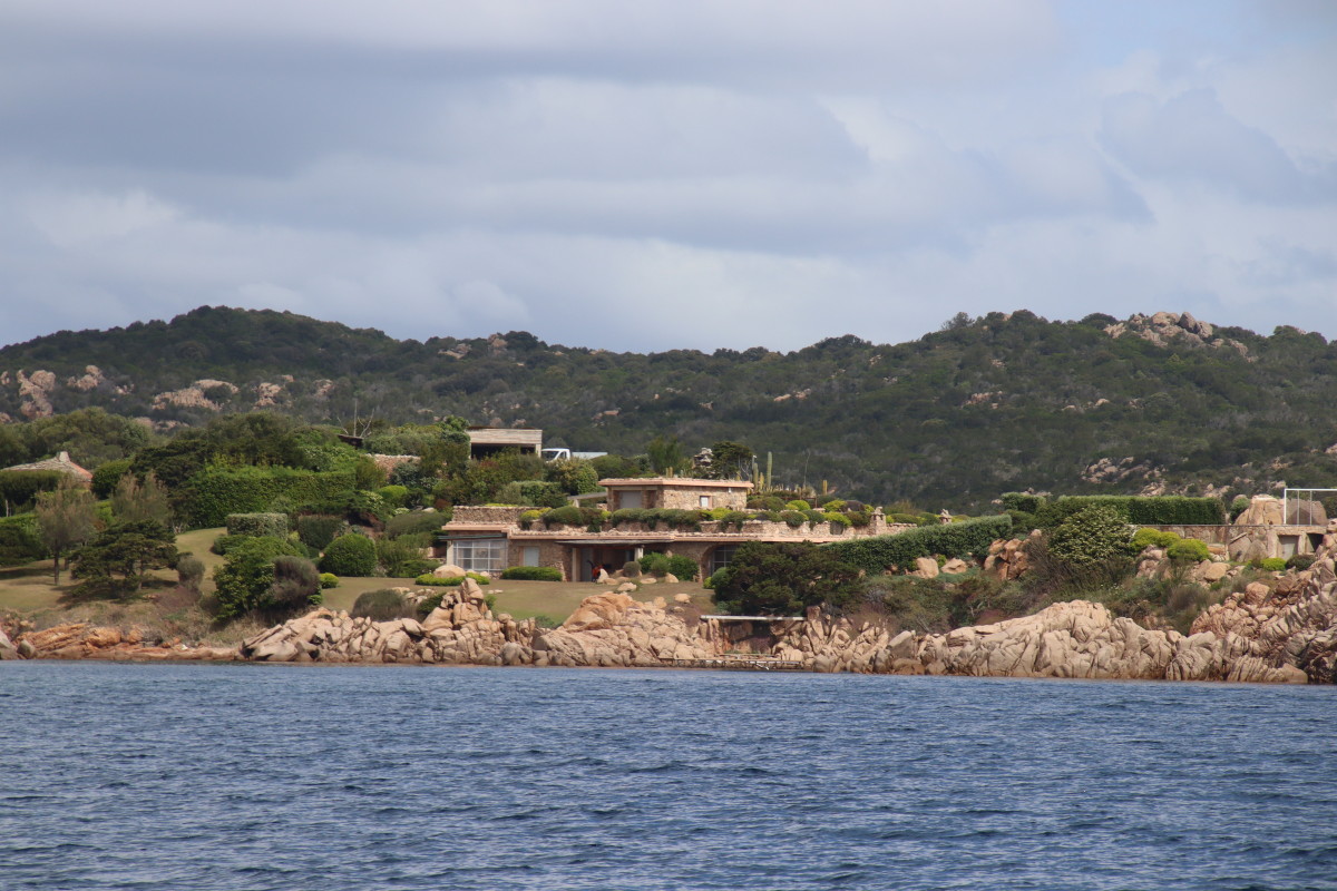 La Costa Smeralda (côte d’émeraude) est une portion de la côte sarde qui s’étend du Cap Figari (que nous avons passer hier) au sud jusqu’au port Palau (à ne pas confondre avec l’archipel de Micronésie qui porte le même nom) au nord. Avec en son centre la célèbre station balnéaire/port de luxe de Porto Cervo. Cette région à l’origine très pauvre mais gâtée par la nature de paysages marins d’une beauté exceptionnelle a été développé dans les années 1960 en un lieu de villégiature exclusive pour les plus riches et le plus célèbres de ce monde par le Prince Karim Agha Khan IV. Si l’on peut contester les bienfaits d’un tel développement sur la nature, il aurait été très bénéfique pour la population local, et il faut reconnaître que de très gros efforts ont été accomplis pour intégrer les constructions dans le paysage.