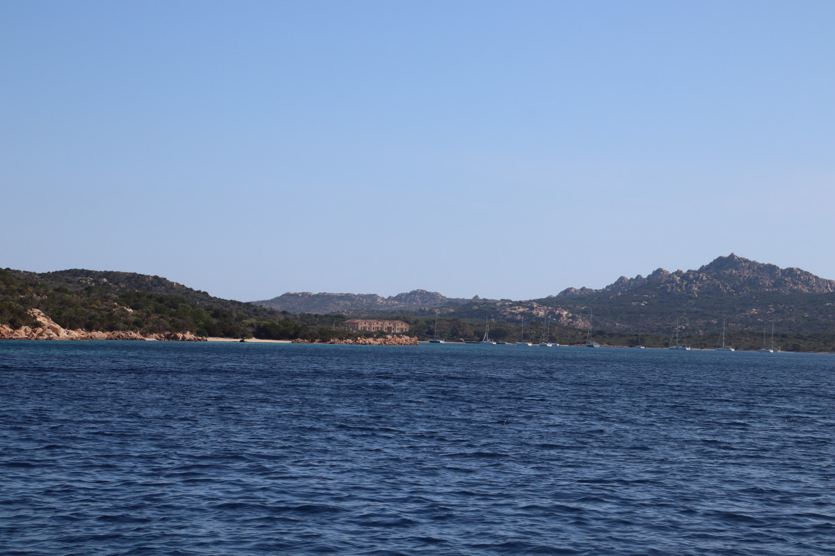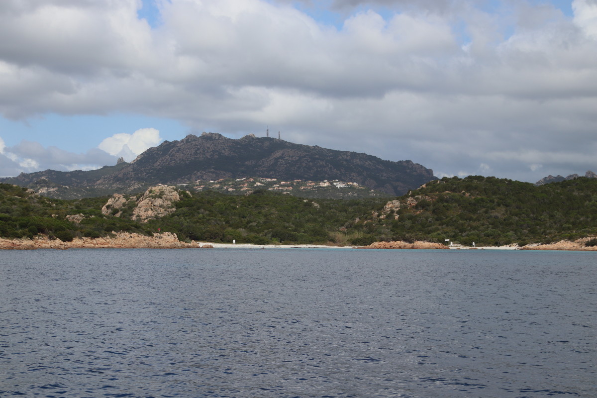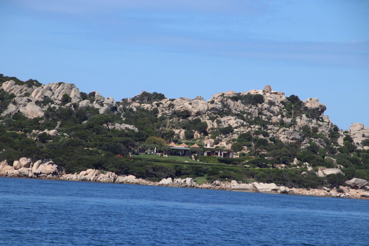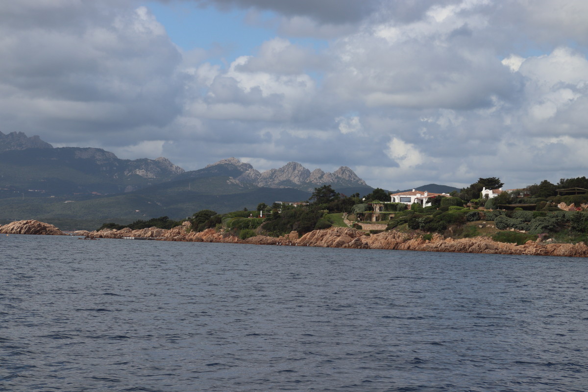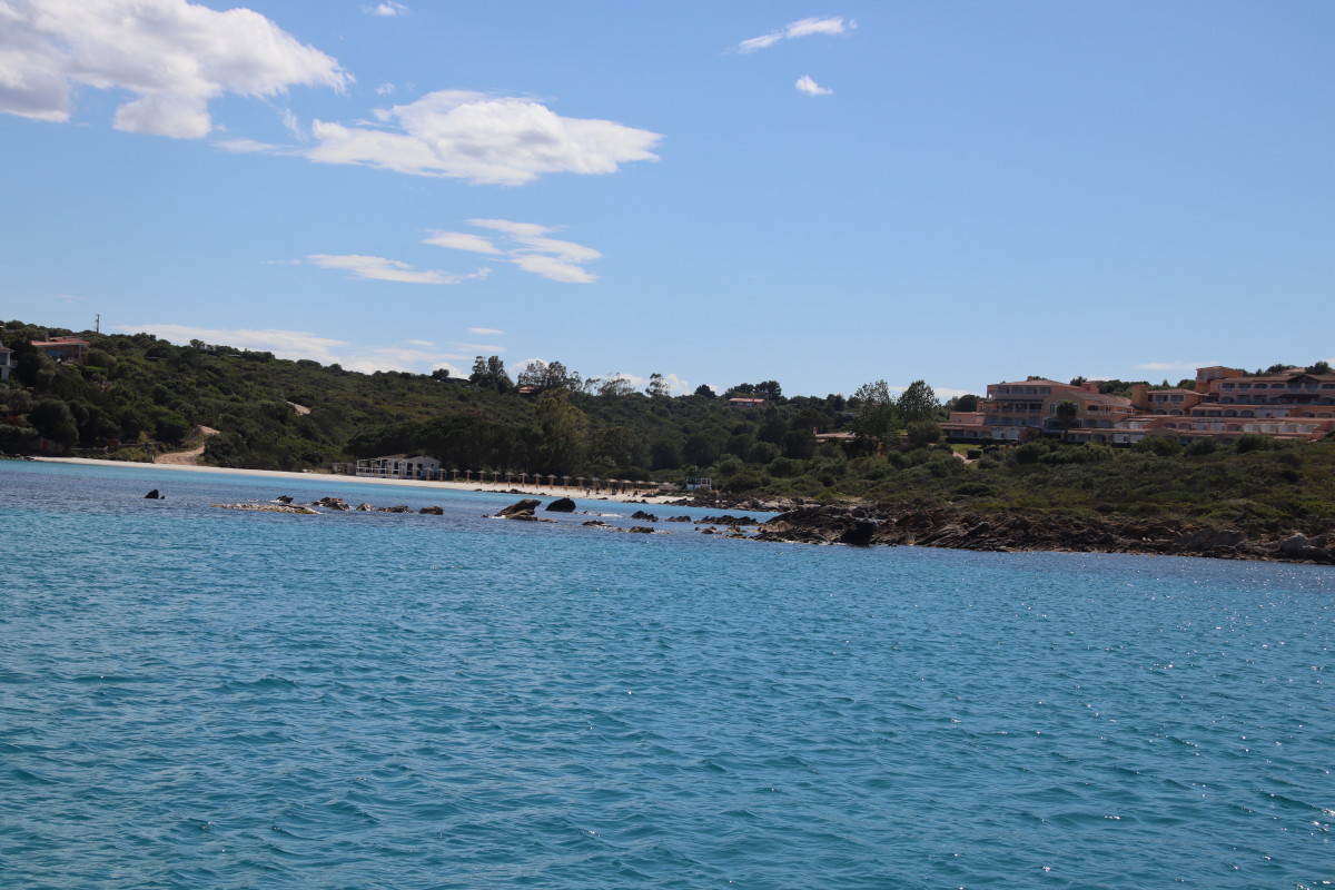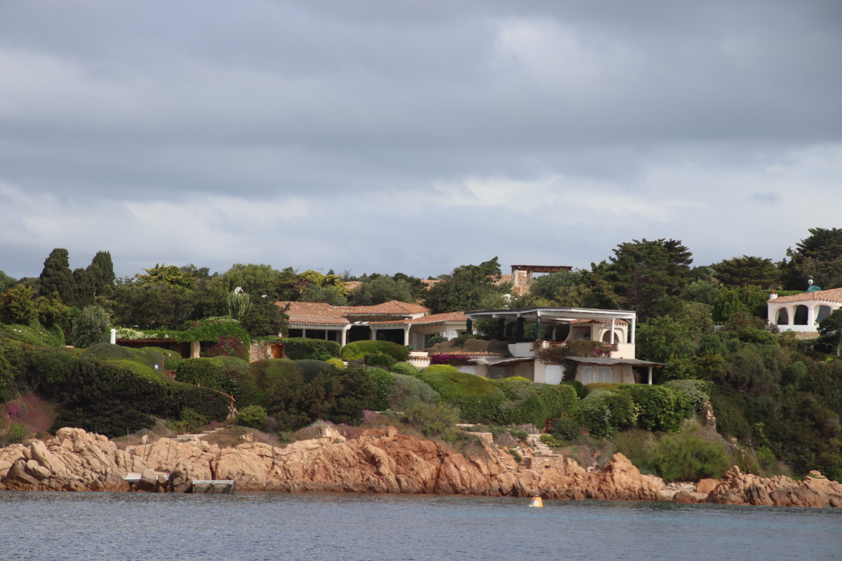 La Costa Smeralda (côte d’émeraude) est une portion de la côte sarde qui s’étend du Cap Figari (que nous avons passer hier) au sud jusqu’au port Palau (à ne pas confondre avec l’archipel de Micronésie qui porte le même nom) au nord. Avec en son centre la célèbre station balnéaire/port de luxe de Porto Cervo. Cette région à l’origine très pauvre mais gâtée par la nature de paysages marins d’une beauté exceptionnelle a été développé dans les années 1960 en un lieu de villégiature exclusive pour les plus riches et le plus célèbres de ce monde par le Prince Karim Agha Khan IV. Si l’on peut contester les bienfaits d’un tel développement sur la nature, il aurait été très bénéfique pour la population local, et il faut reconnaître que de très gros efforts ont été accomplis pour intégrer les constructions dans le paysage.