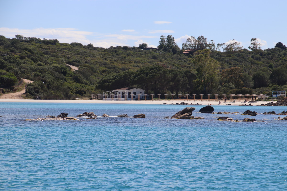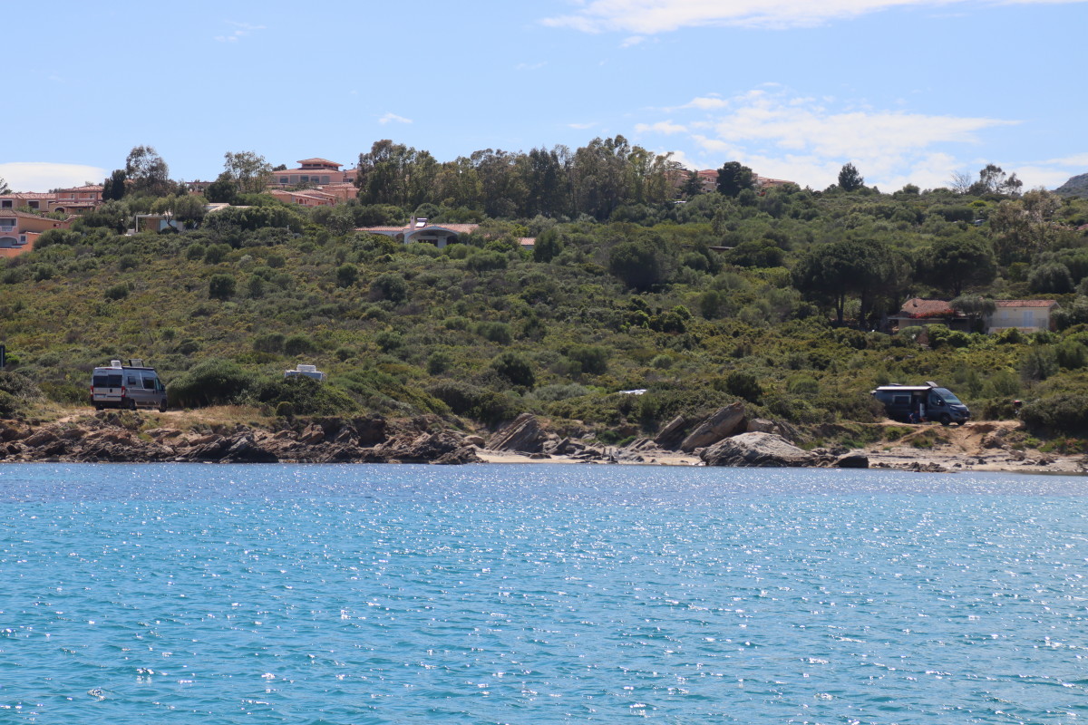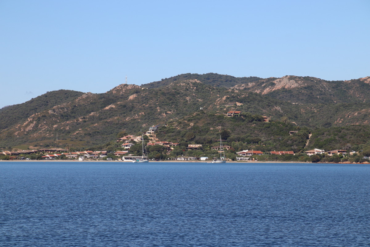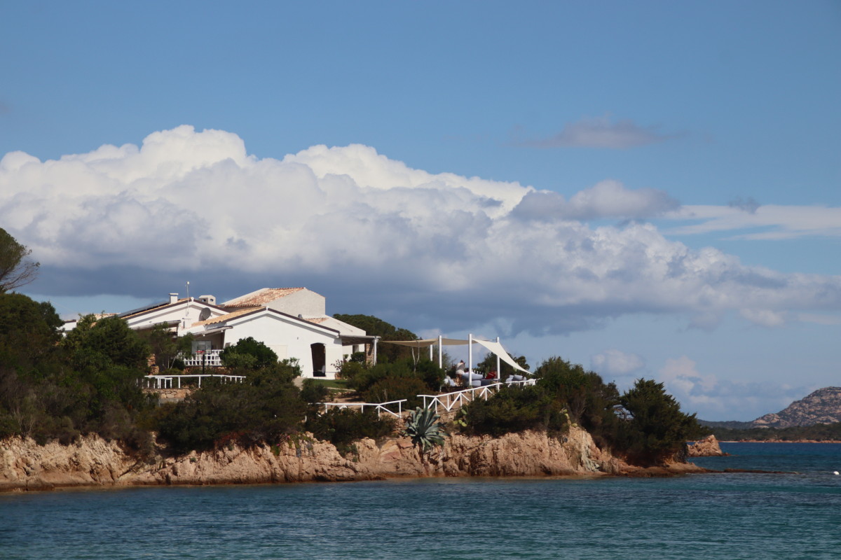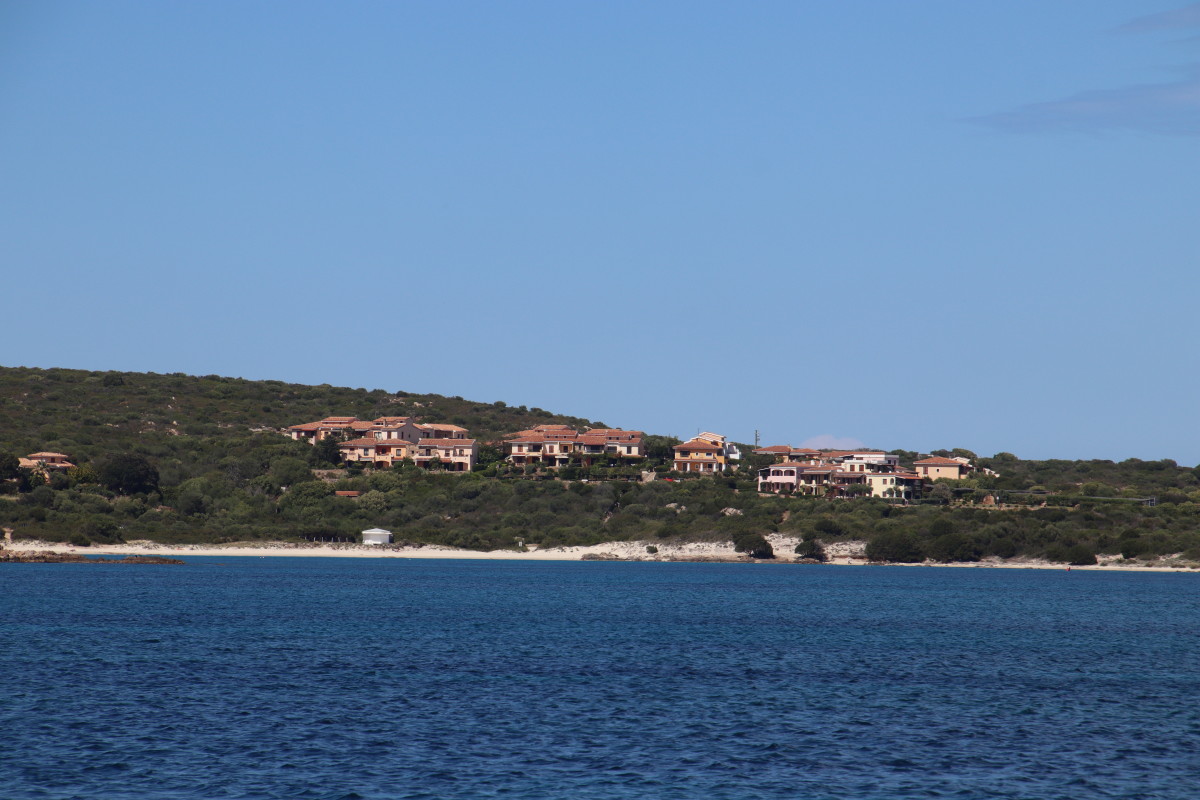 La Costa Smeralda (côte d’émeraude) est une portion de la côte sarde qui s’étend du Cap Figari (que nous avons passer hier) au sud jusqu’au port Palau (à ne pas confondre avec l’archipel de Micronésie qui porte le même nom) au nord. Avec en son centre la célèbre station balnéaire/port de luxe de Porto Cervo. Cette région à l’origine très pauvre mais gâtée par la nature de paysages marins d’une beauté exceptionnelle a été développé dans les années 1960 en un lieu de villégiature exclusive pour les plus riches et le plus célèbres de ce monde par le Prince Karim Agha Khan IV. Si l’on peut contester les bienfaits d’un tel développement sur la nature, il aurait été très bénéfique pour la population local, et il faut reconnaître que de très gros efforts ont été accomplis pour intégrer les constructions dans le paysage.