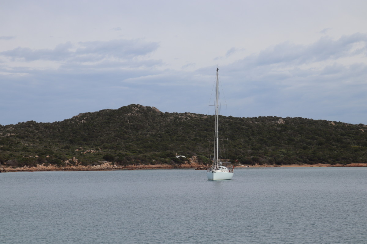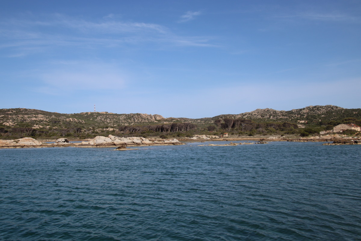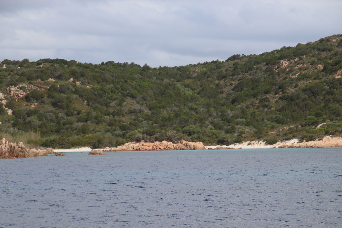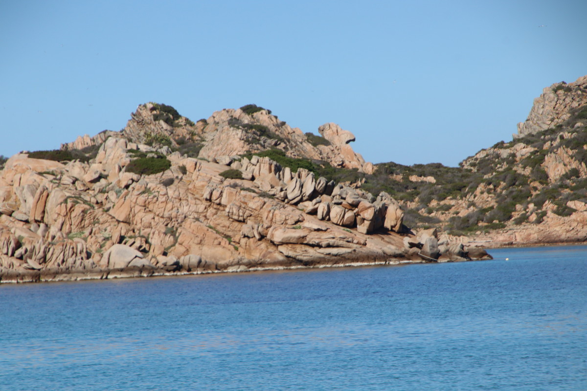 Le 10 Mai nous quittons Caprera et tirons des bords dans une brise évanescente pour nous faufiler entre les îles : San Stefano, La Maddalena, Spargi pour venir ancrer à Budelli juste à l’entrée sud du « lagon » formé par les îles Budeli, Santa Maria et Razzoli.