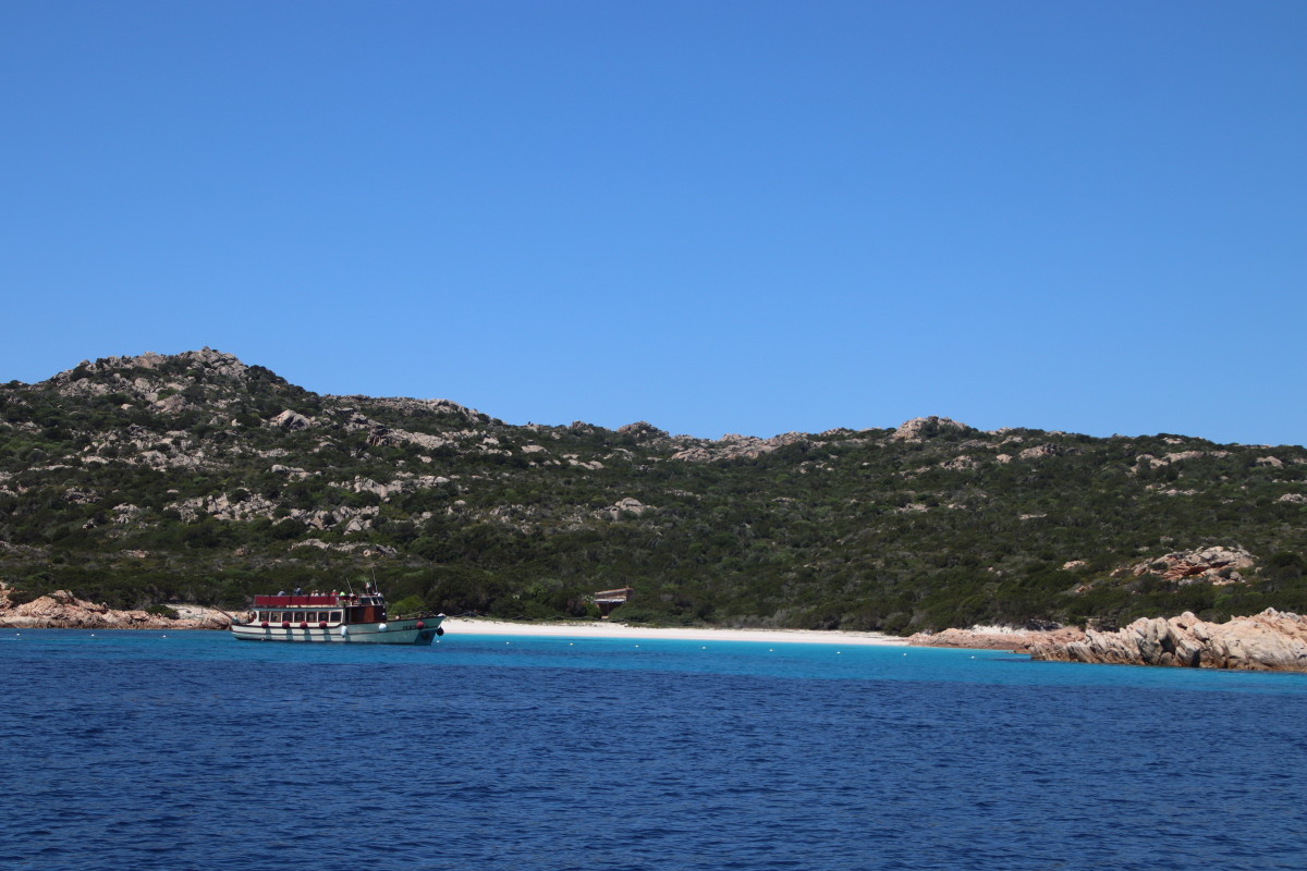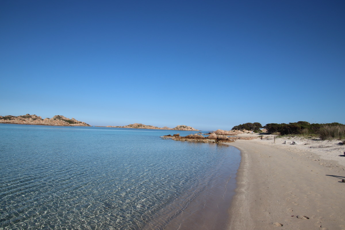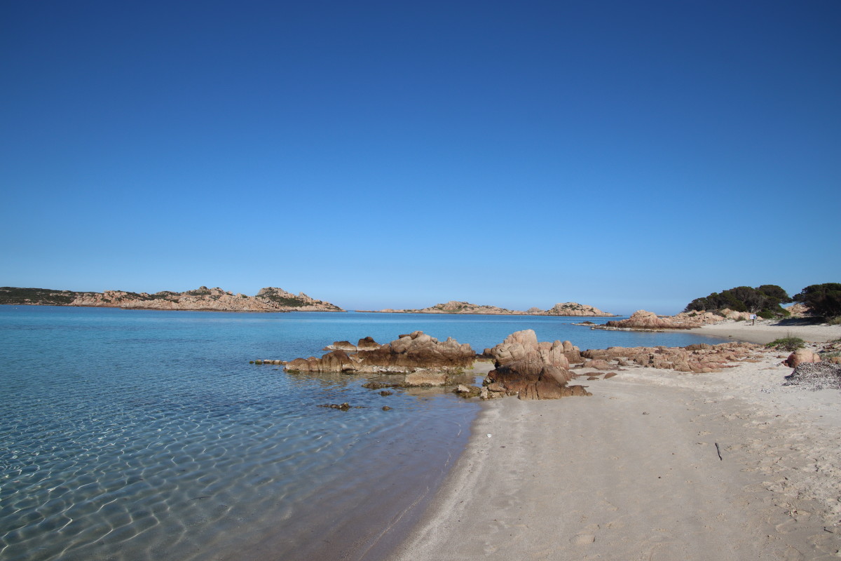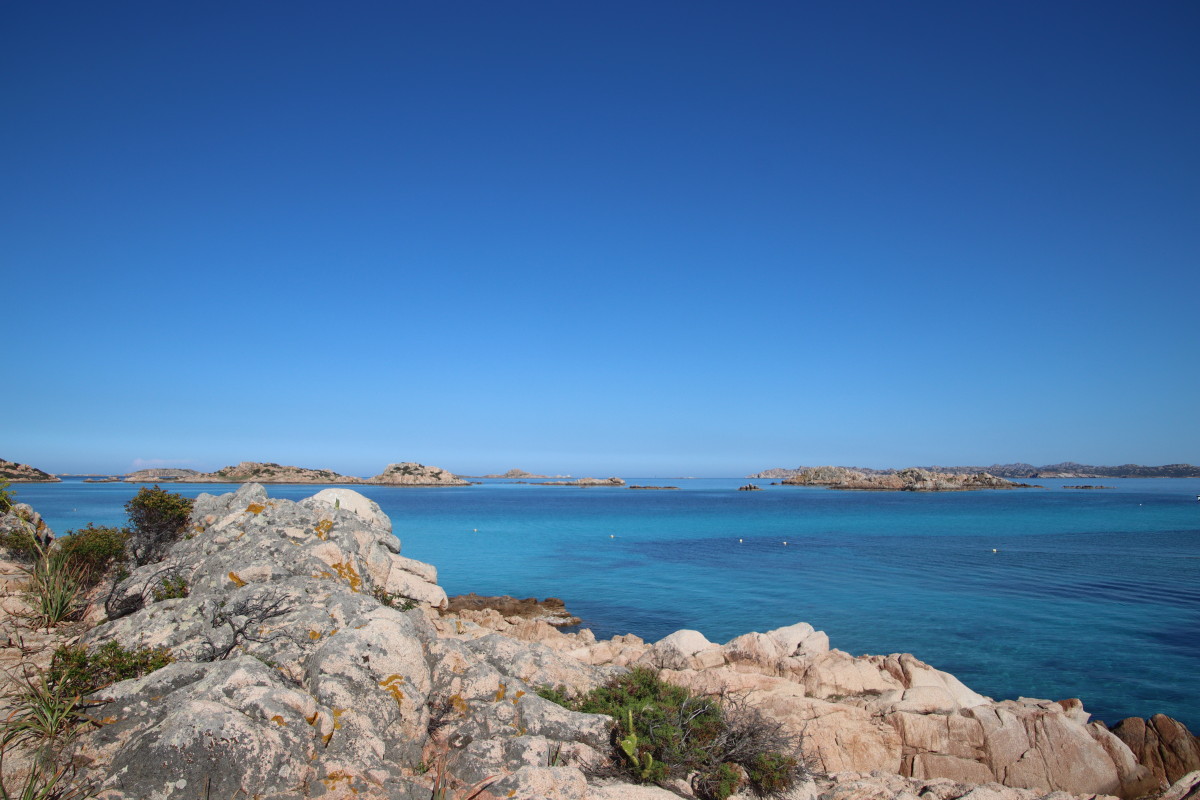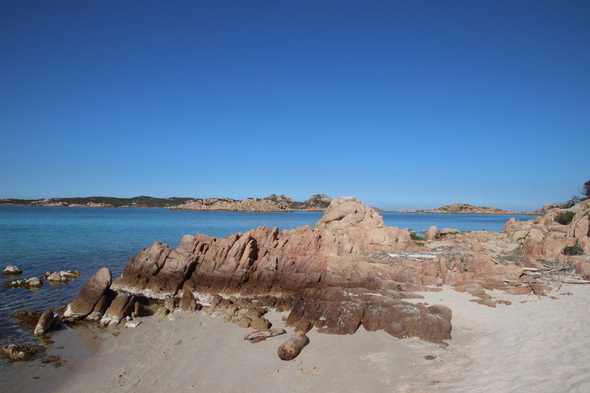 Le 10 Mai nous quittons Caprera et tirons des bords dans une brise évanescente pour nous faufiler entre les îles : San Stefano, La Maddalena, Spargi pour venir ancrer à Budelli juste à l’entrée sud du « lagon » formé par les îles Budeli, Santa Maria et Razzoli.
