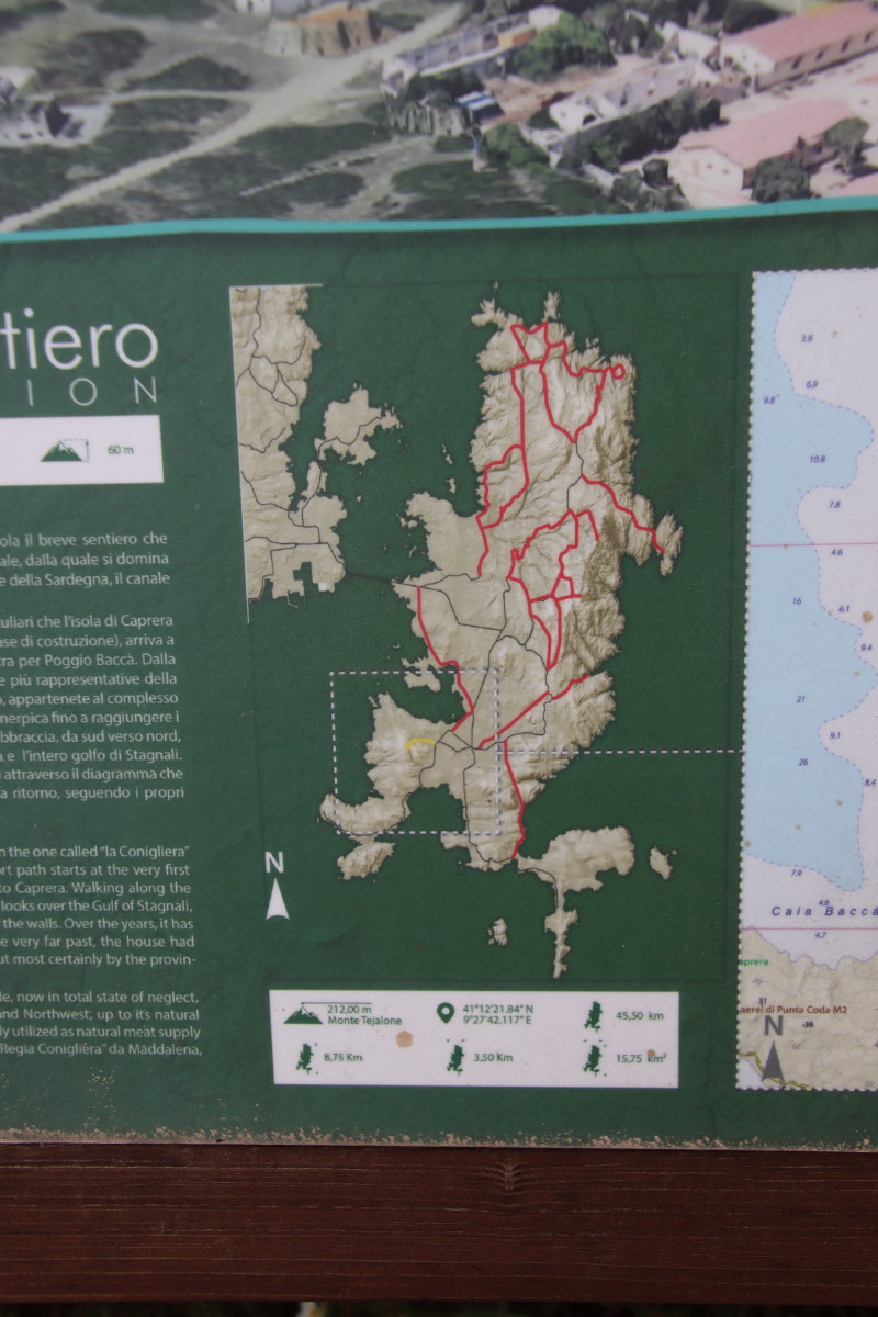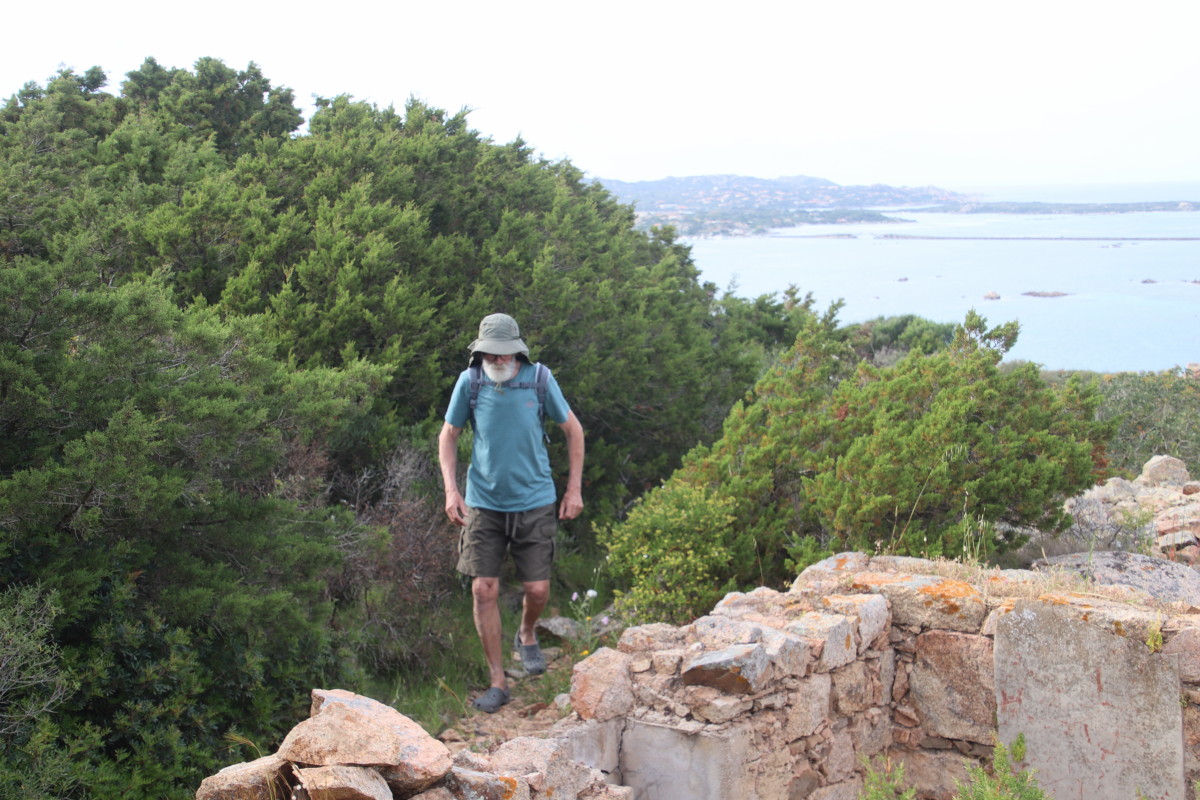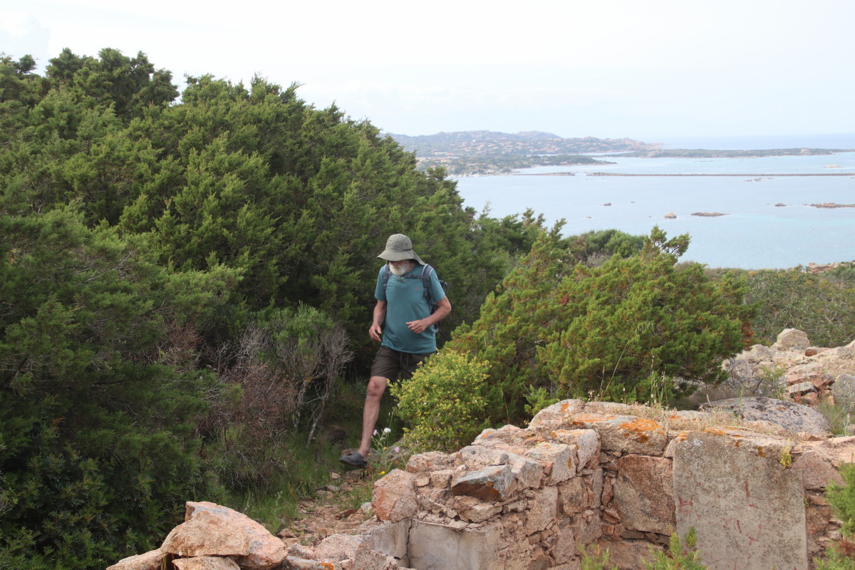 L’avantage de cette baie est qu’on peut descendre à terre (je rappelle que nous sommes dans un parc naturel) et se balader sur les sentiers qui traversent le maquis et montent aux sommet de collines surplombant la baie . L’île à été pendant 20 ans la propriété du patriote Italien Giuseppe Garibali qui est mort est mort en 1867. Elle fût ensuite une base militaire dont on voit encore les vestiges un peu partout, la nature reprenant lentement ses droits.